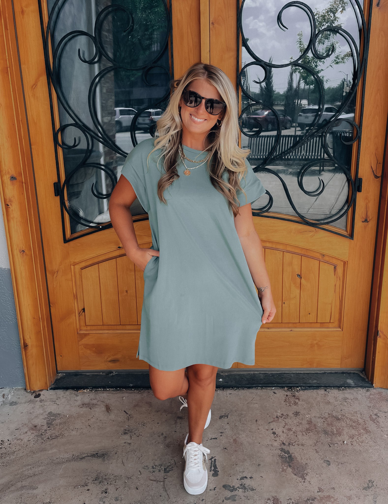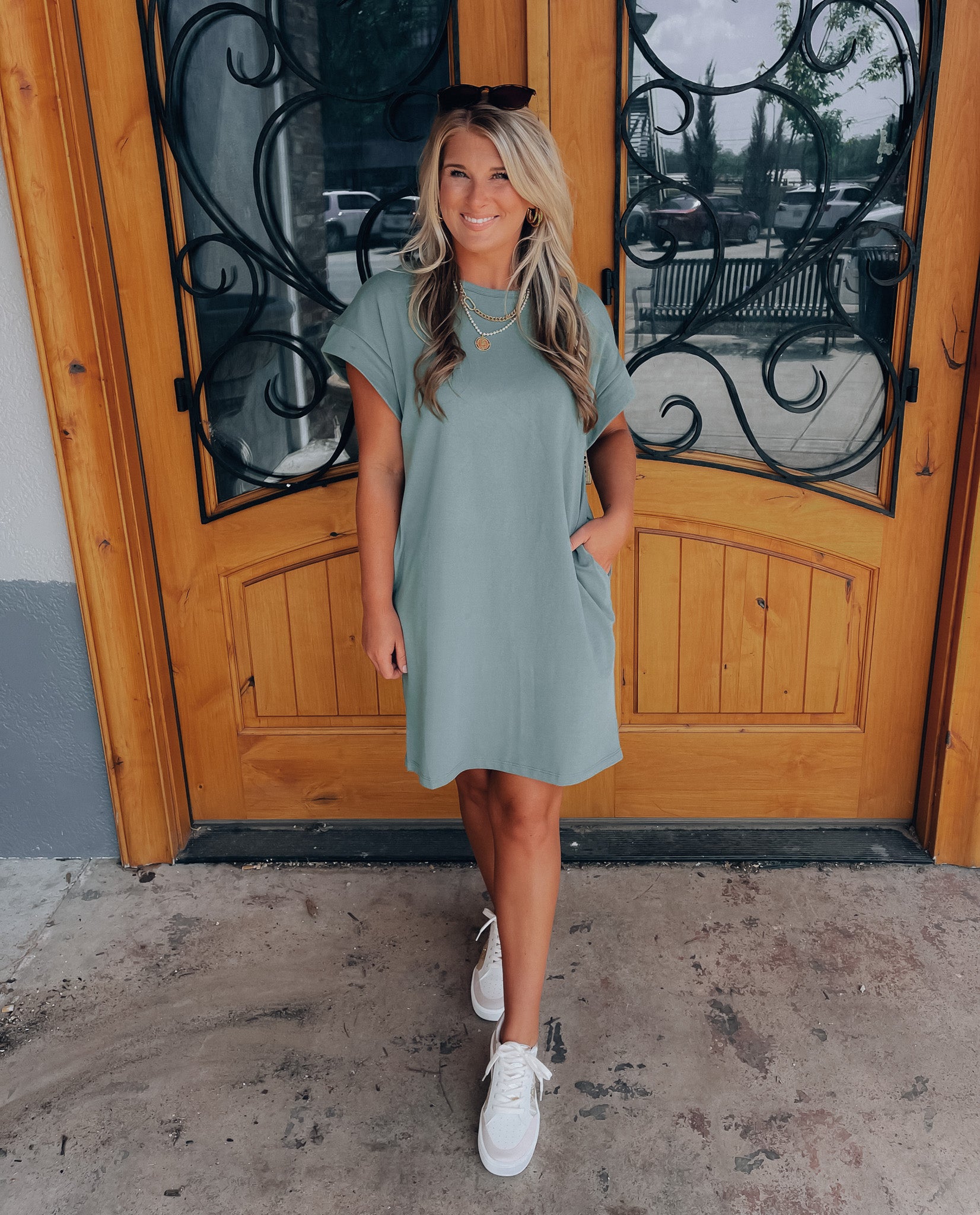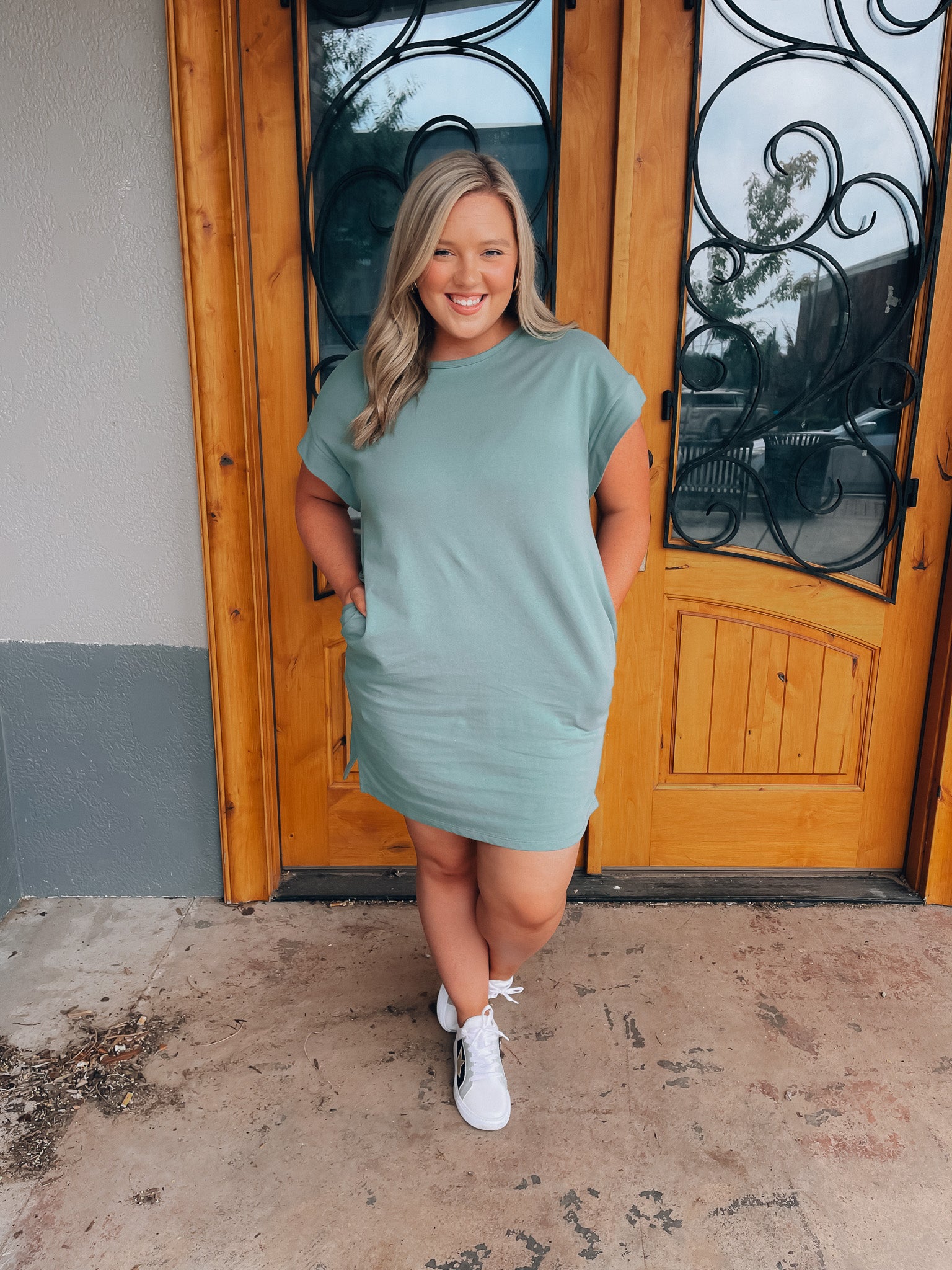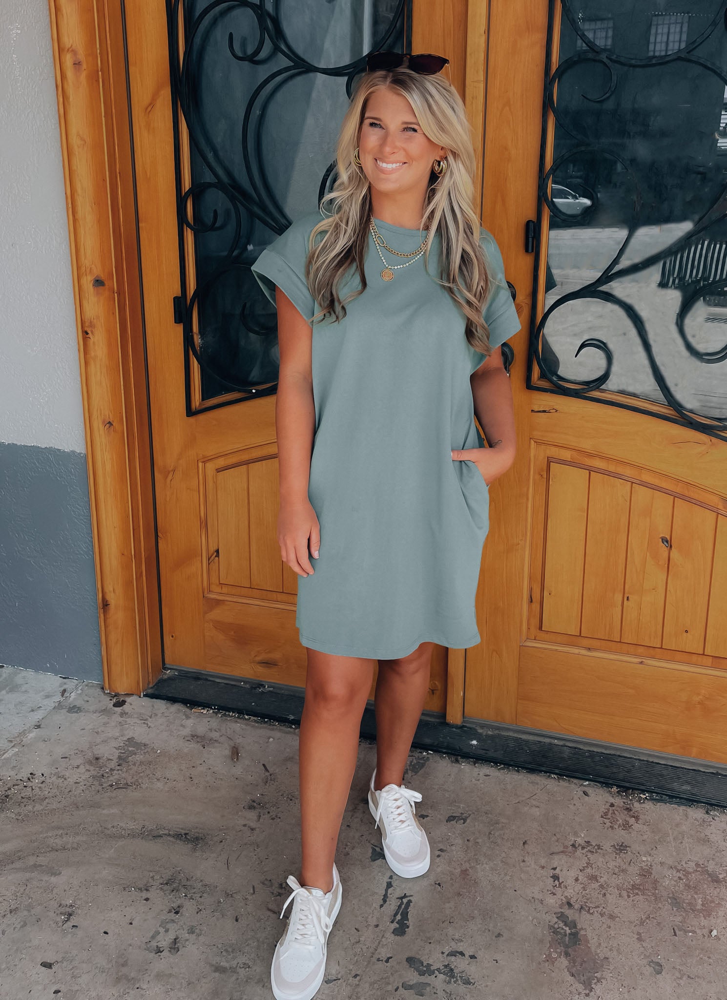 Achieve effortless style with the Always Carefree Dress! This playful t-shirt dress features short sleeves, functional pockets, AND a round neck line for a classic, comfy look. So don't worry, be happy and hop into this easy-breezy garment for some serious chill-vibes (and style)!