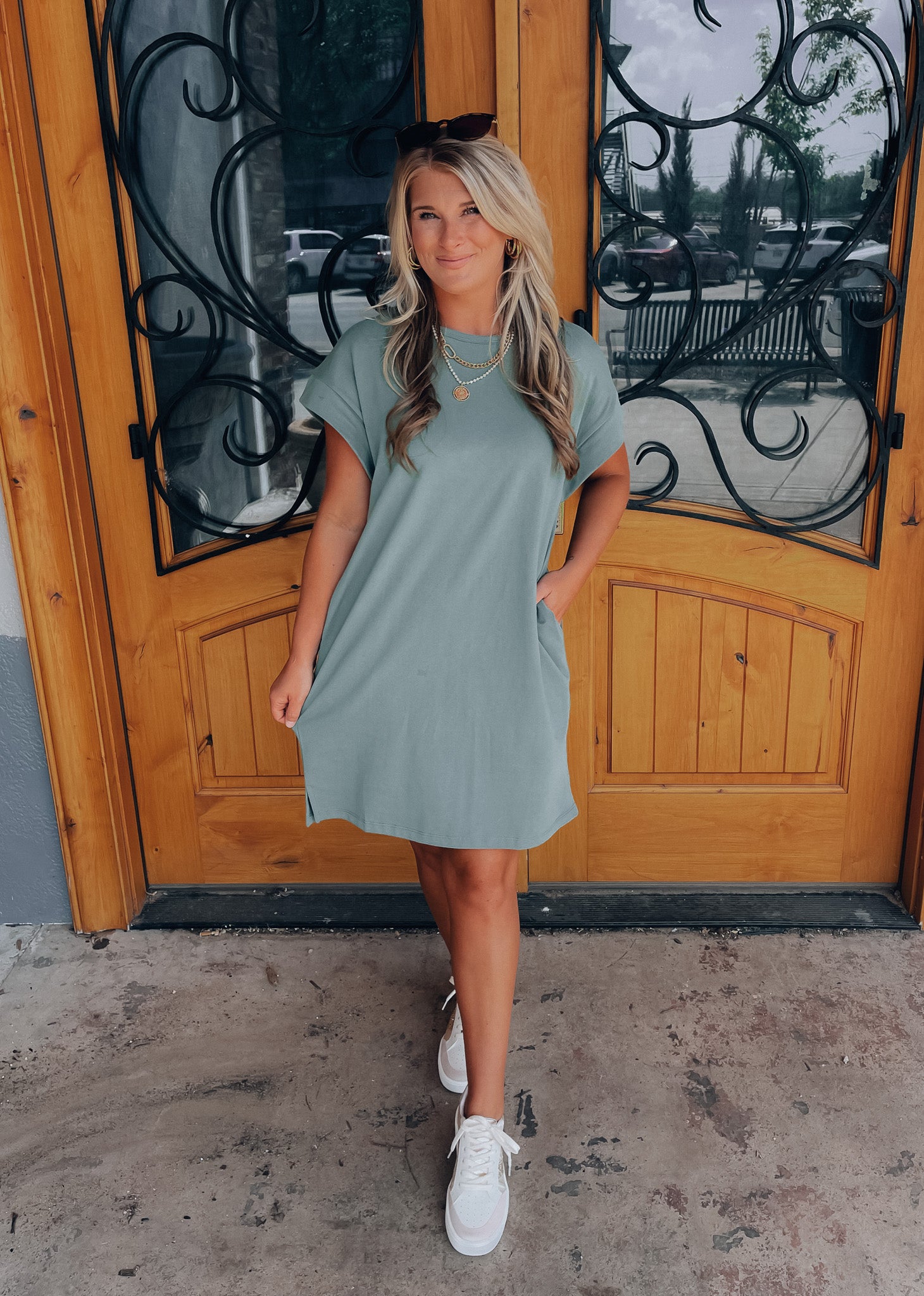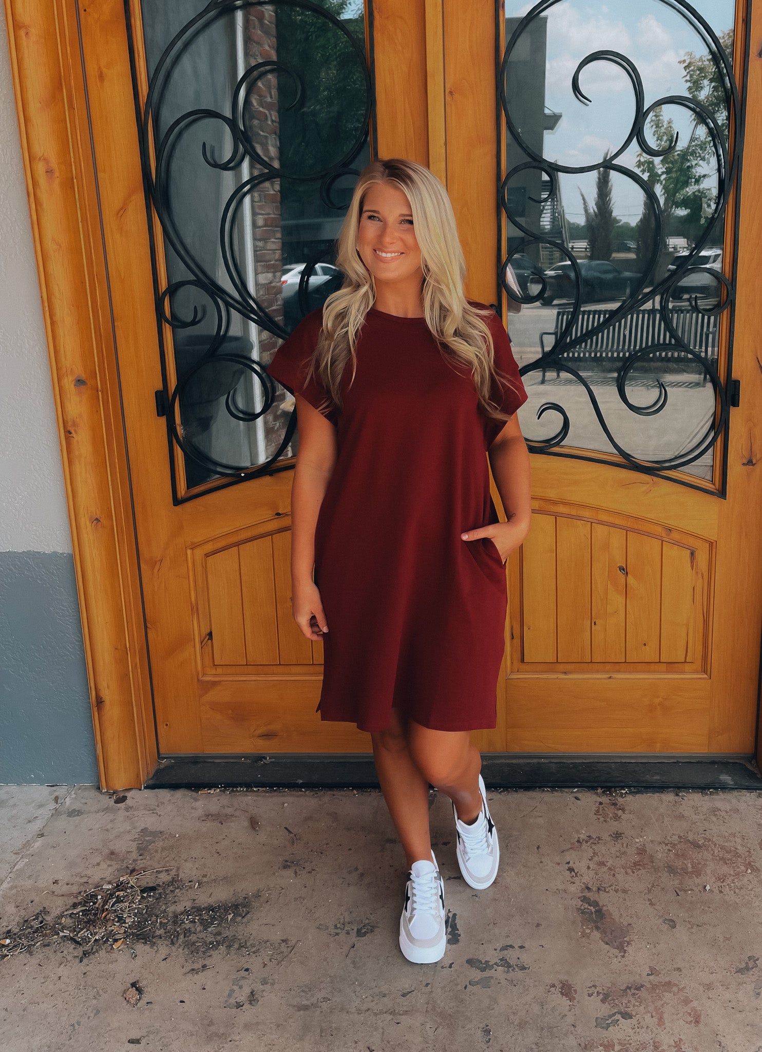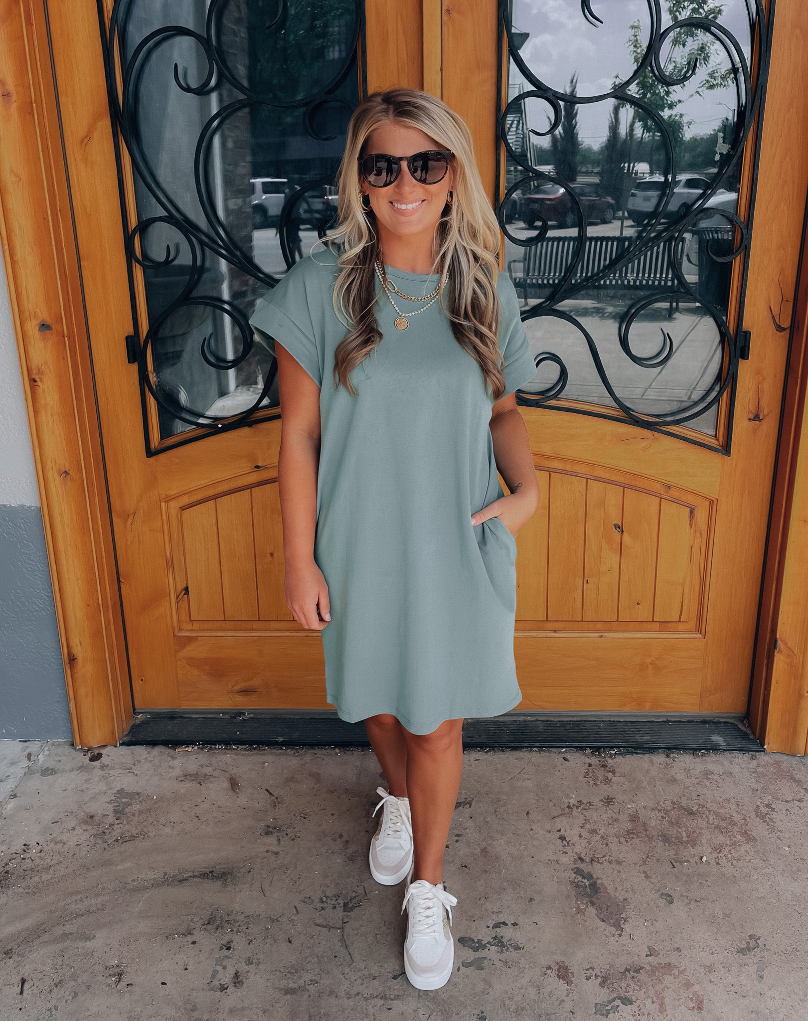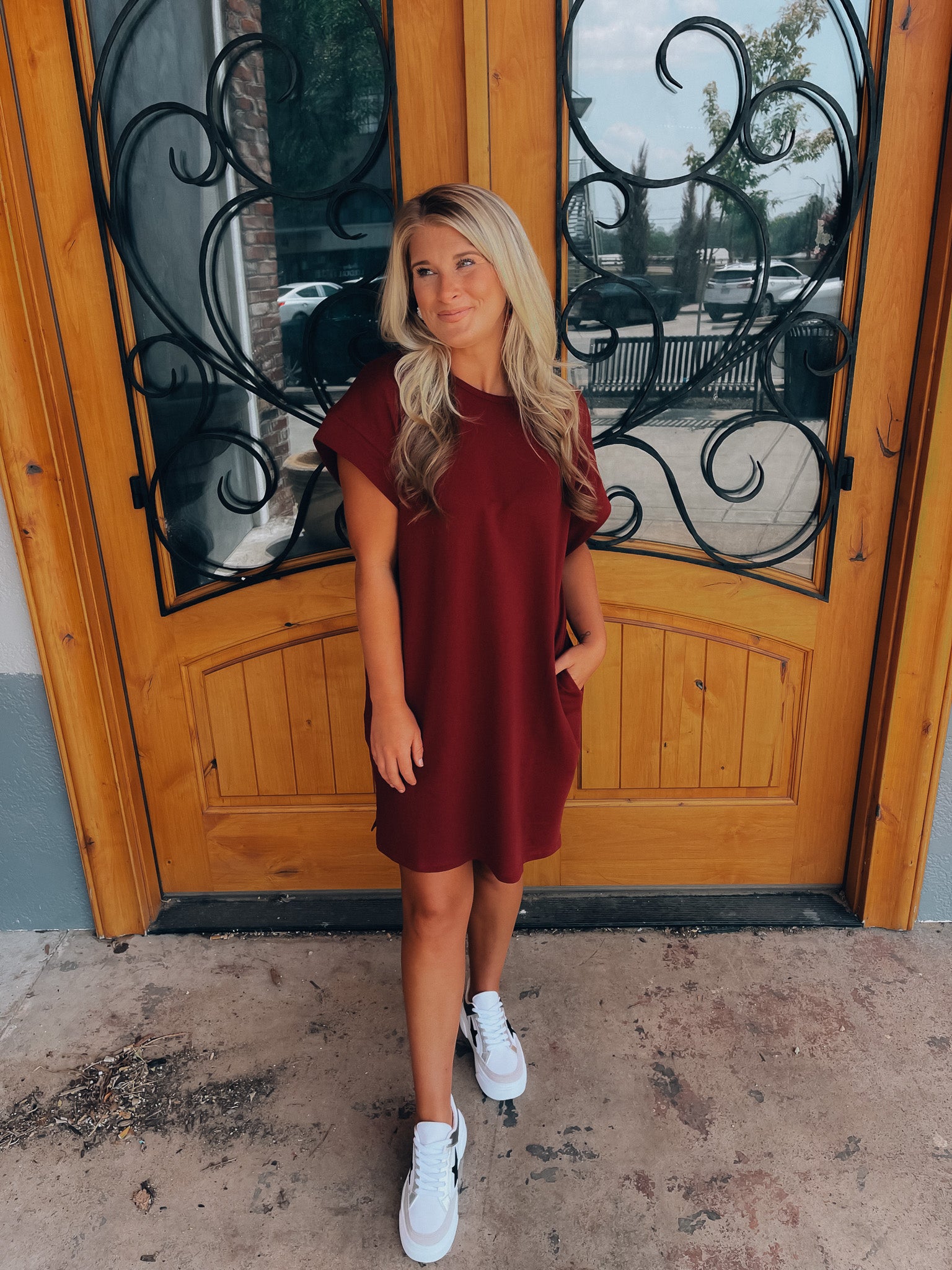 Achieve effortless style with the Always Carefree Dress! This playful t-shirt dress features short sleeves, functional pockets, AND a round neck line for a classic, comfy look. So don't worry, be happy and hop into this easy-breezy garment for some serious chill-vibes (and style)!