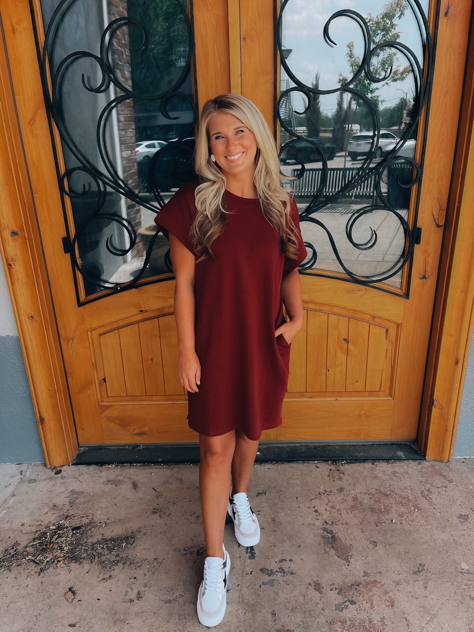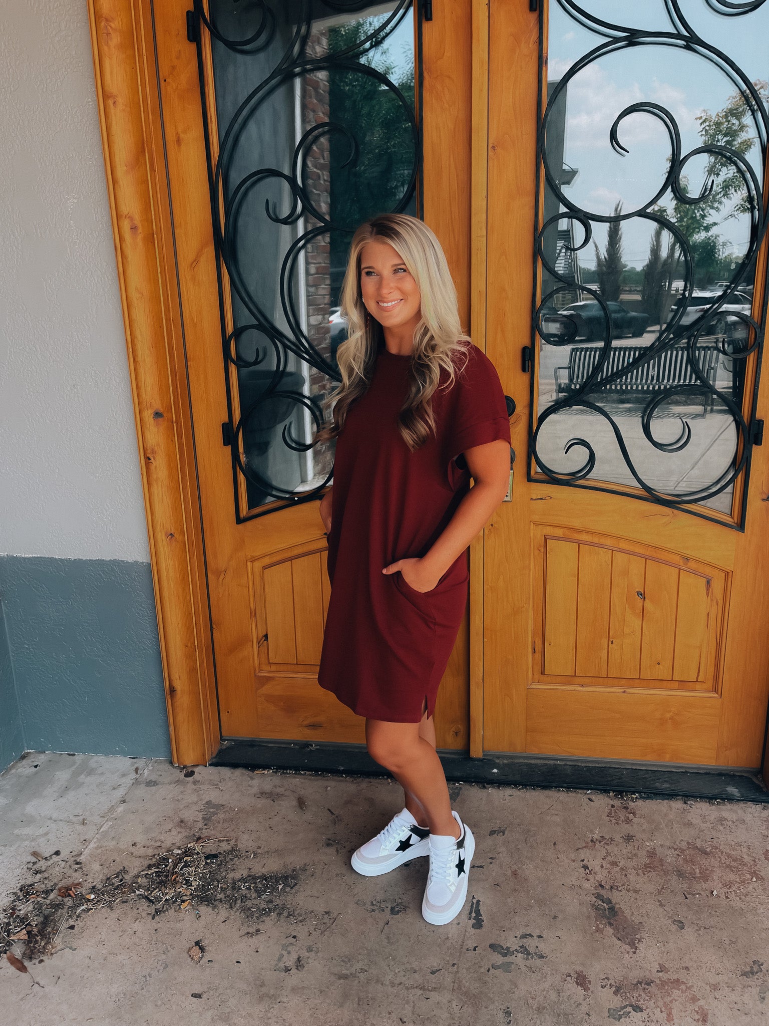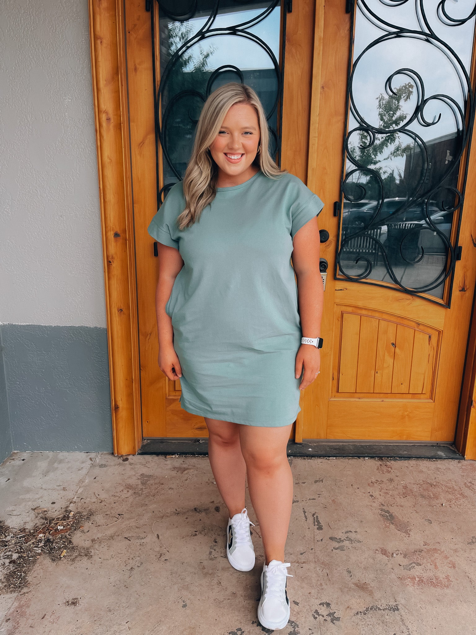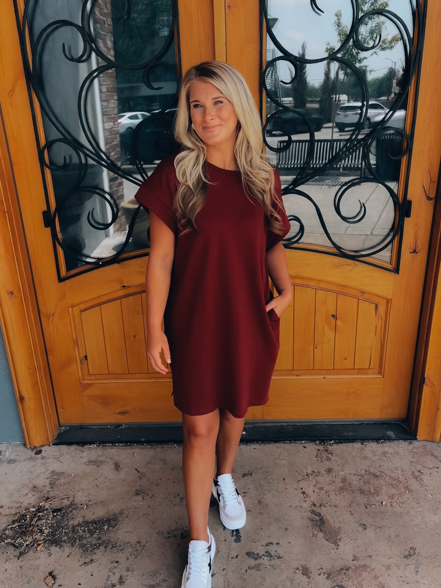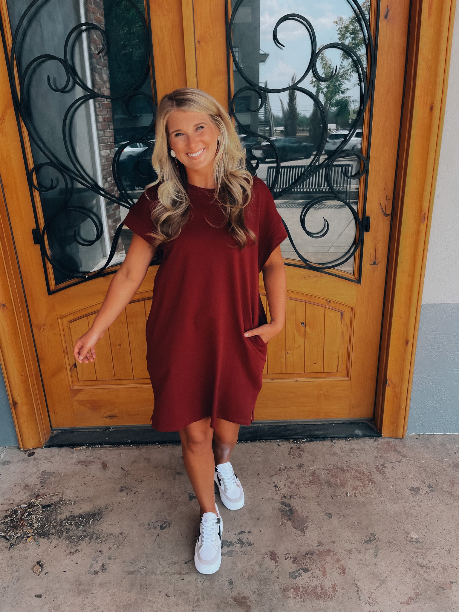 Achieve effortless style with the Always Carefree Dress! This playful t-shirt dress features short sleeves, functional pockets, AND a round neck line for a classic, comfy look. So don't worry, be happy and hop into this easy-breezy garment for some serious chill-vibes (and style)!