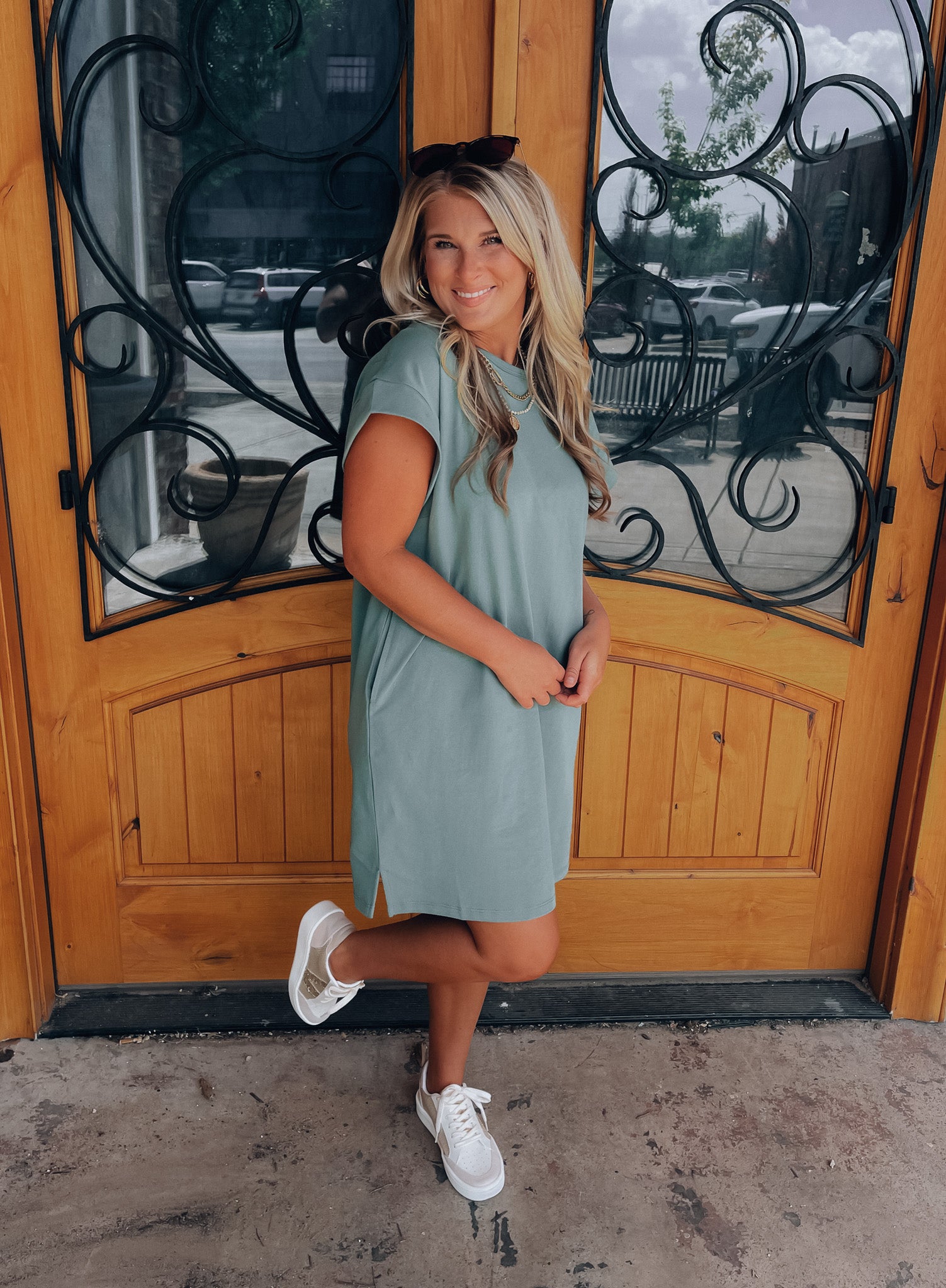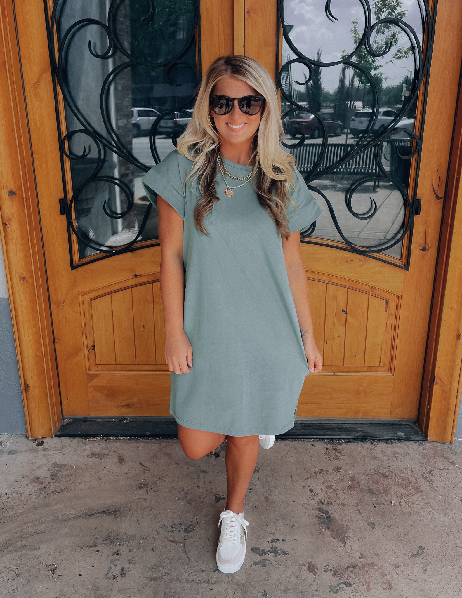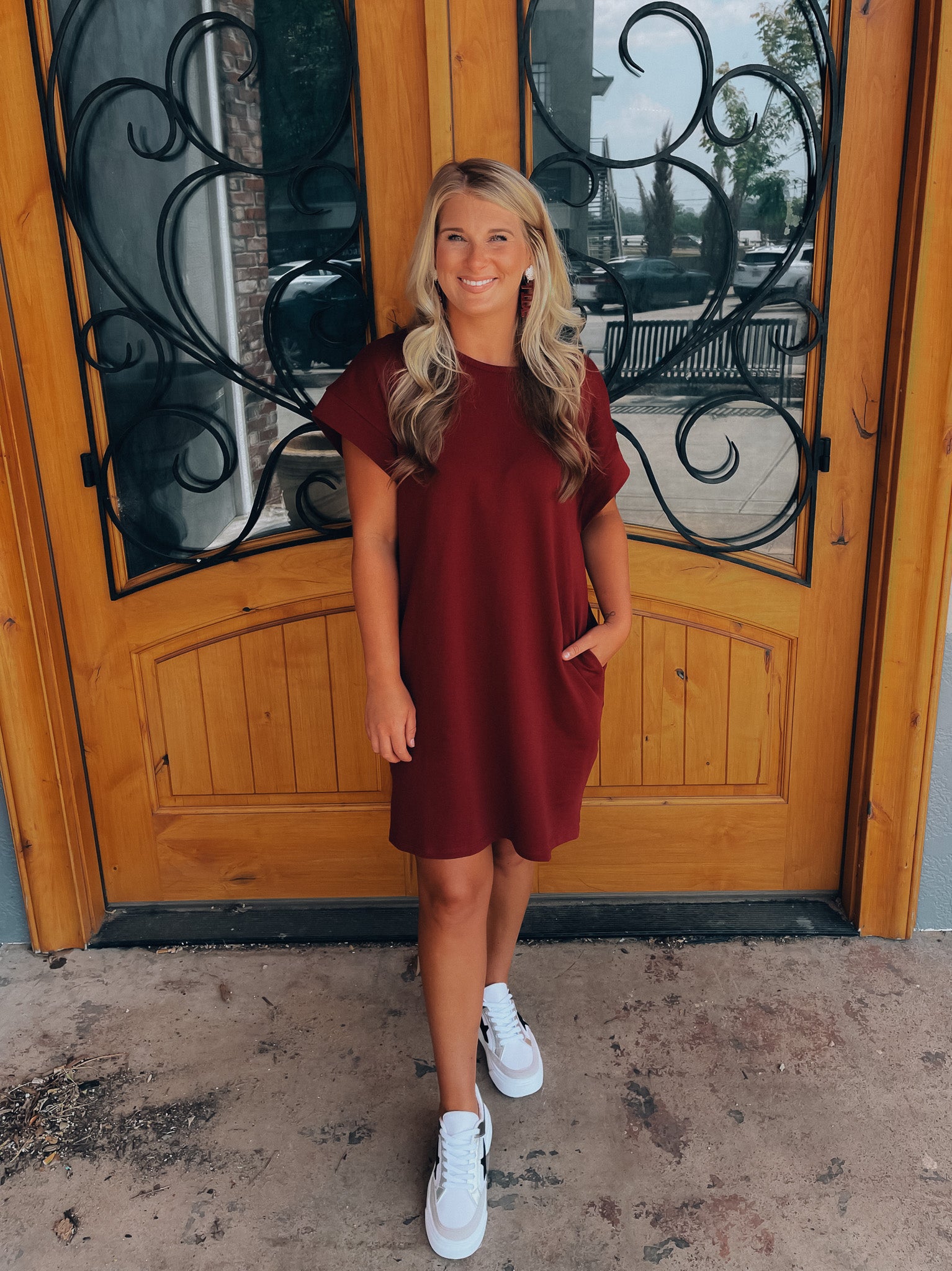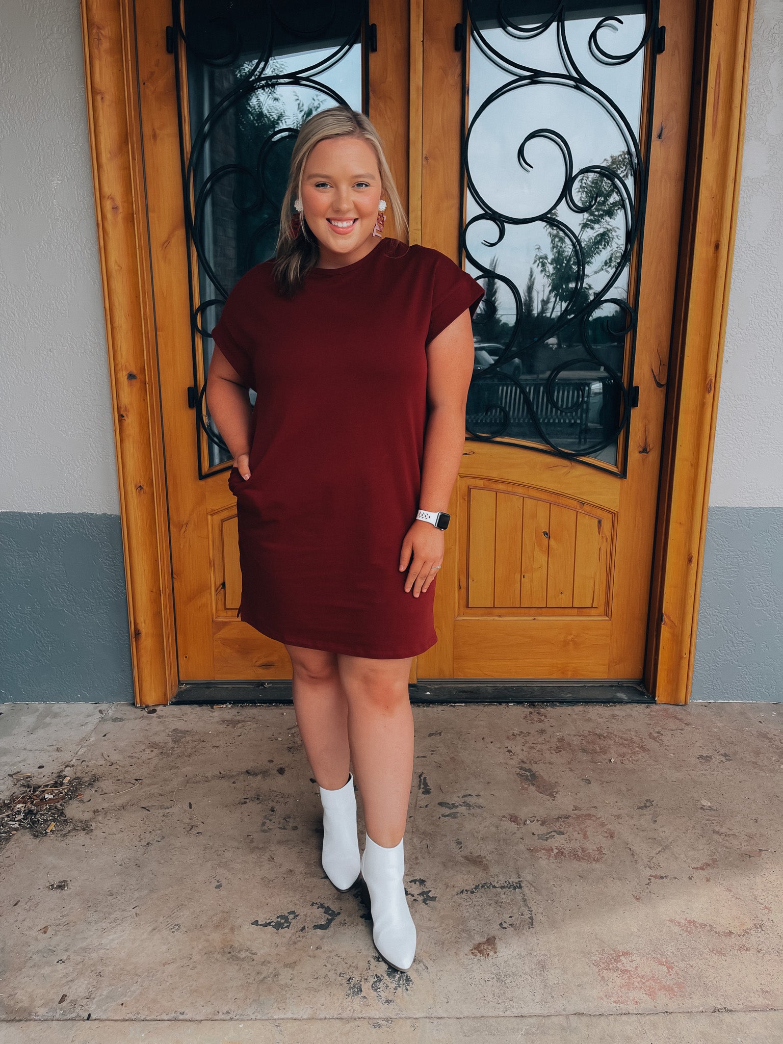 Achieve effortless style with the Always Carefree Dress! This playful t-shirt dress features short sleeves, functional pockets, AND a round neck line for a classic, comfy look. So don't worry, be happy and hop into this easy-breezy garment for some serious chill-vibes (and style)!