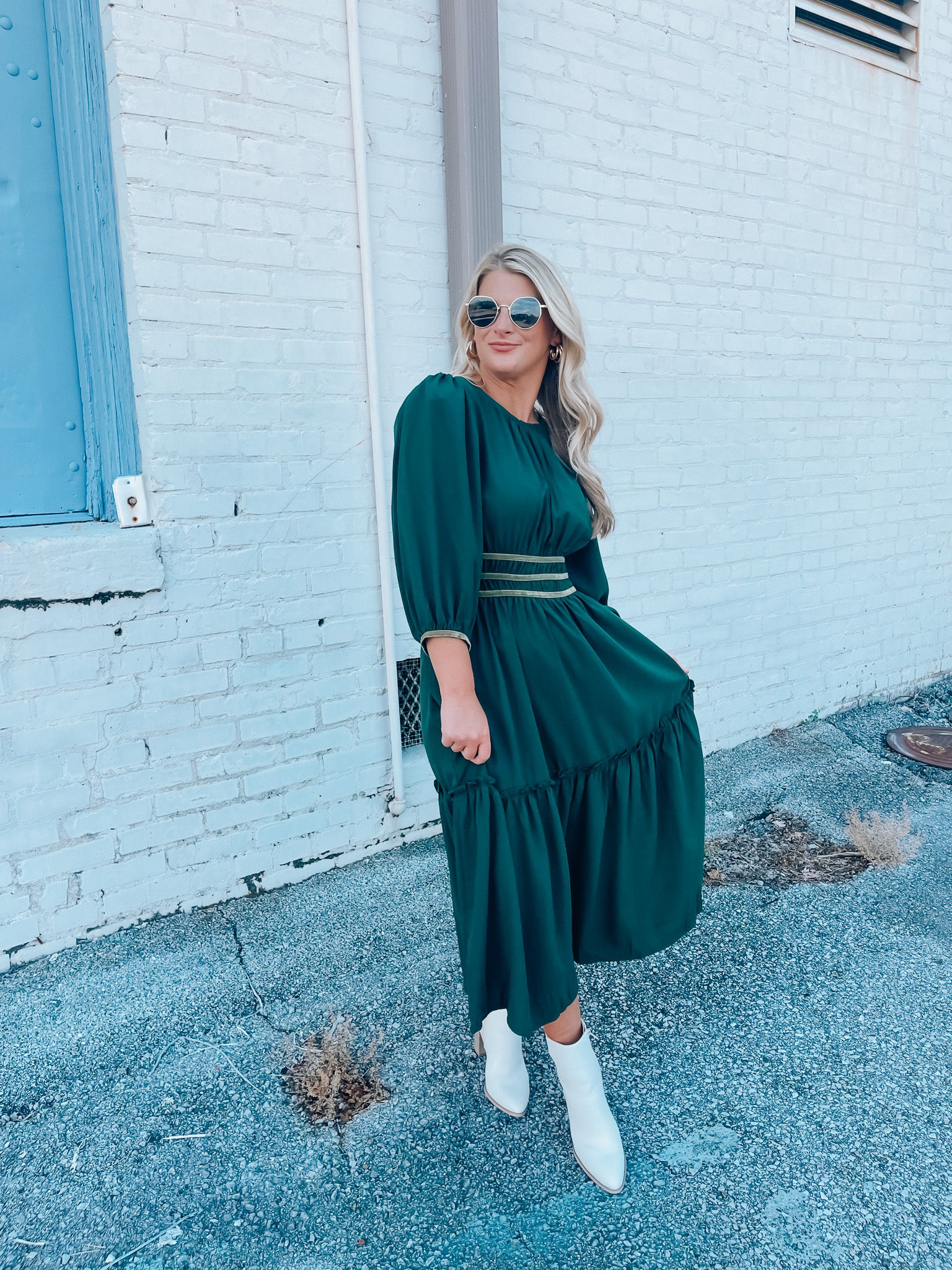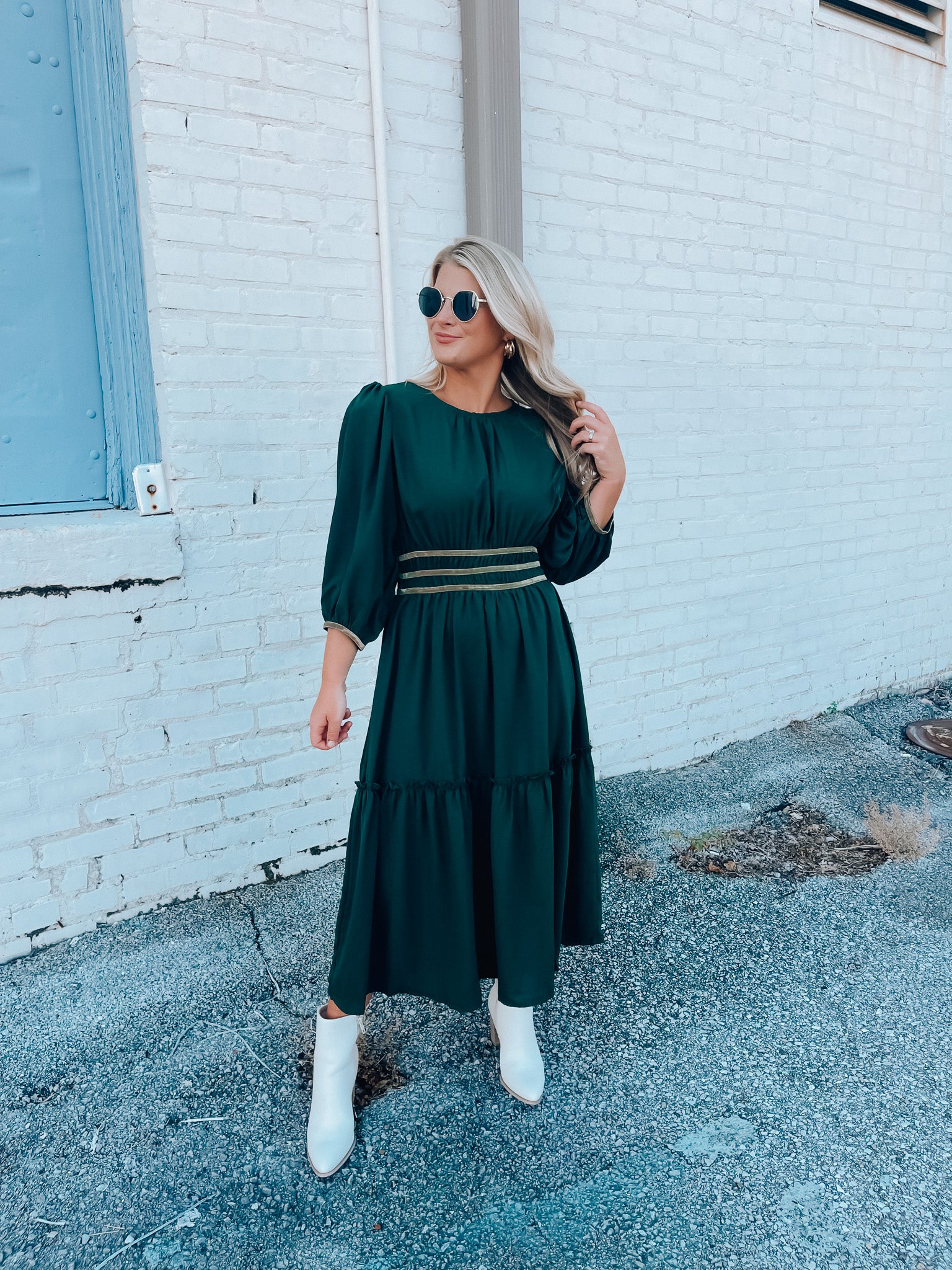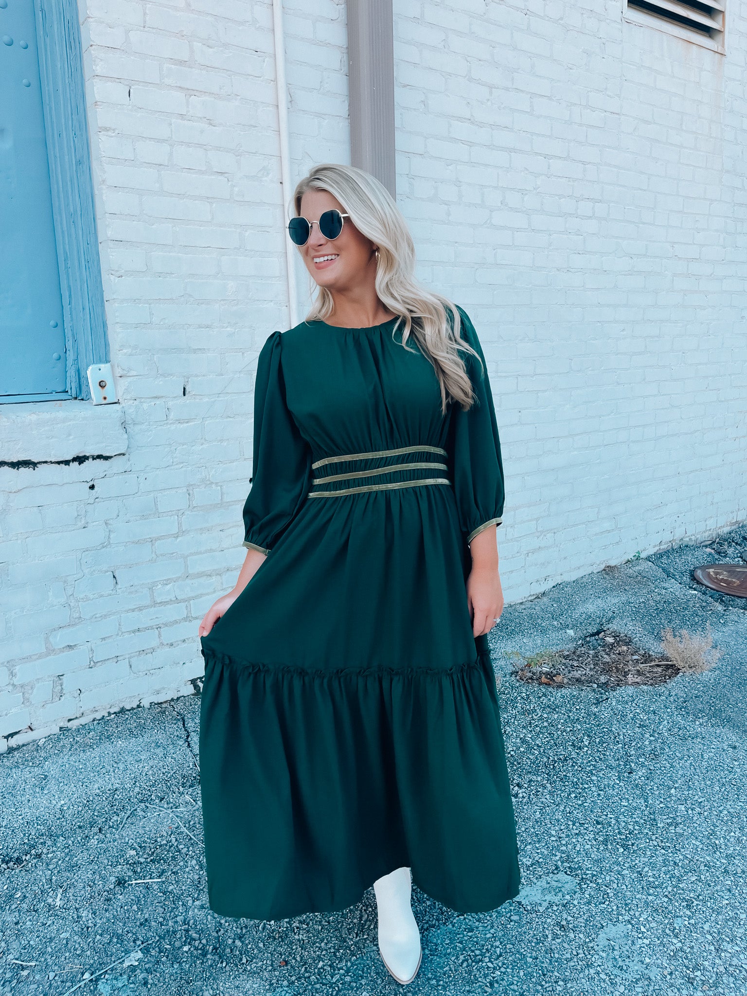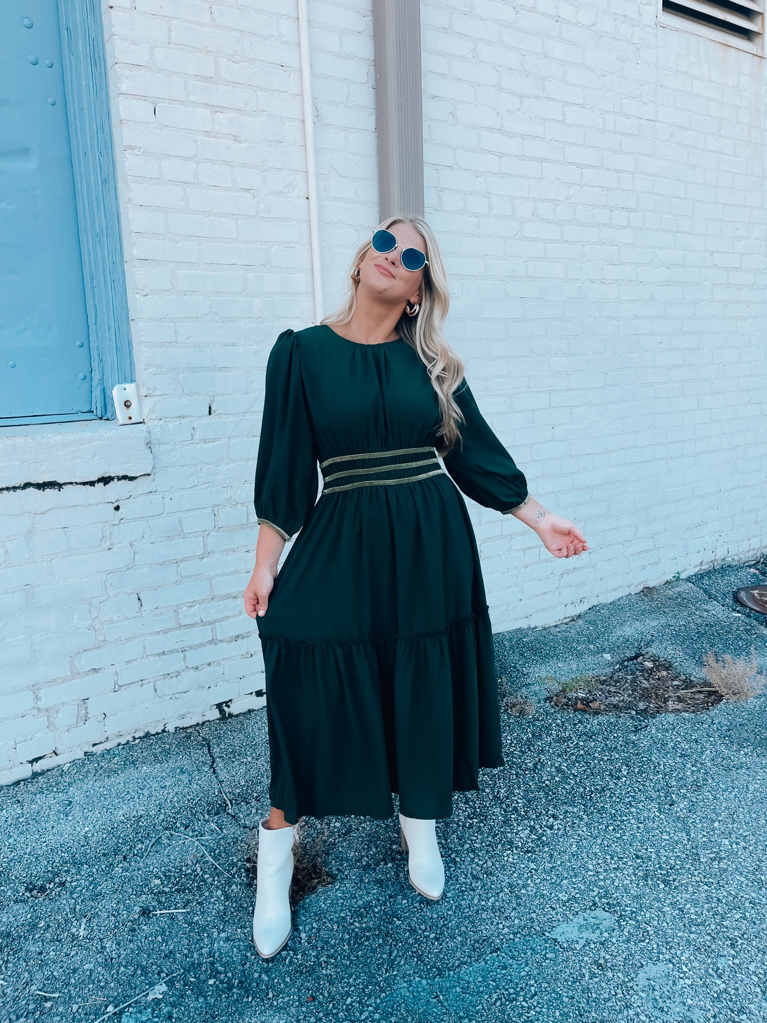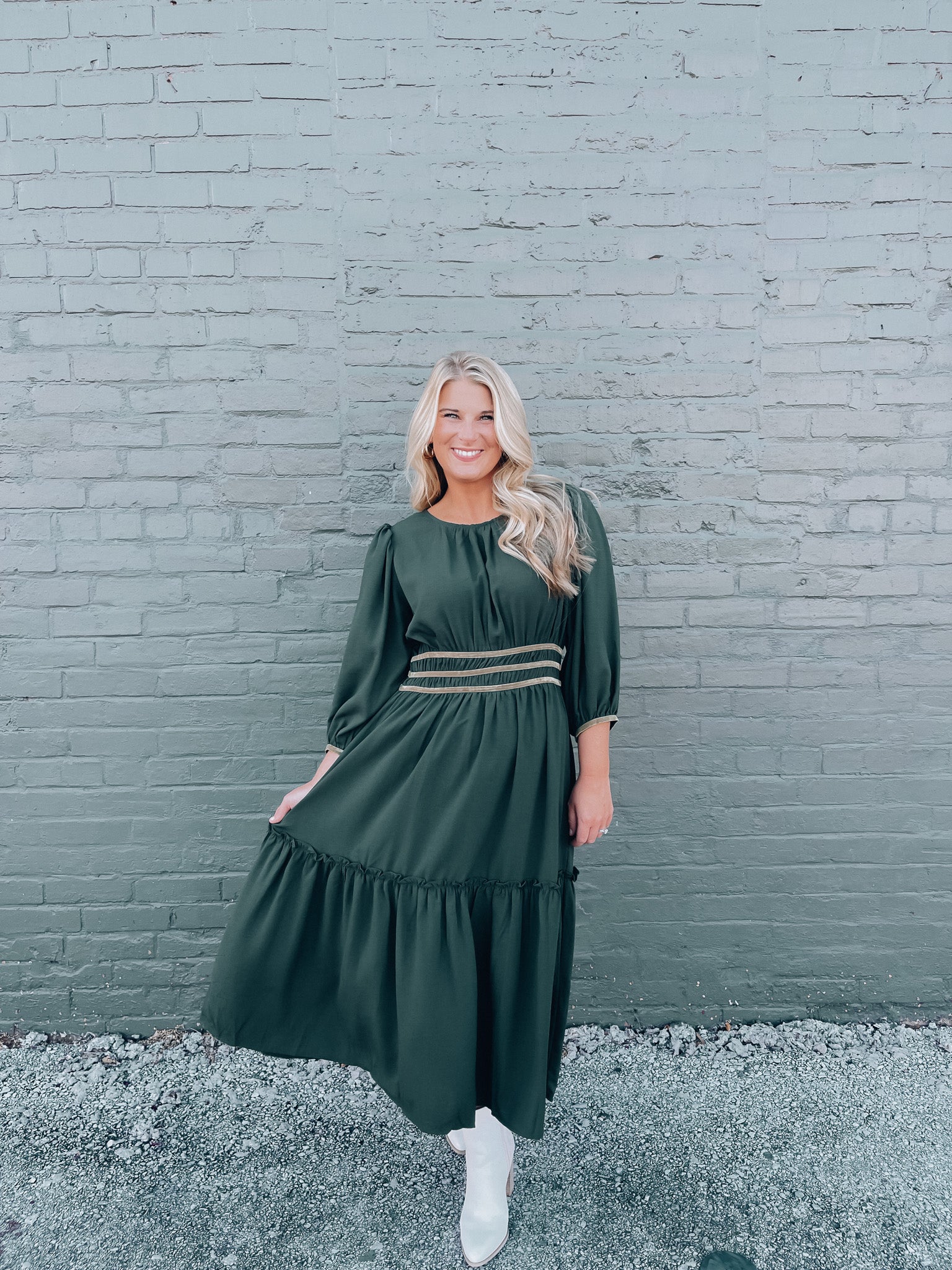 Elevate your fashion game with our Beautiful Botanicals Midi Dress! This stunning olive dress features a unique velvet trim and elastic waistband for a comfortable fit. Show off your style in this eye-catching piece that will have you feeling confident and chic.