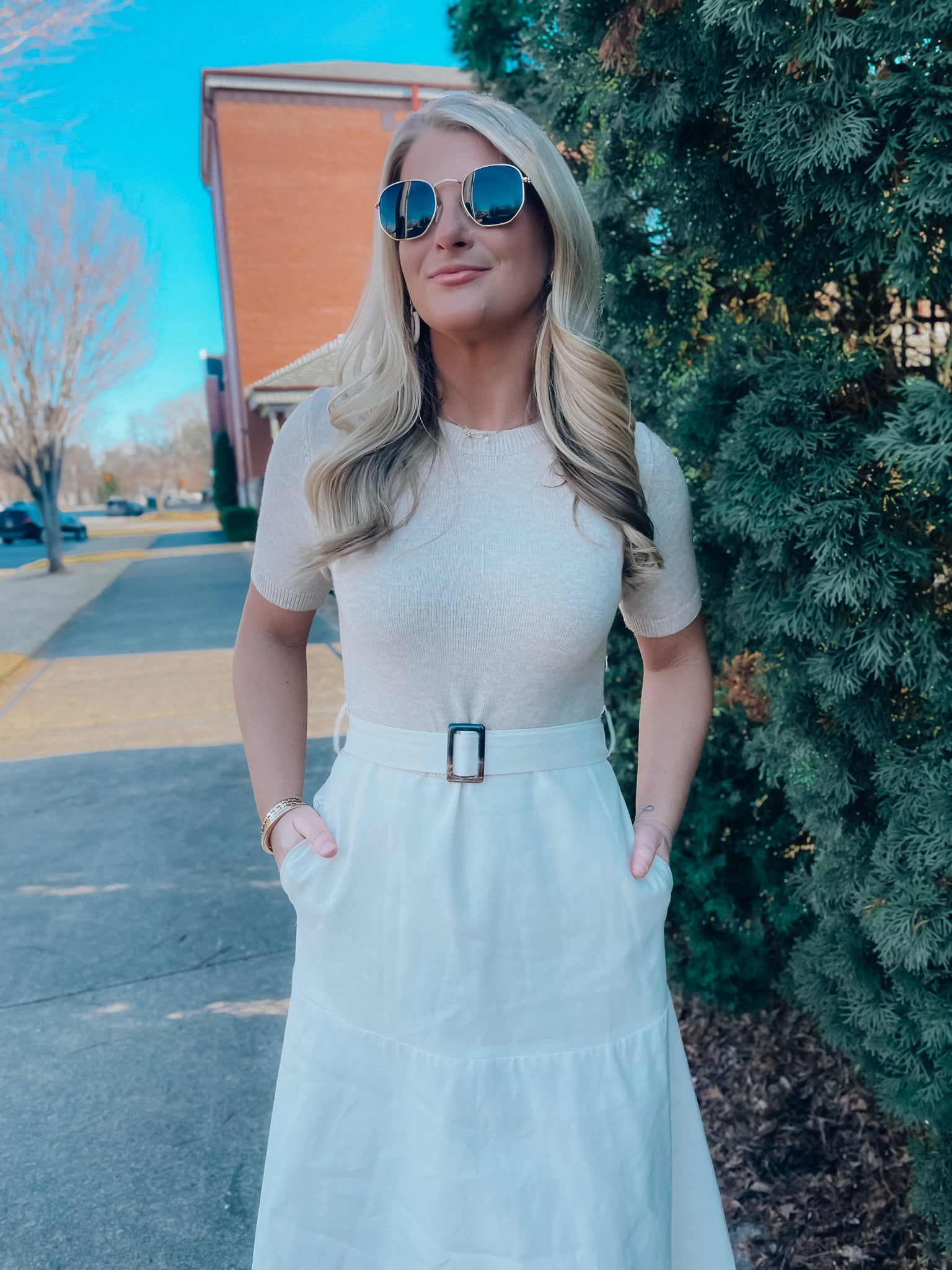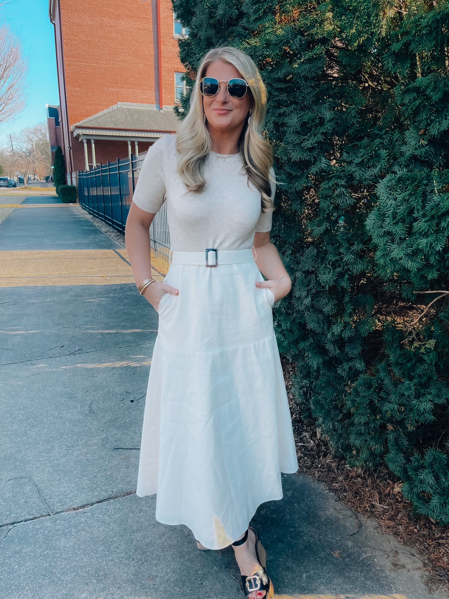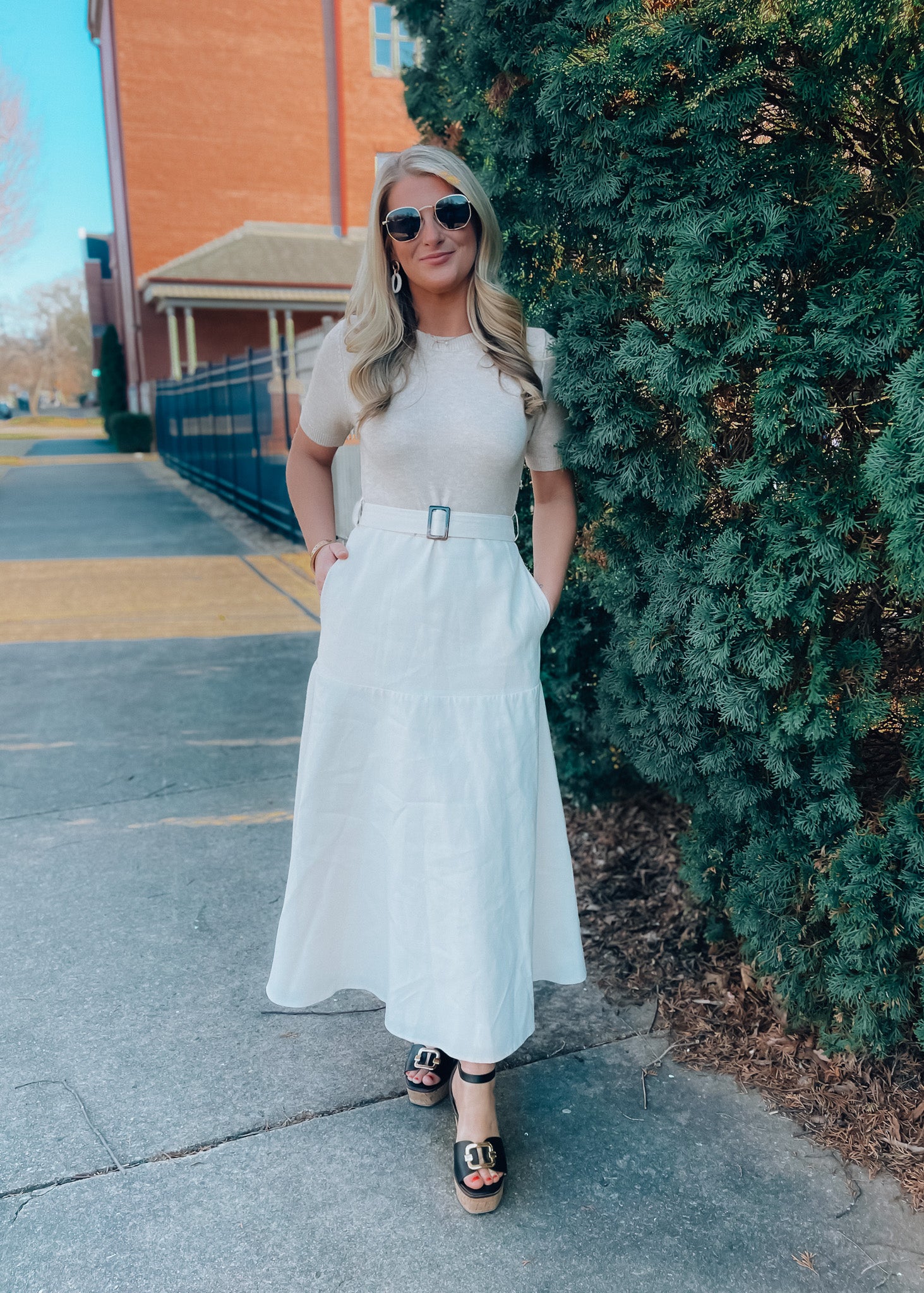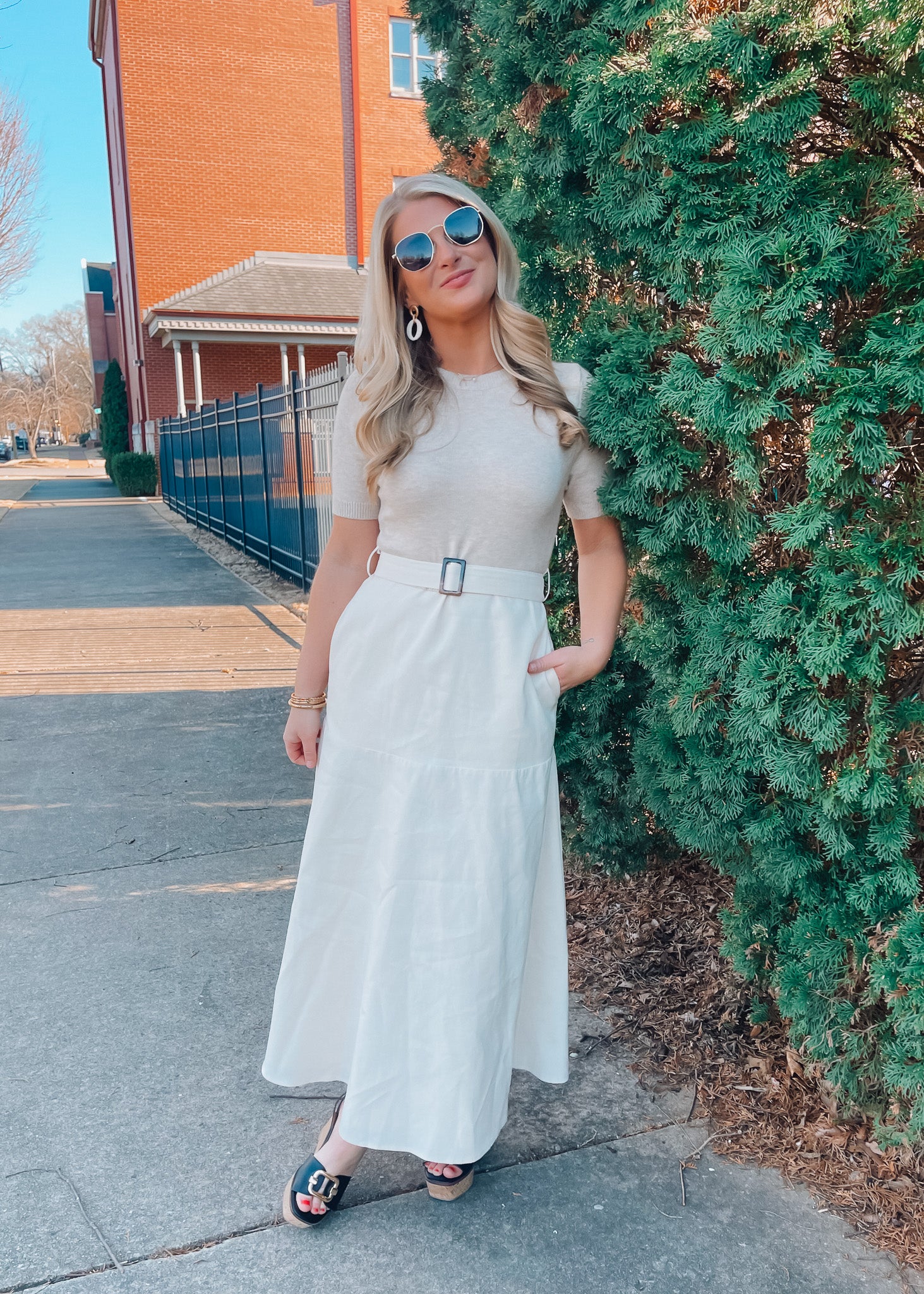 Take a chance on our By Chance Midi Dress! This dress combines a cozy, natural-colored sweater top with a stylish fit and flare linen skirt. With a cinching belt to accentuate your waist, you'll love the comfort and versatility of this twofer dress. Perfect for any occasion!