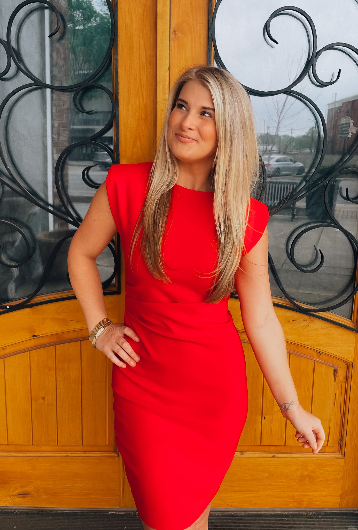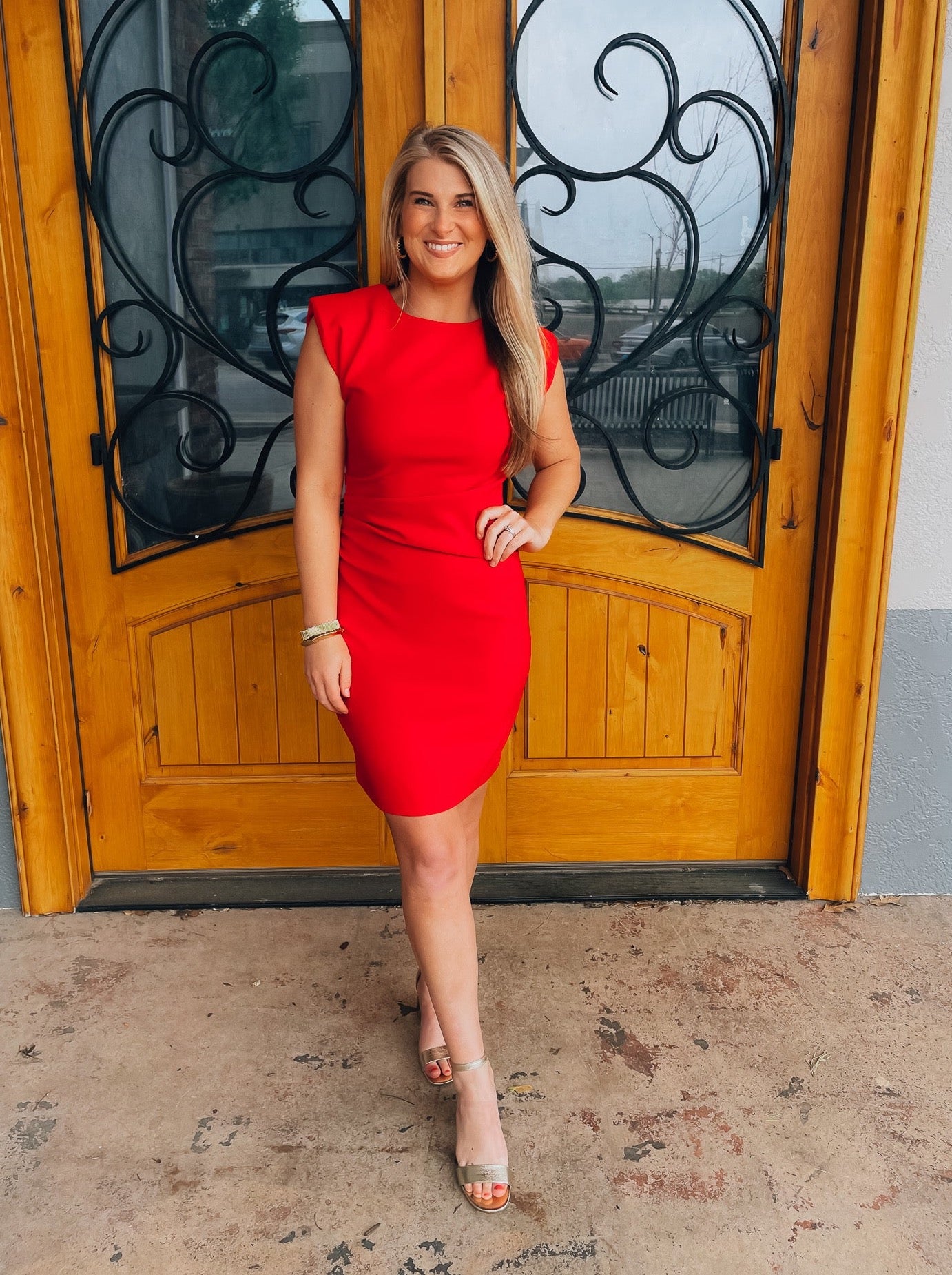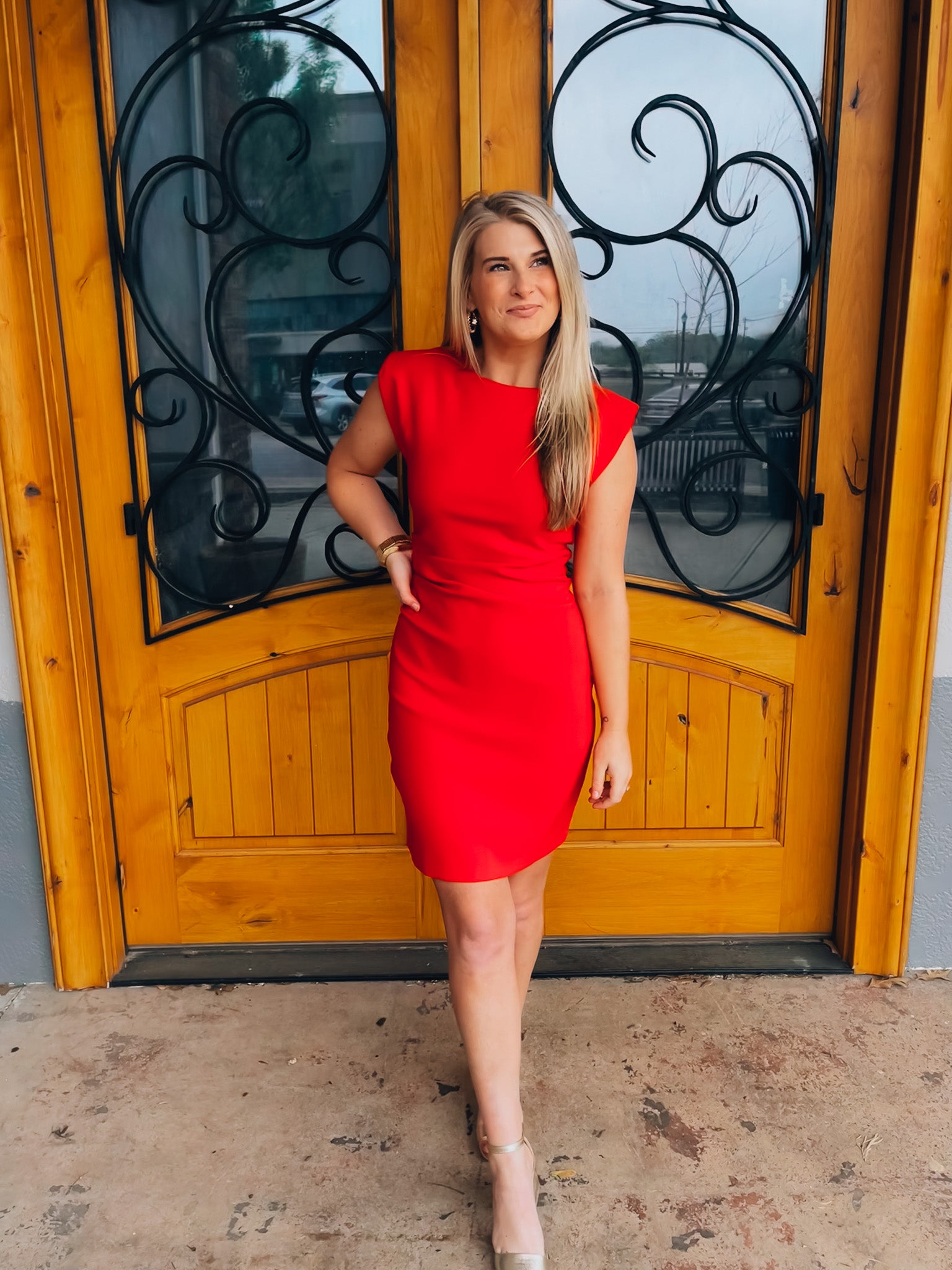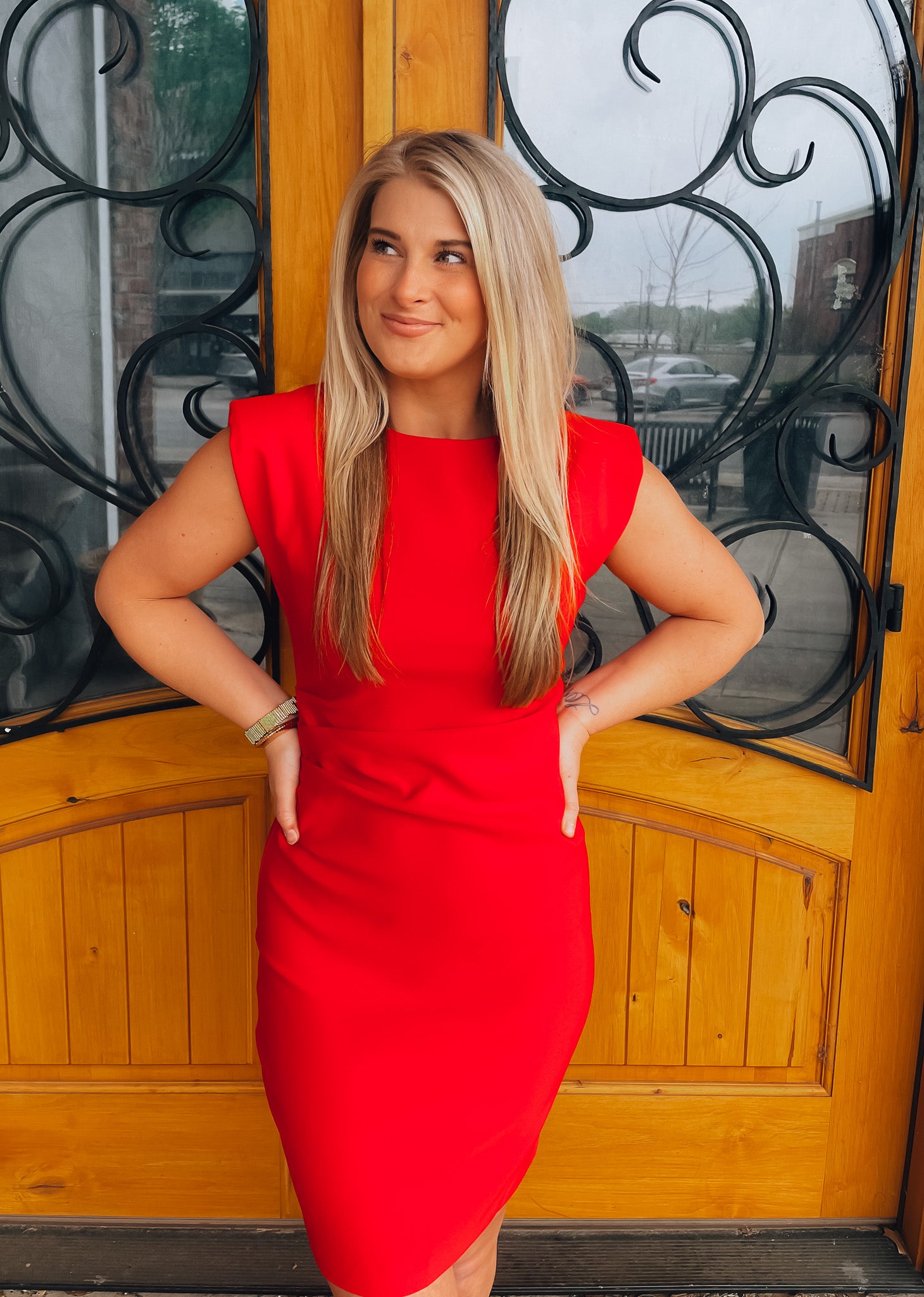 Elevate your wardrobe with our Can't Be Outdone Dress! This red dress features a flattering ruched design and shoulder pad sleeves for a touch of sophistication. With a convenient zip-up back, you'll effortlessly stand out in style. Perfect for any occasion, this dress will have you feeling confident and chic.