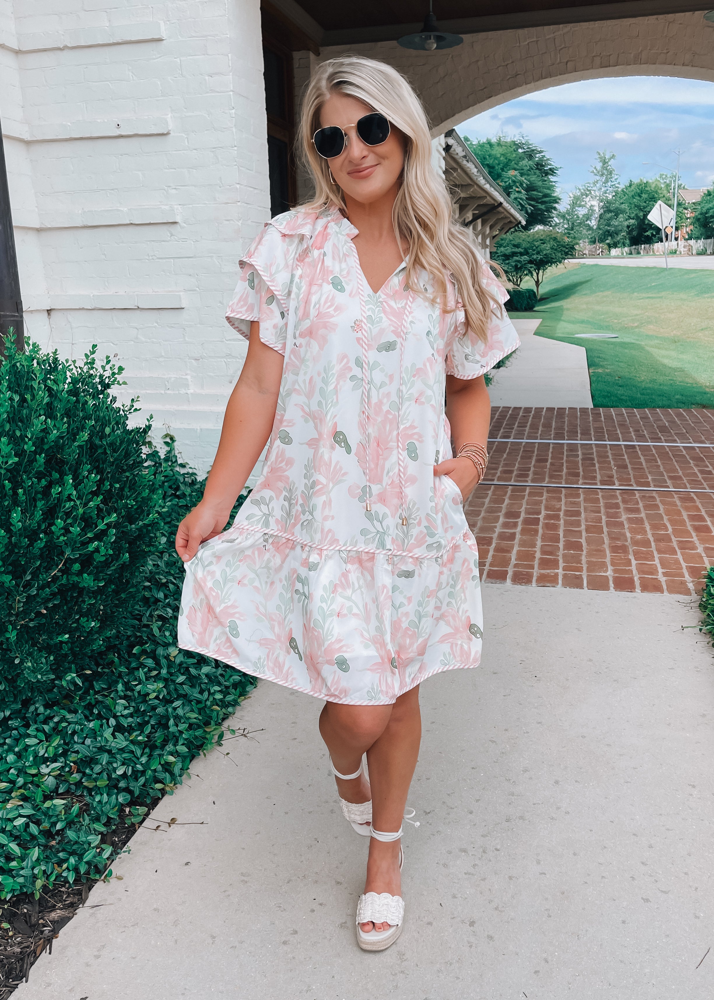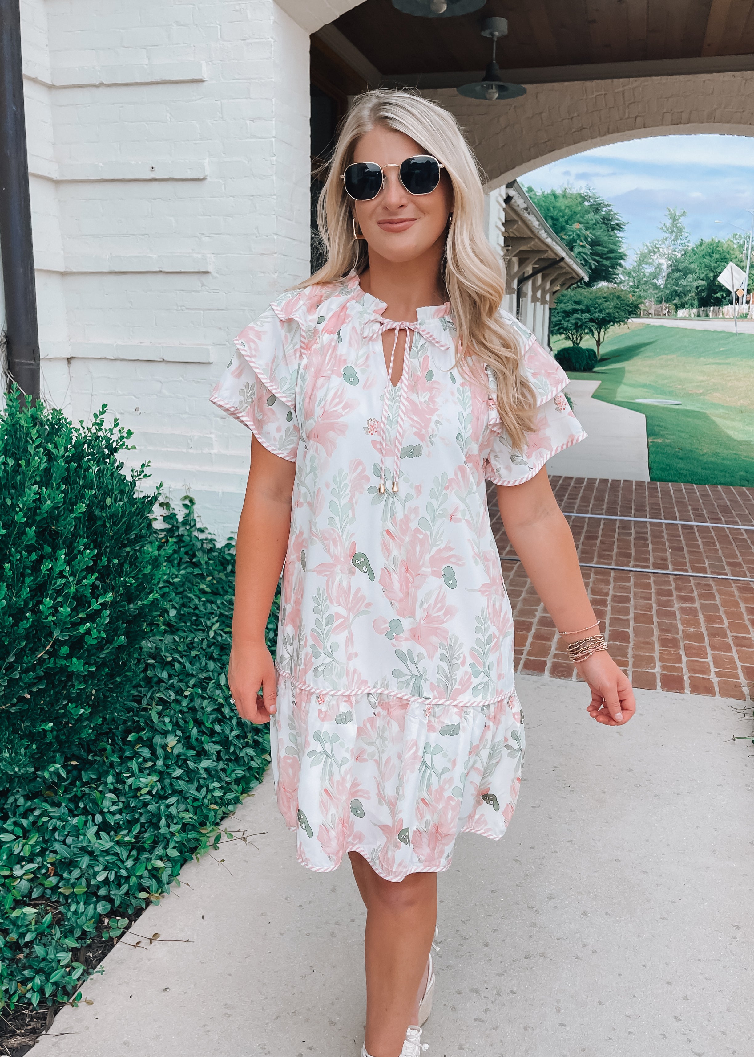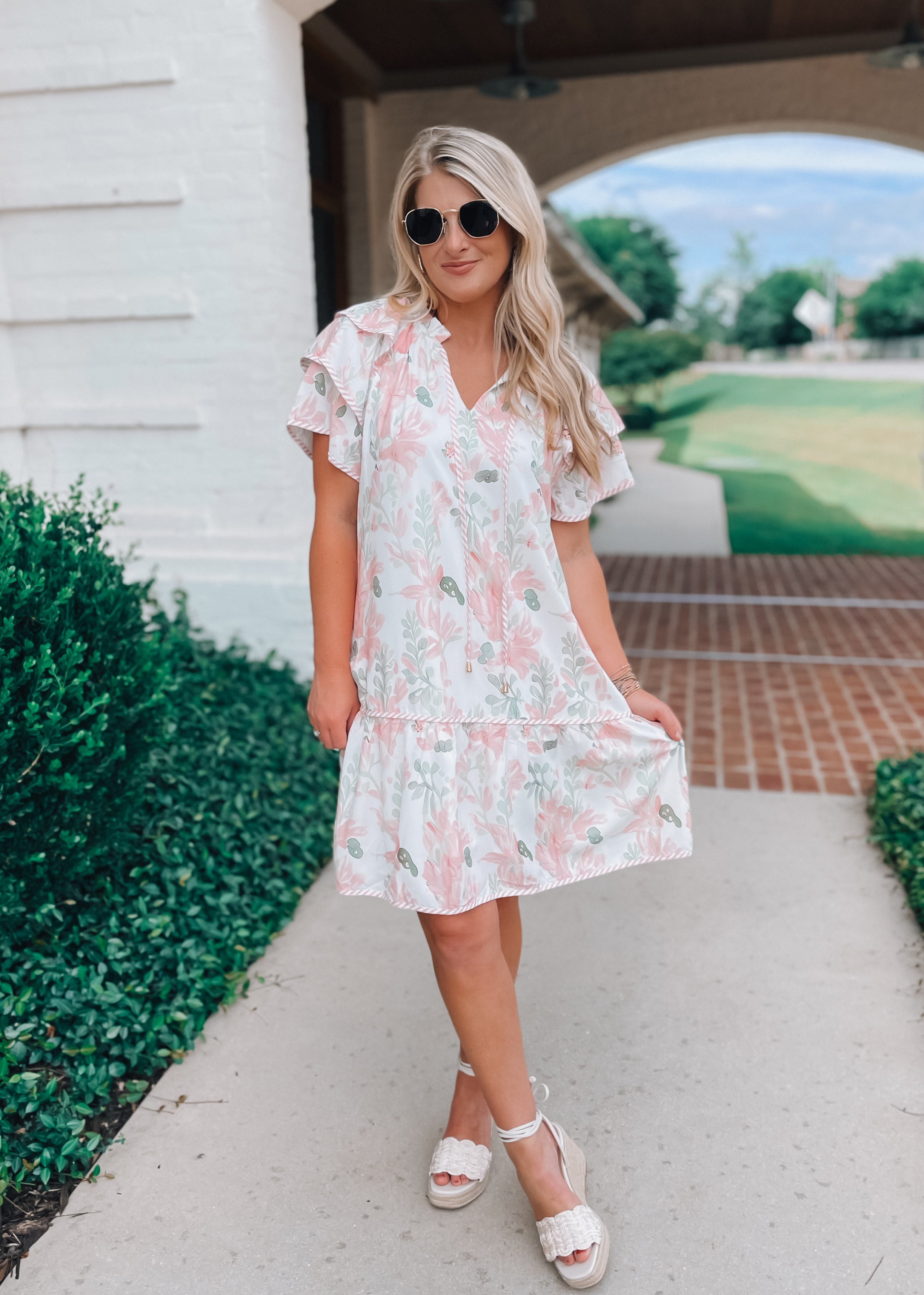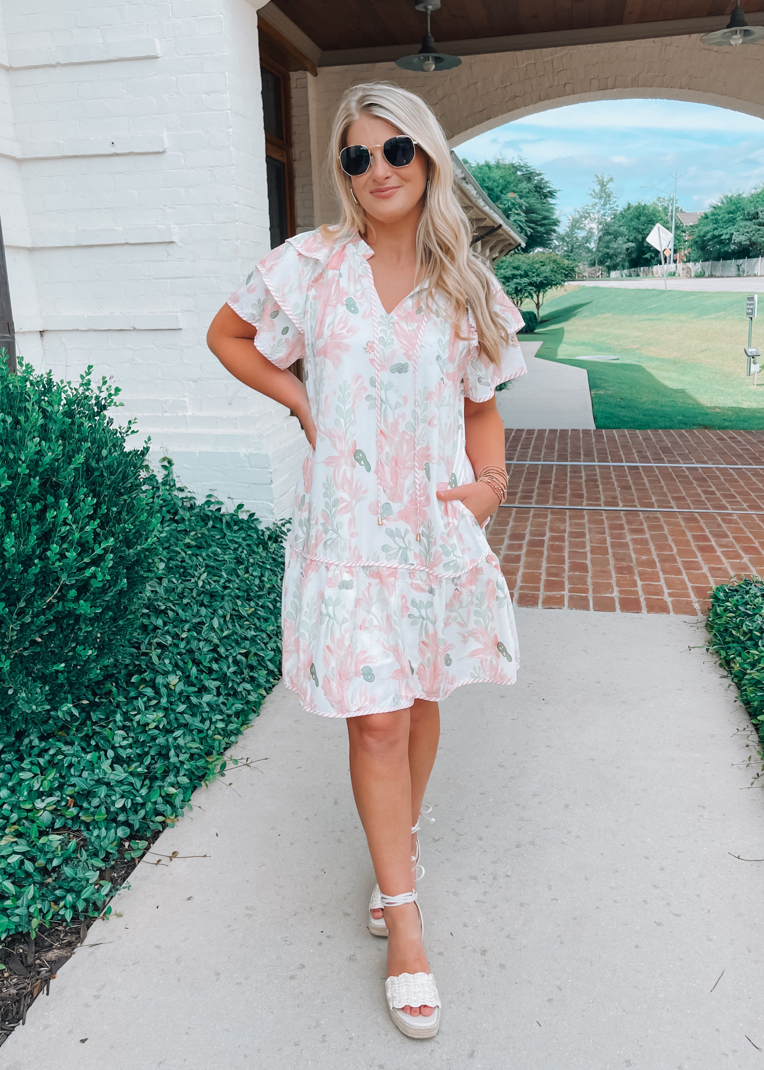 Elevate your wardrobe with our stunning Chic By Nature Mini Dress. This eye-catching piece features beautiful floral patterns with contrast edging and a flattering layered design. Available in soft light pink or refreshing light blue, this short-sleeve mini dress transitions effortlessly from day to evening events. The versatile S-XL sizing ensures a perfect fit for your unique silhouette. Don't miss your chance to make a statement with this must-have seasonal essential.