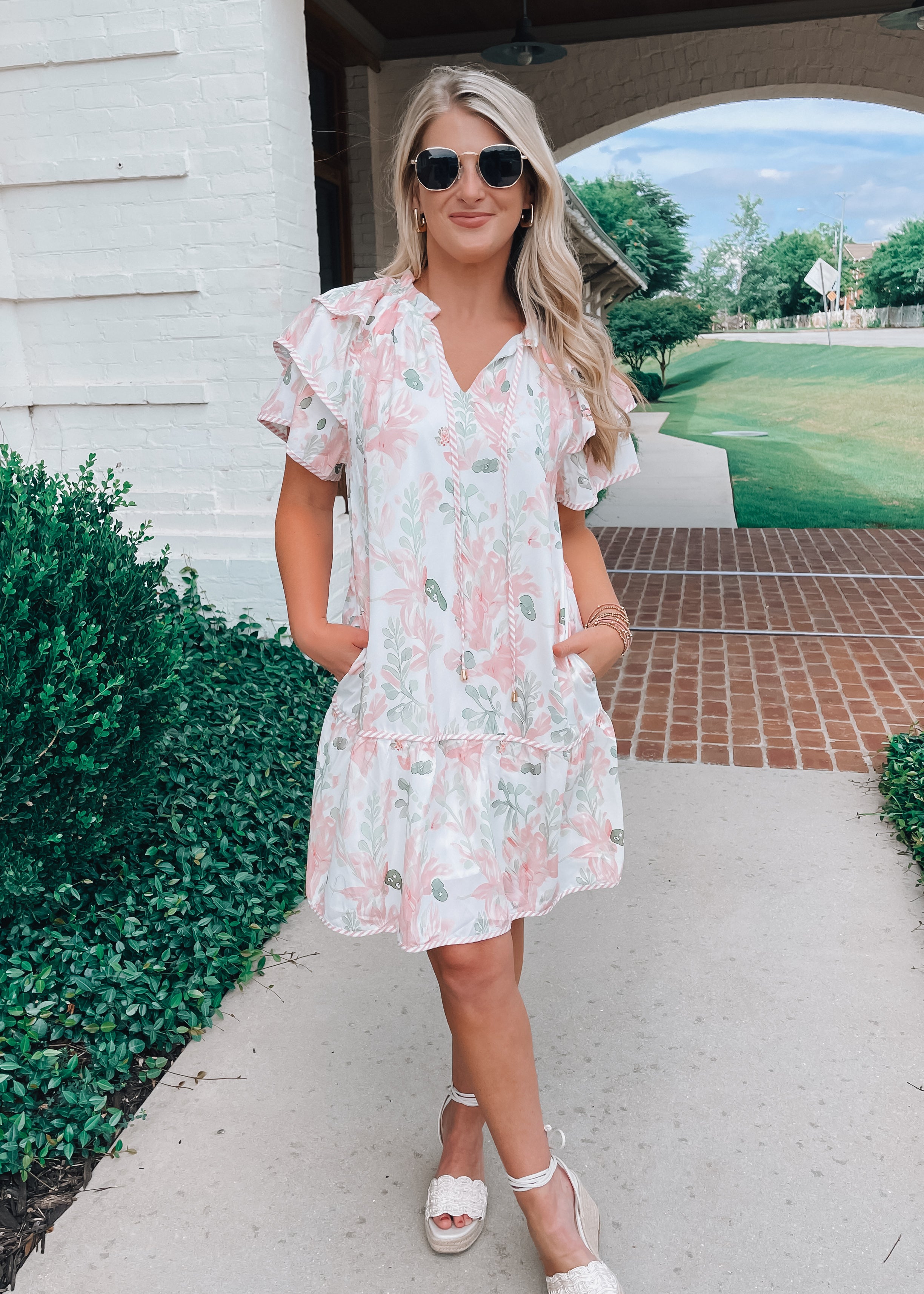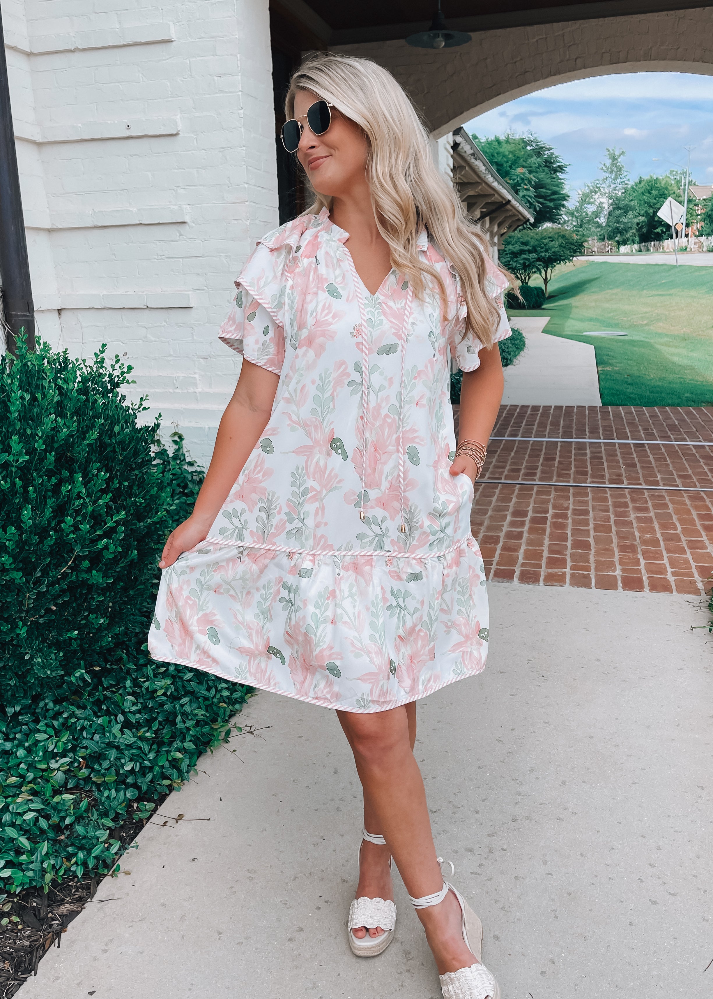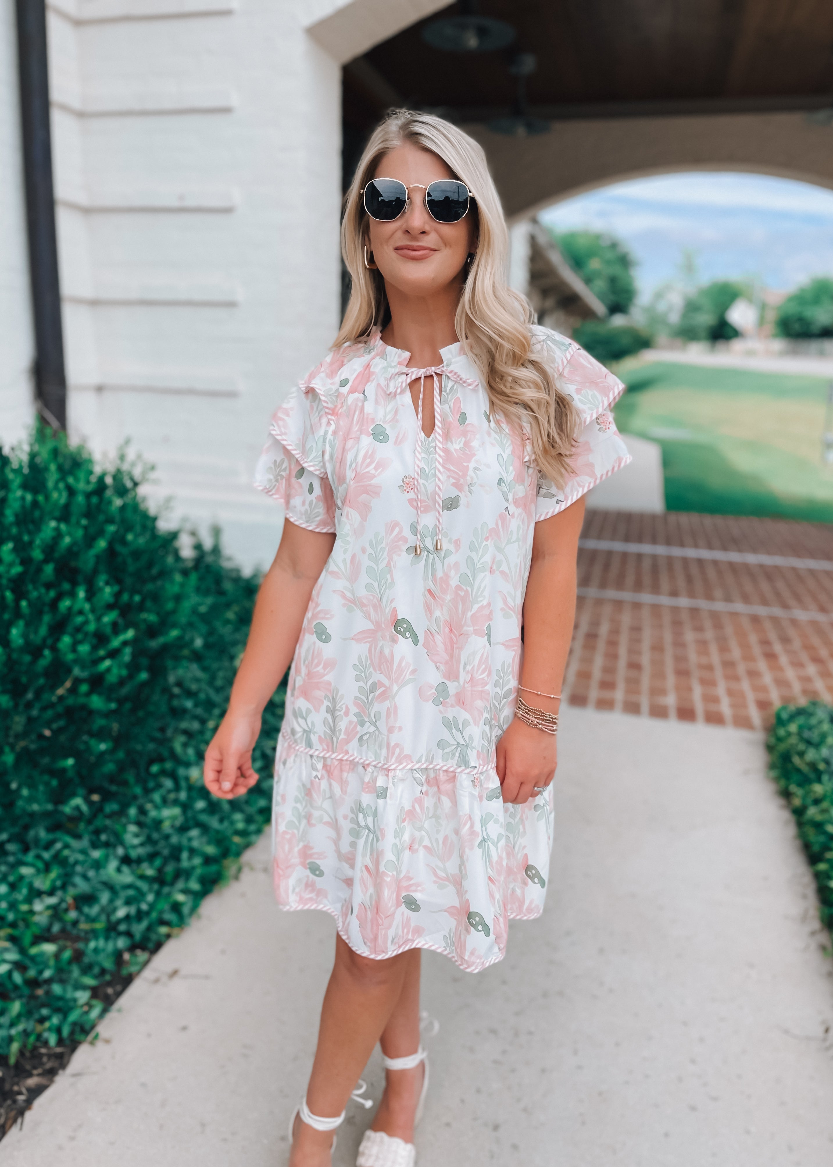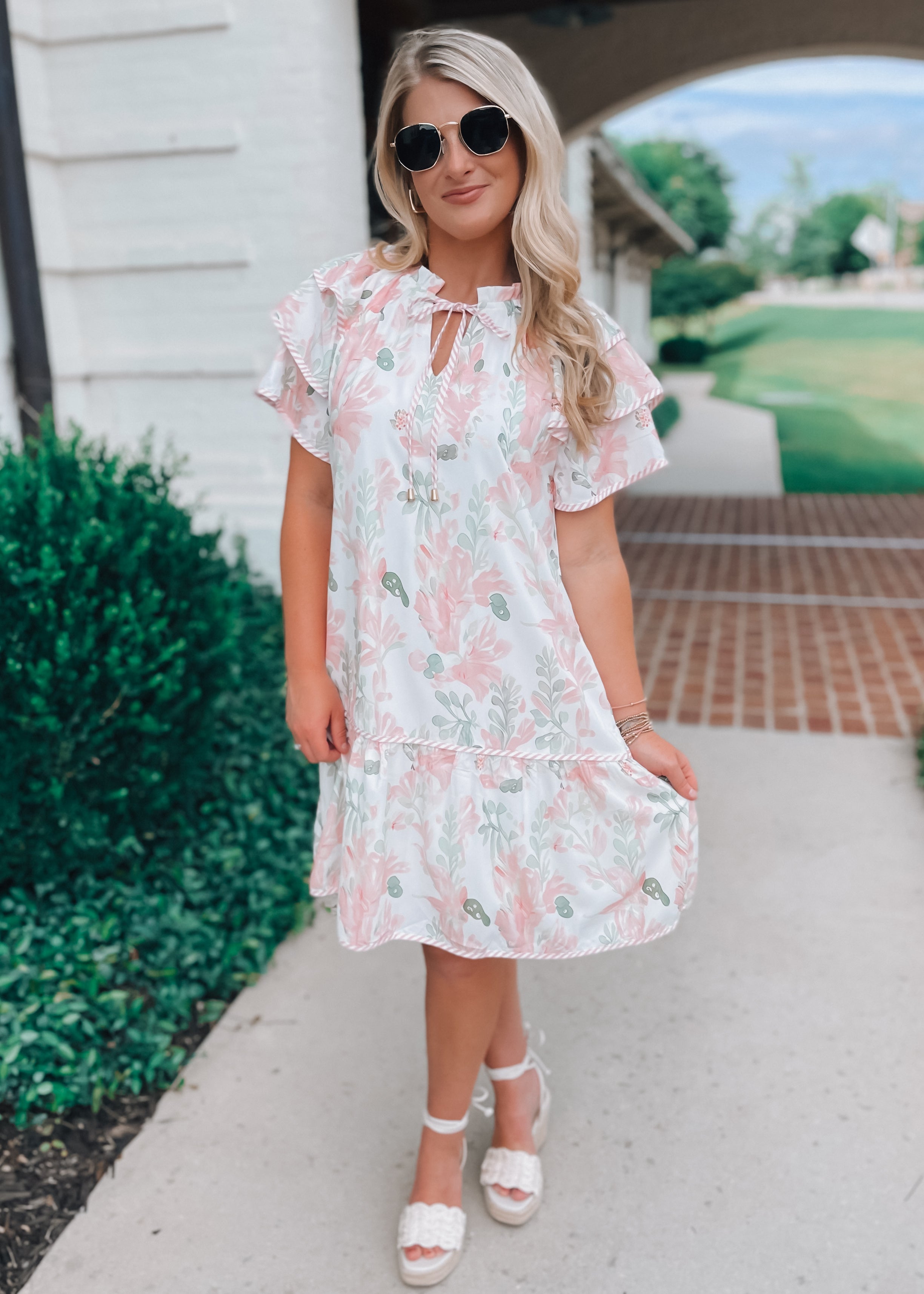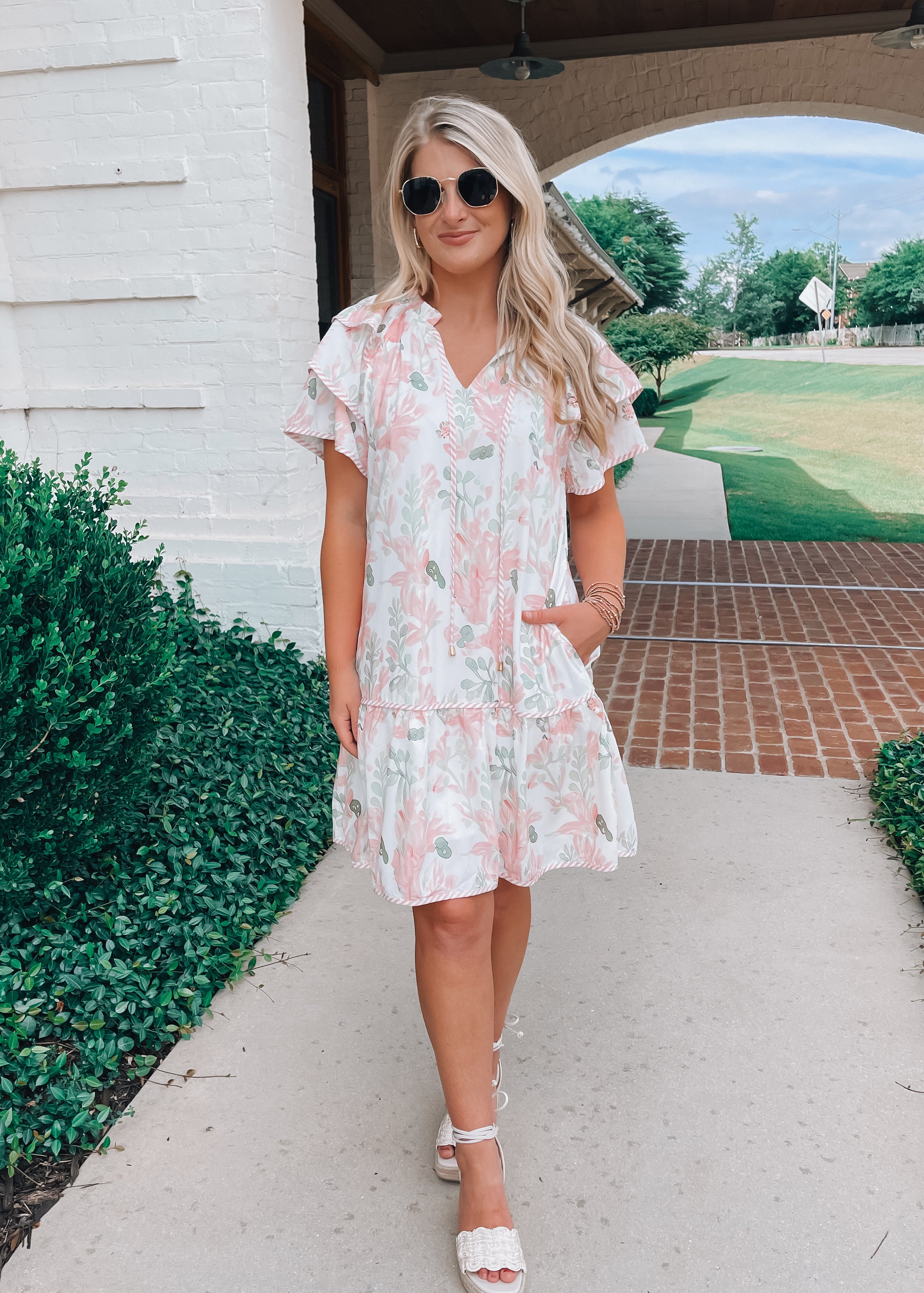 Elevate your wardrobe with our stunning Chic By Nature Mini Dress. This eye-catching piece features beautiful floral patterns with contrast edging and a flattering layered design. Available in soft light pink or refreshing light blue, this short-sleeve mini dress transitions effortlessly from day to evening events. The versatile S-XL sizing ensures a perfect fit for your unique silhouette. Don't miss your chance to make a statement with this must-have seasonal essential.