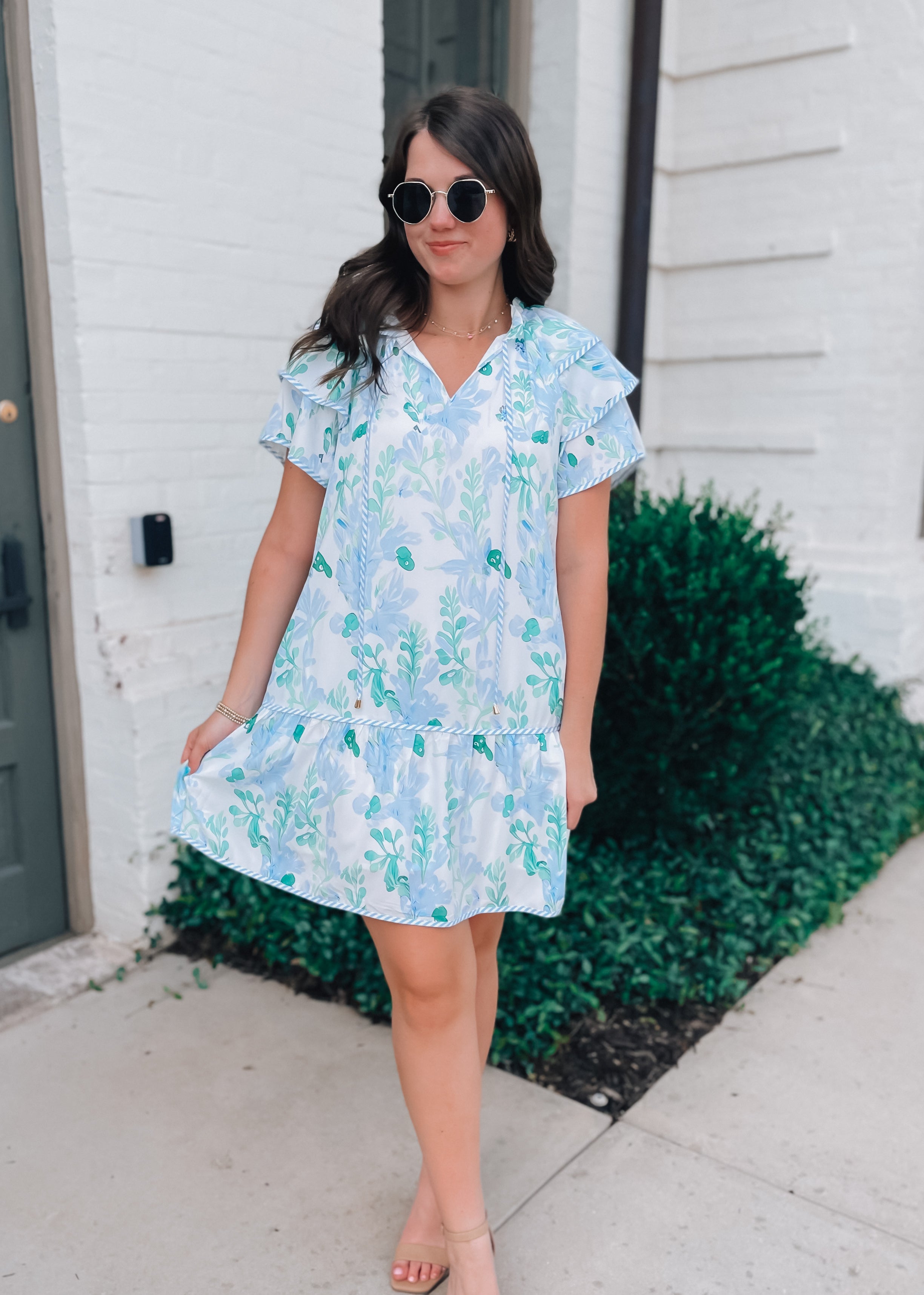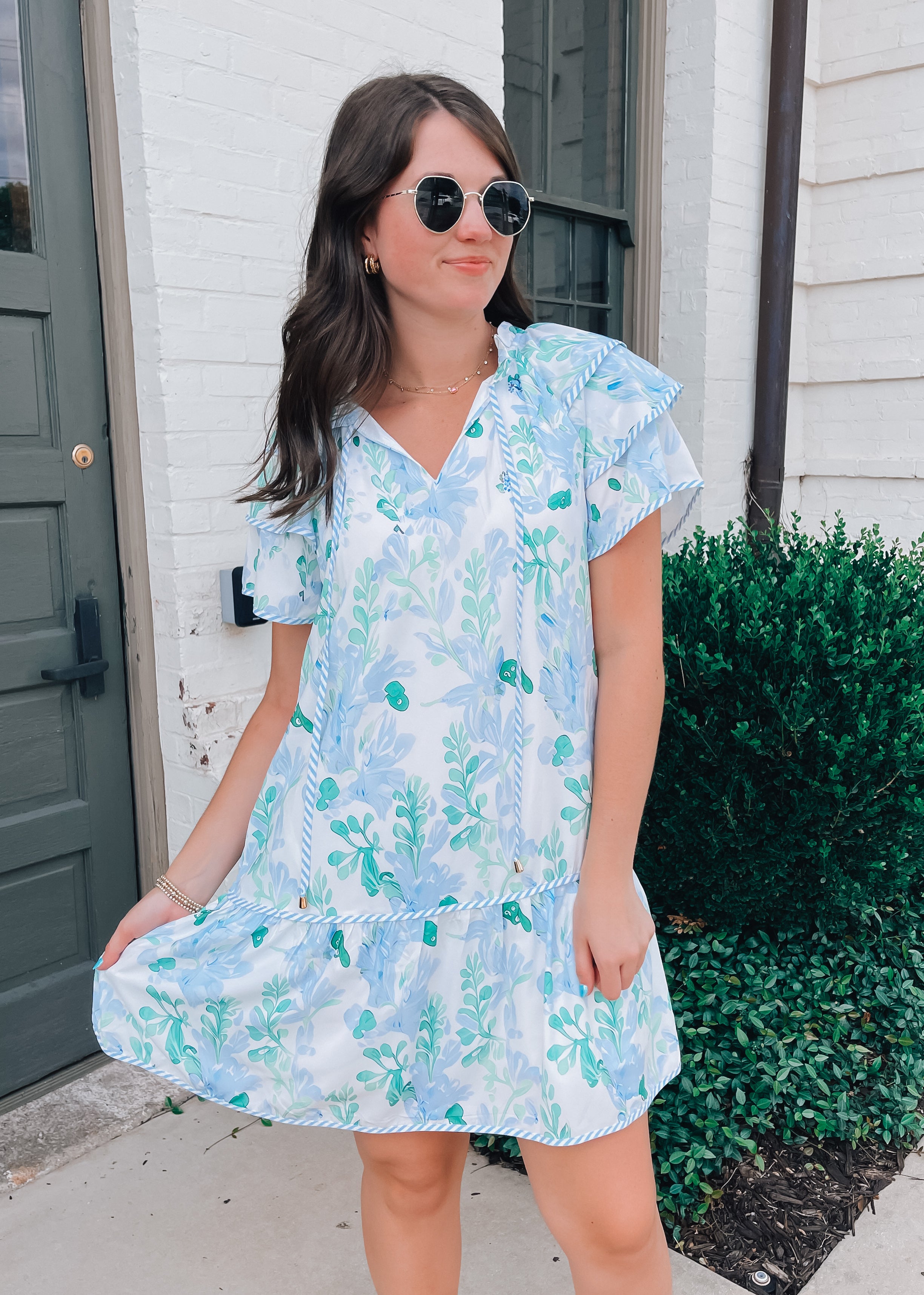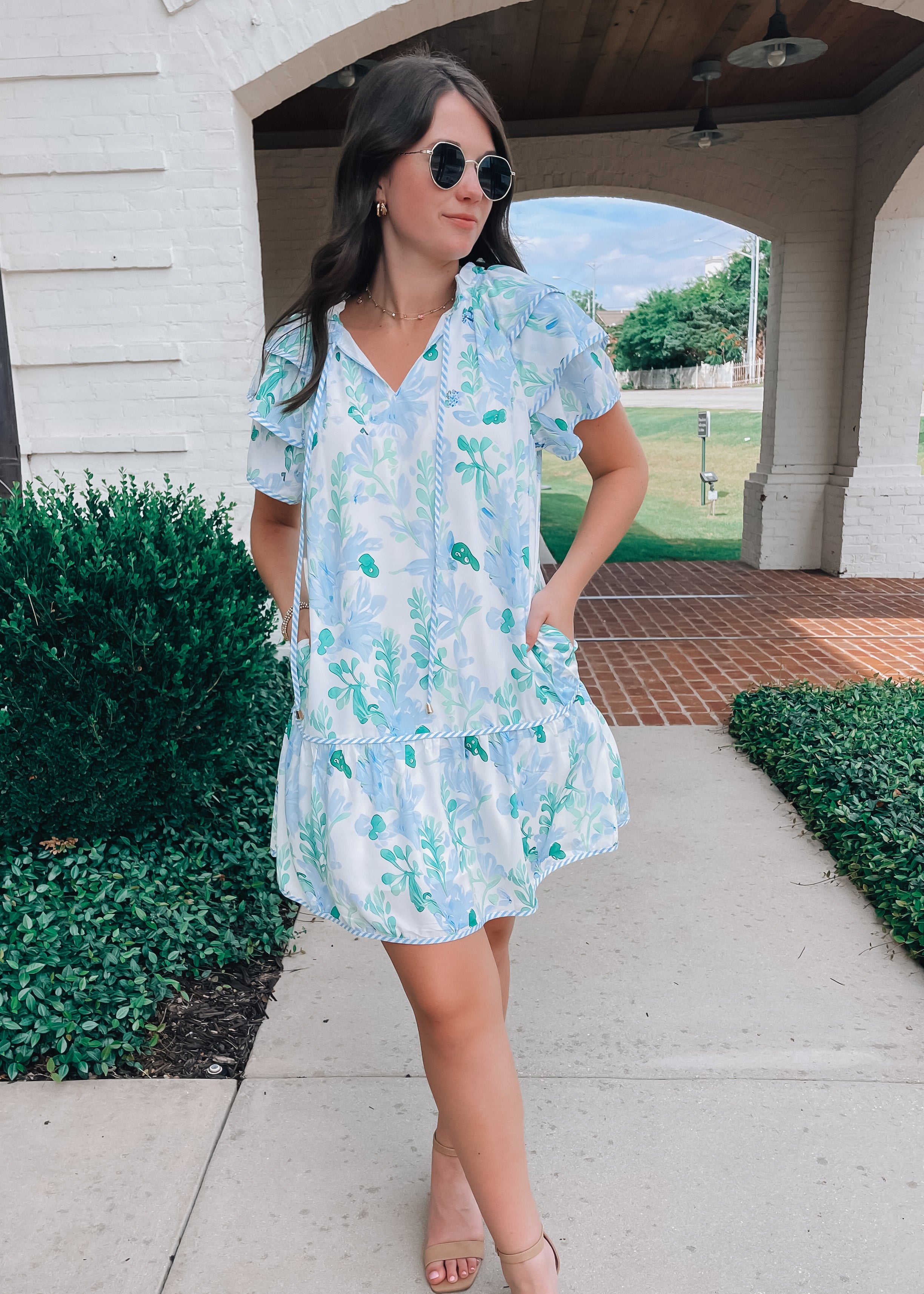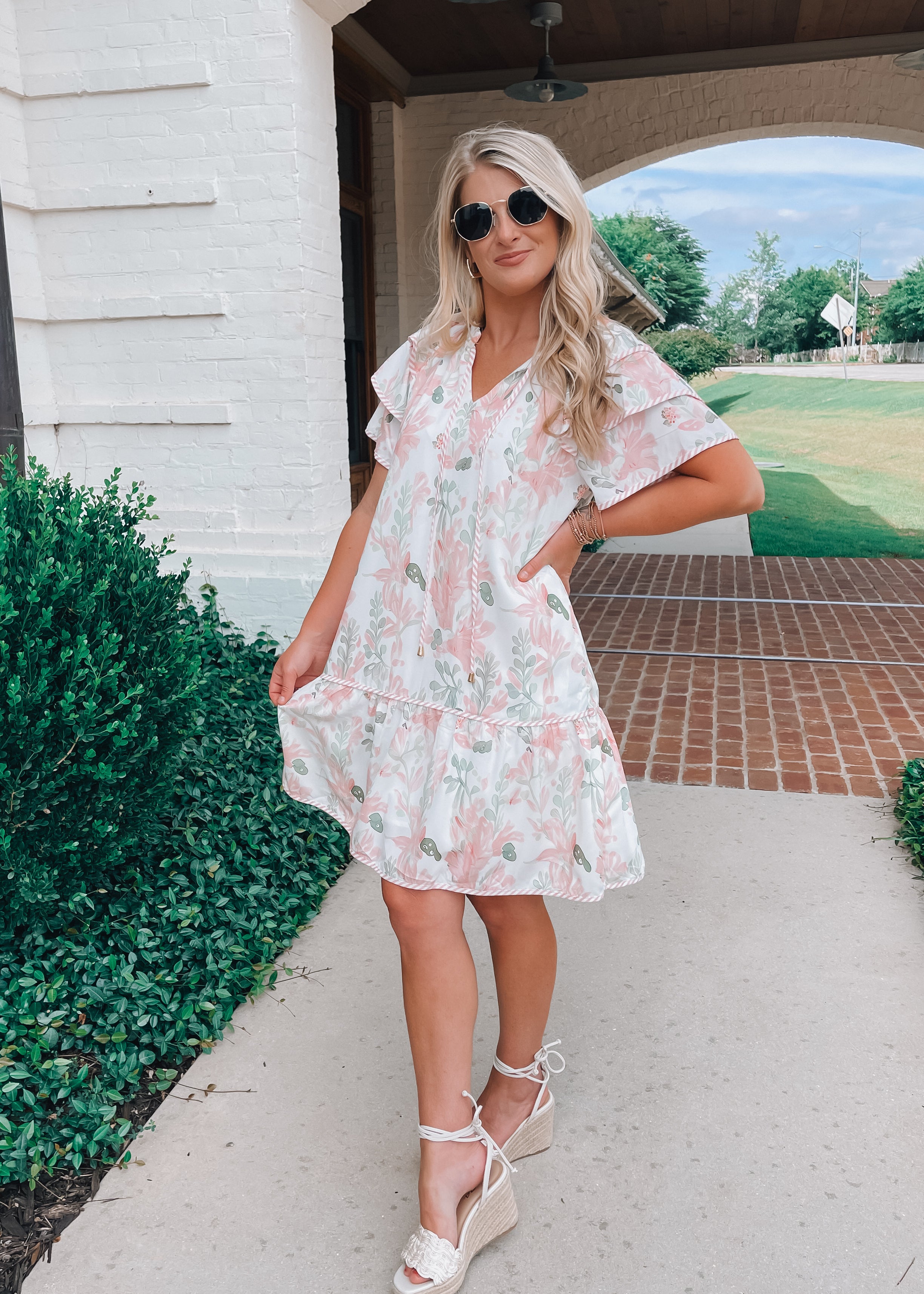 Elevate your wardrobe with our stunning Chic By Nature Mini Dress. This eye-catching piece features beautiful floral patterns with contrast edging and a flattering layered design. Available in soft light pink or refreshing light blue, this short-sleeve mini dress transitions effortlessly from day to evening events. The versatile S-XL sizing ensures a perfect fit for your unique silhouette. Don't miss your chance to make a statement with this must-have seasonal essential.
