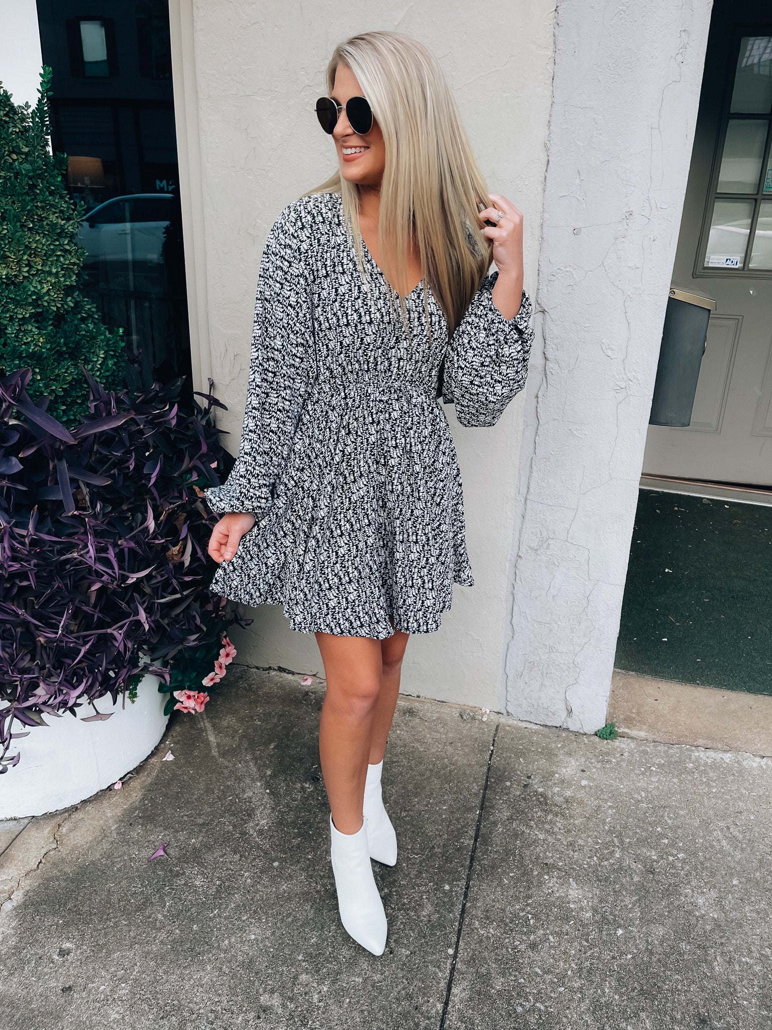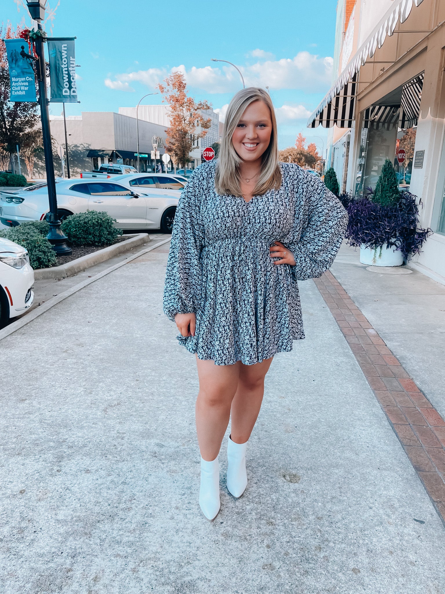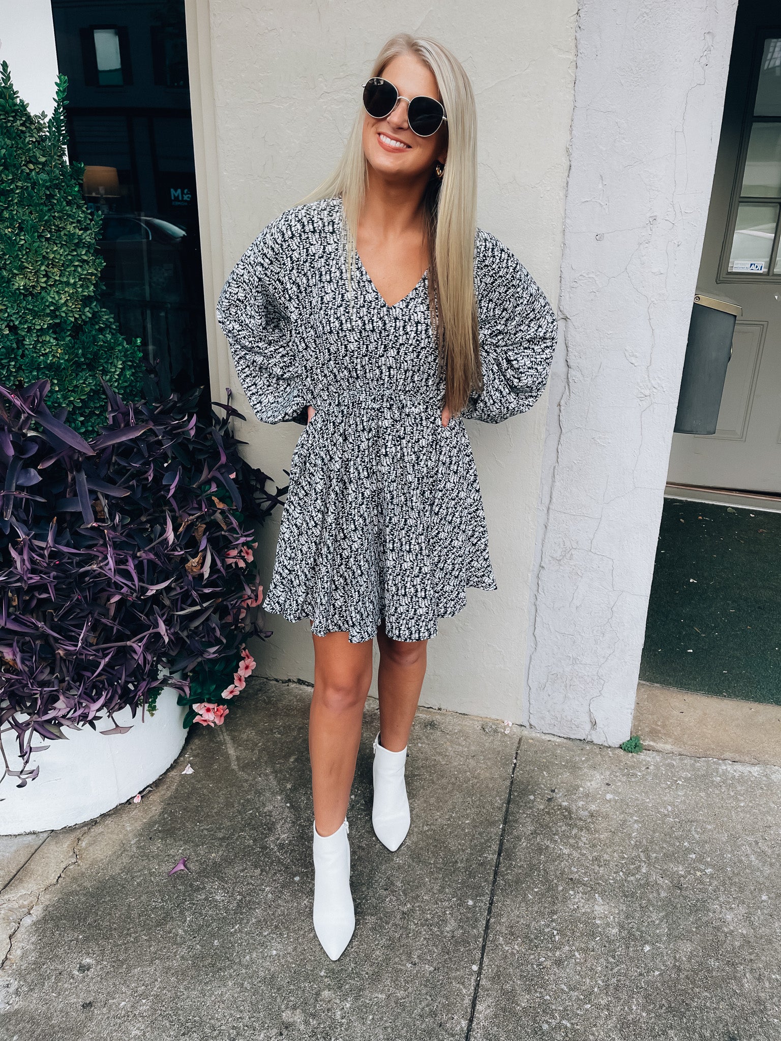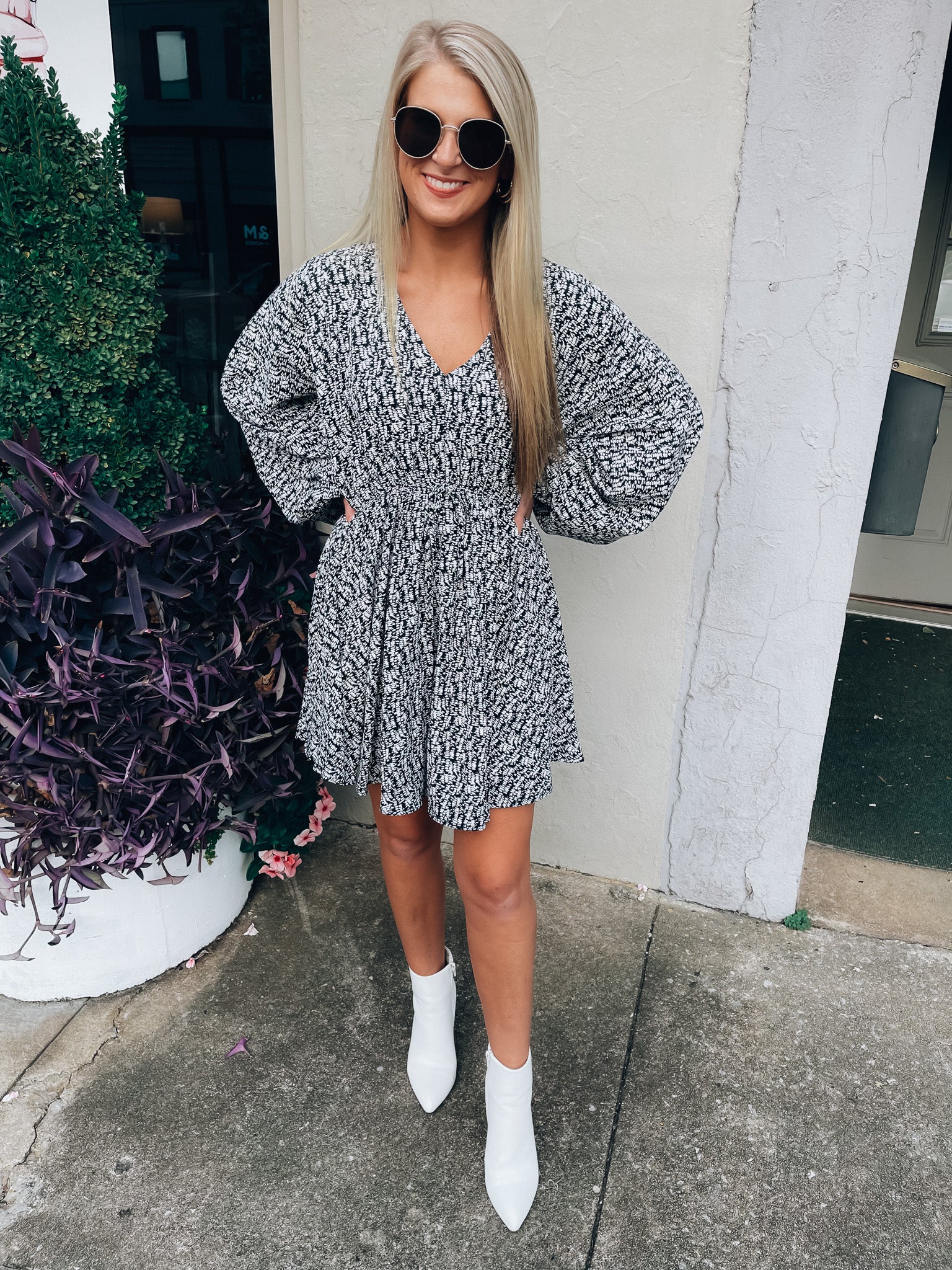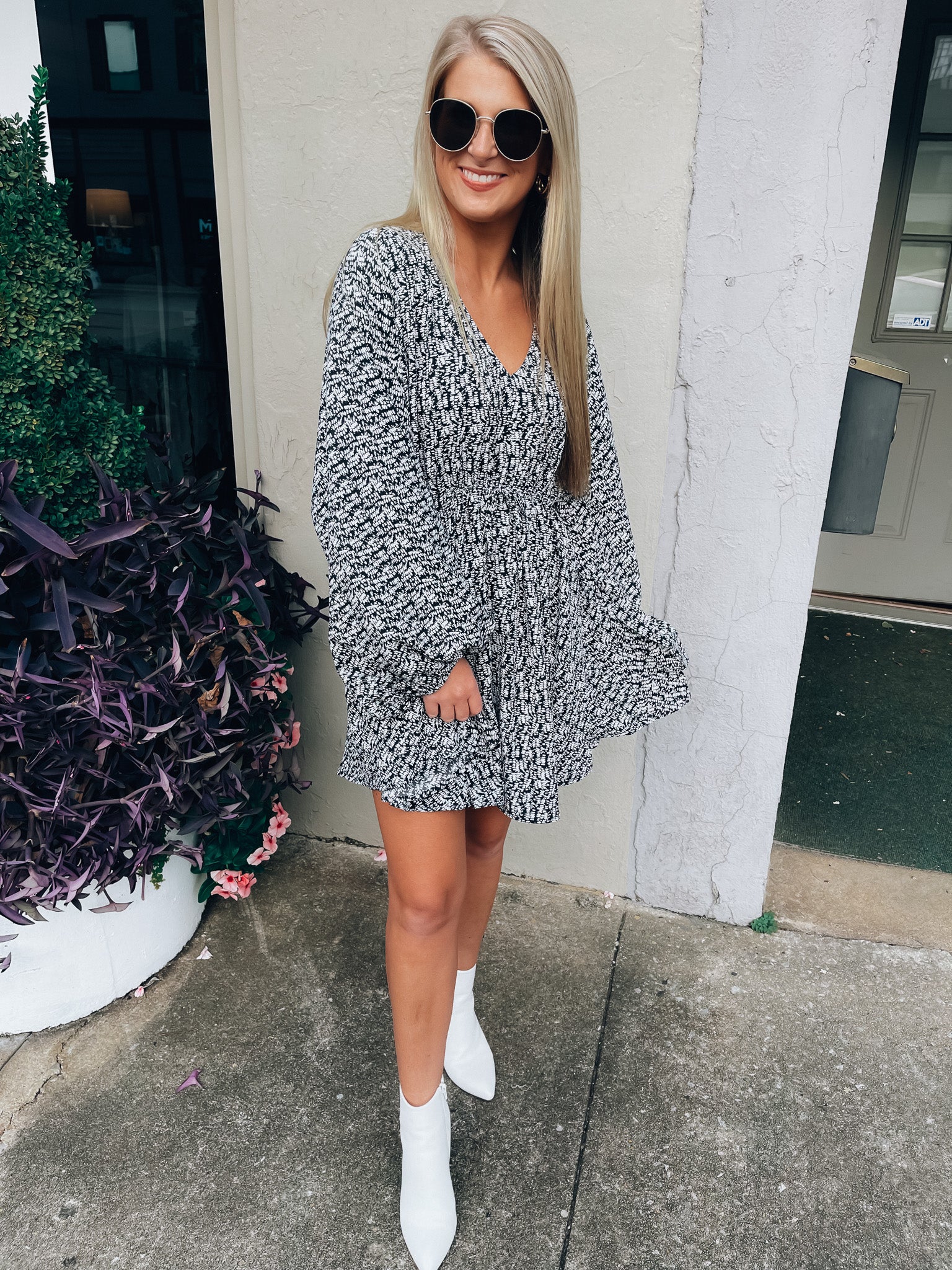 Dress features a V-neck detail with an elastic waist sure to make you feel delighted all day long.