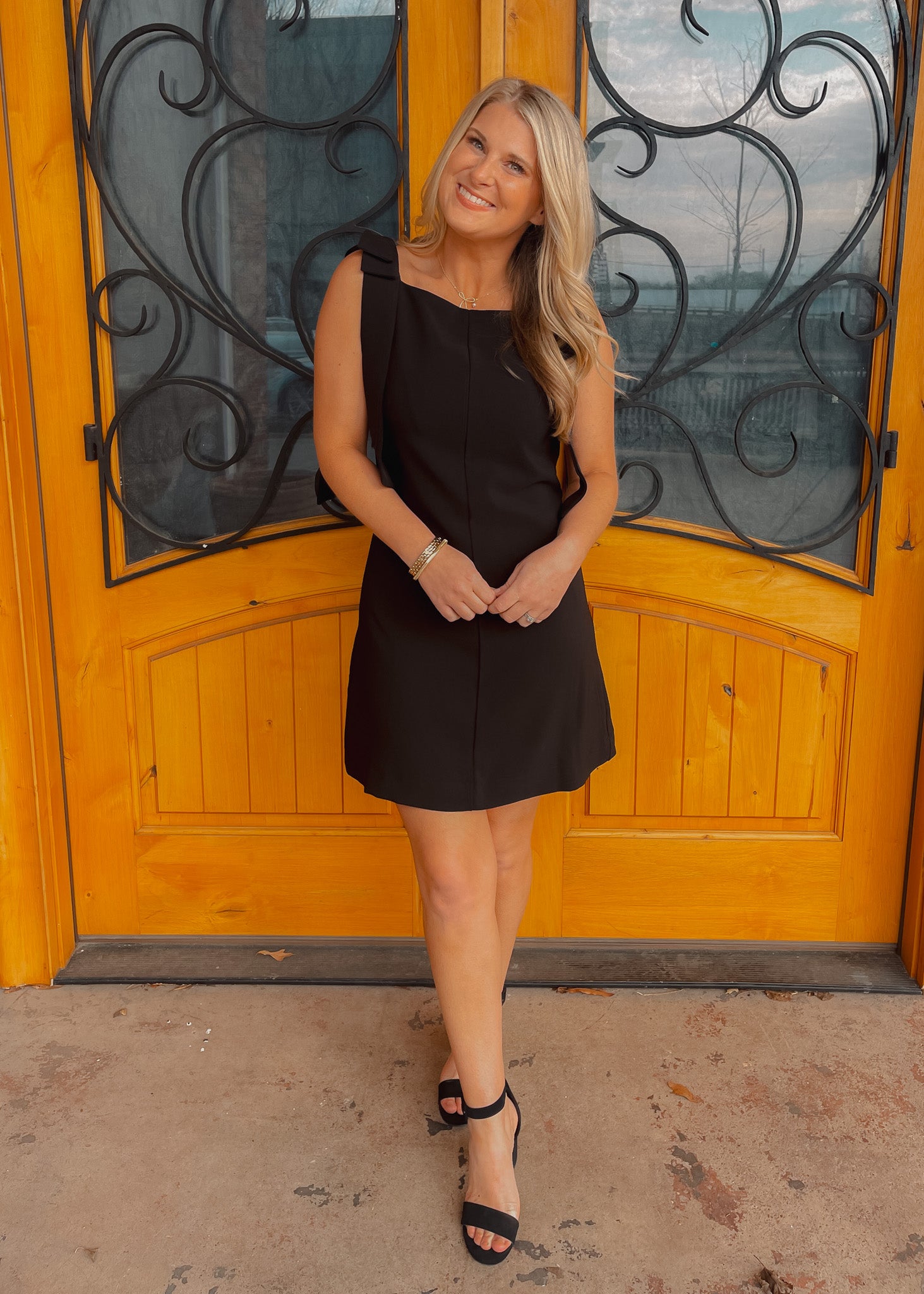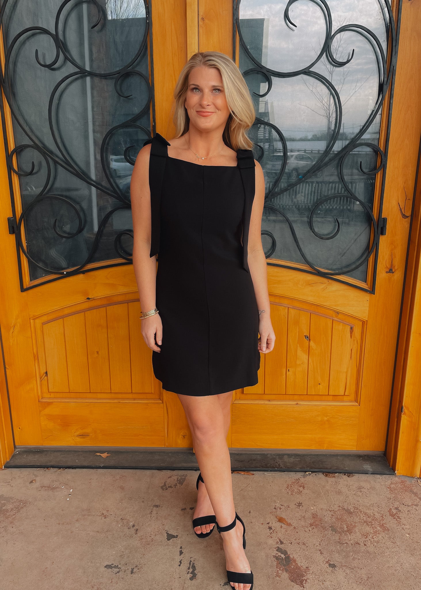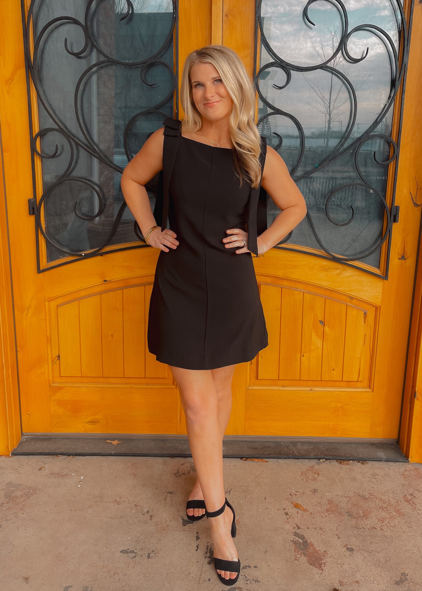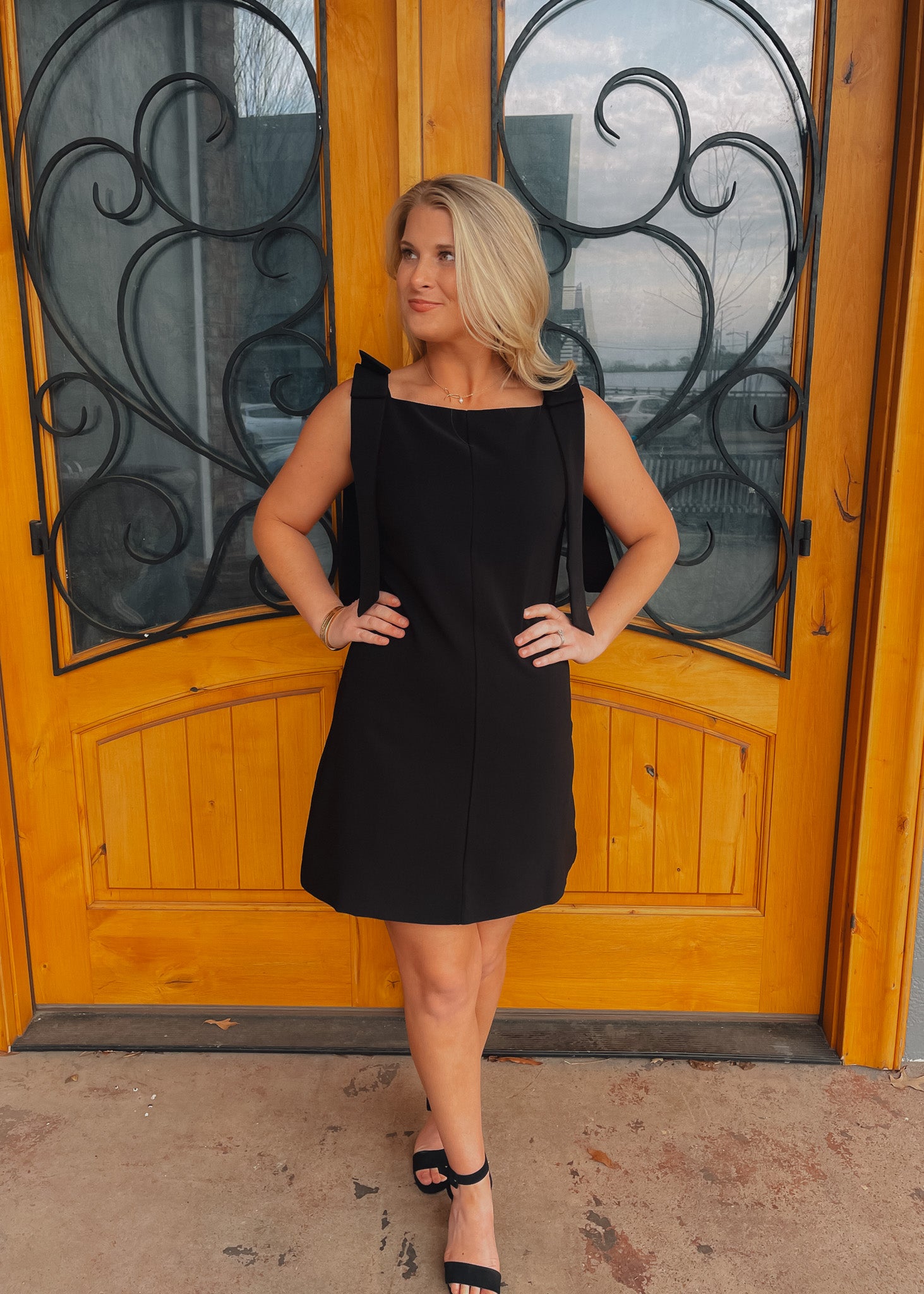 Get down to business in this dress with a playful straight neckline and adorable bow sleeves. Available in both black and pink, this dress is perfect for a day at the office or a night out on the town. Dress up and feel confident in this versatile and stylish option.