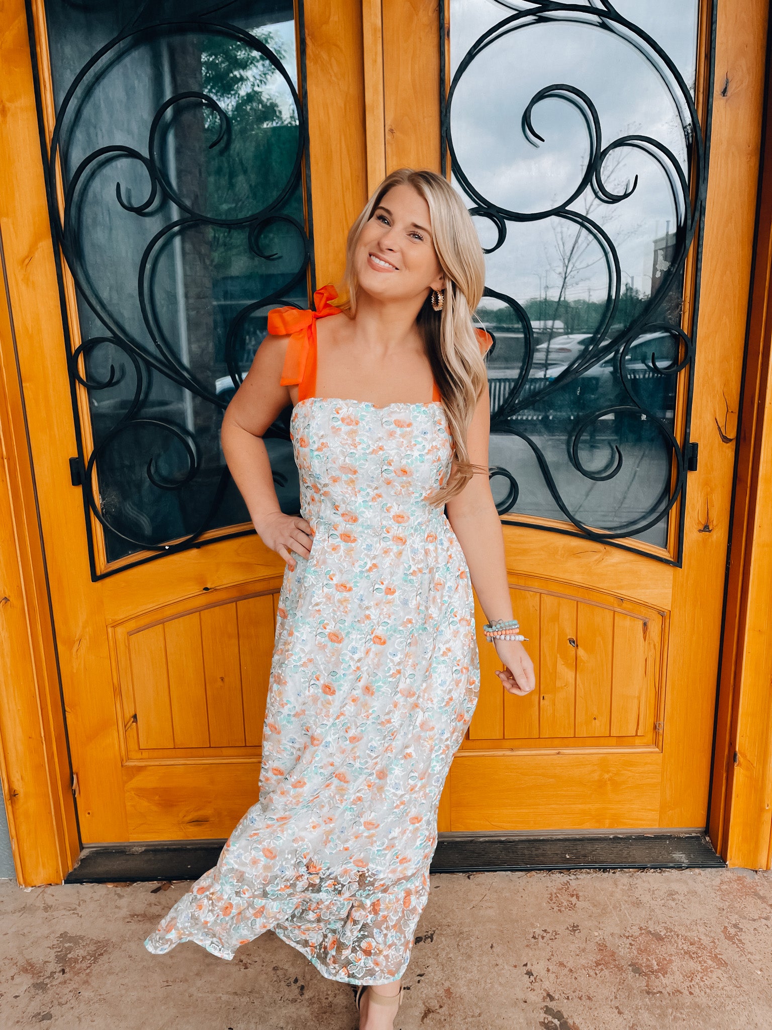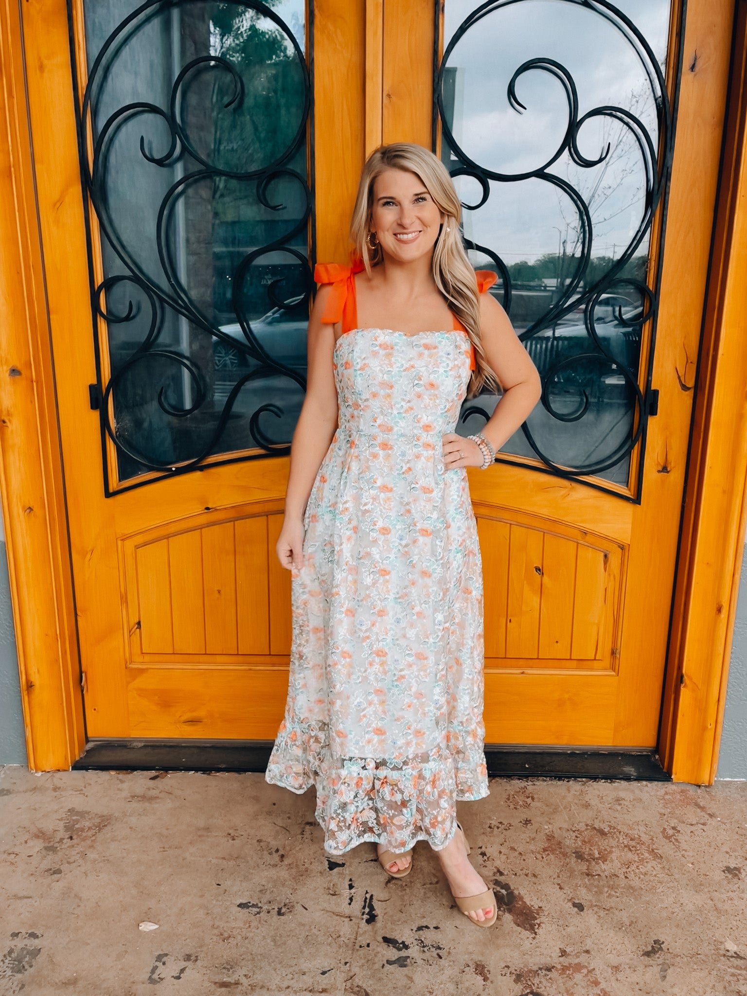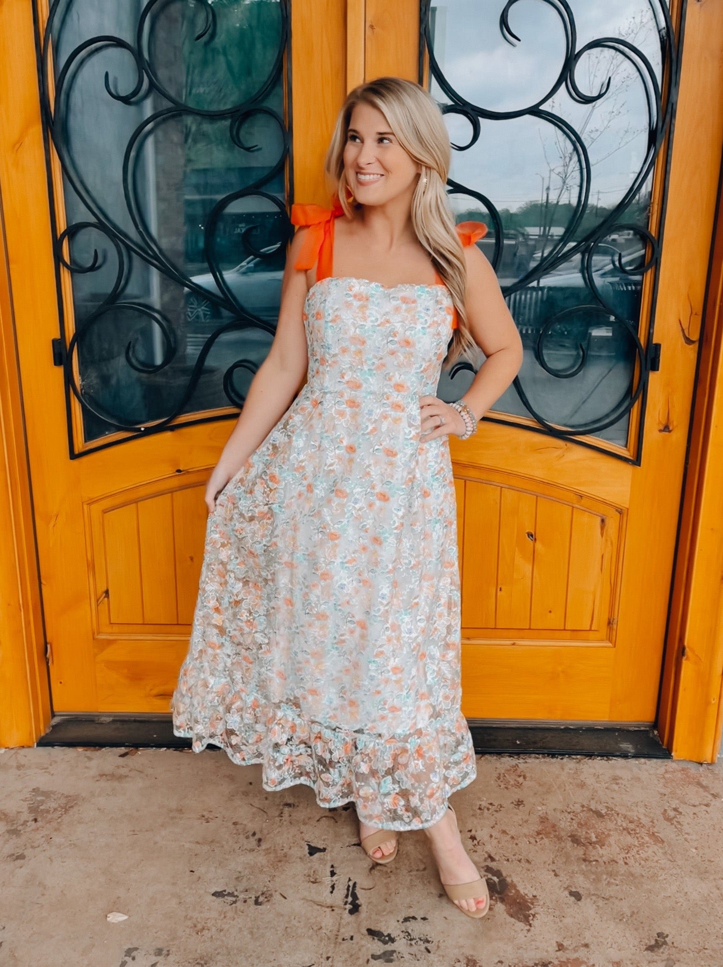 Experience eternal beauty in our Everlasting Love Dress. Made from soft cotton and adorned with intricate embroidery, this maxi dress features self tie ribbon straps for a customizable fit. The floral print adds a touch of charm, while the eyelet detail provides a delicate, feminine touch. Get ready to turn heads and feel effortlessly romantic in this must-have dress.