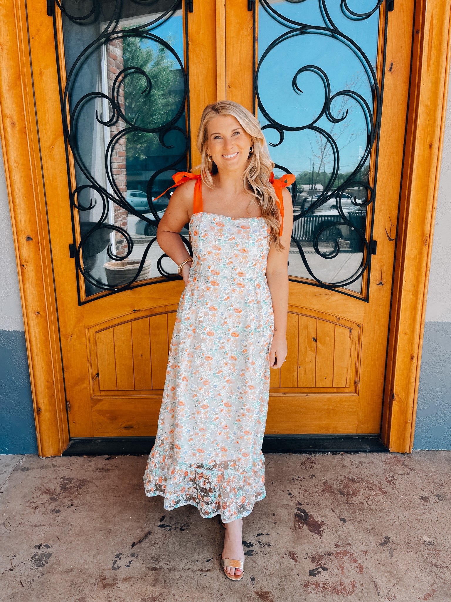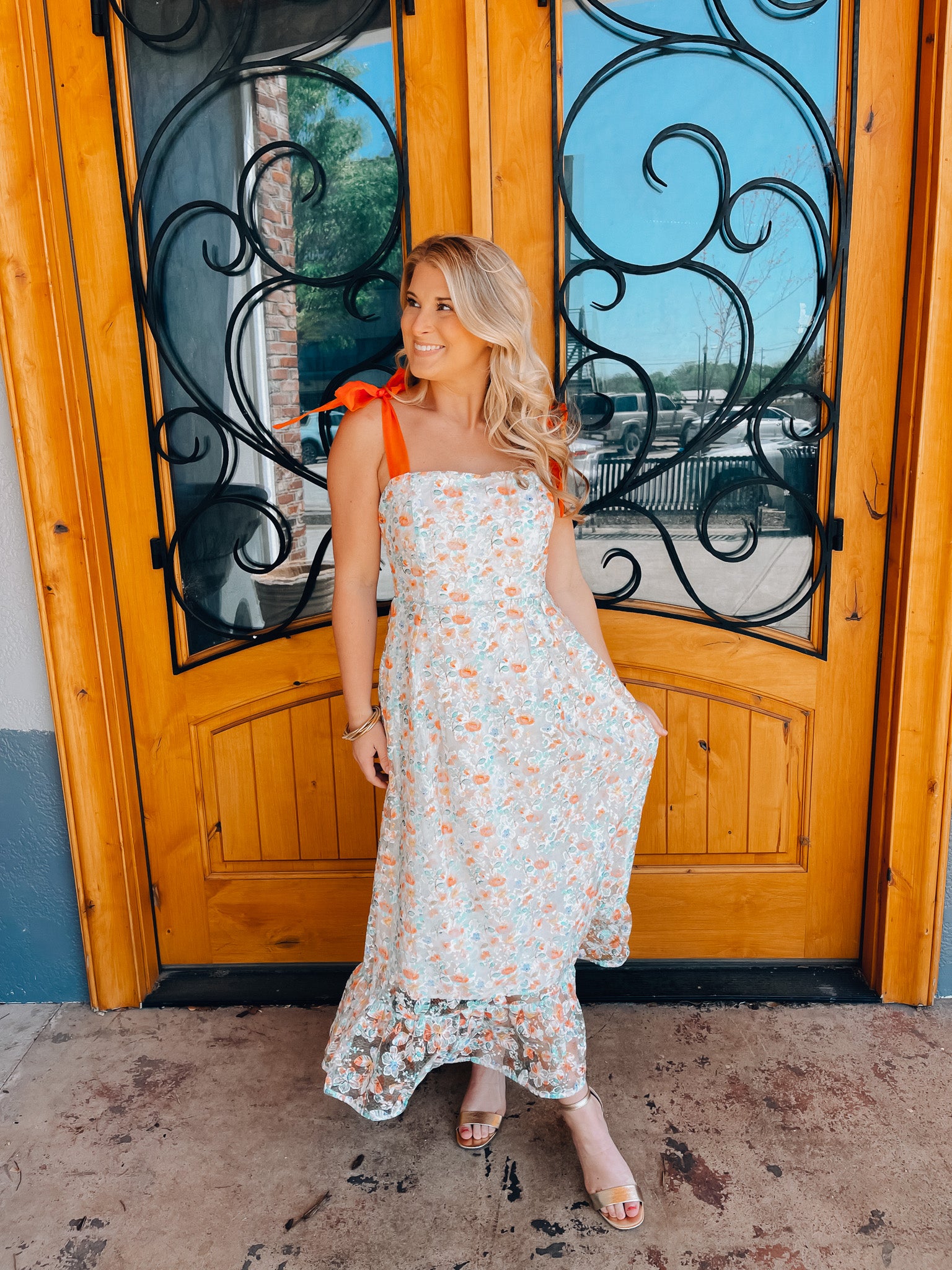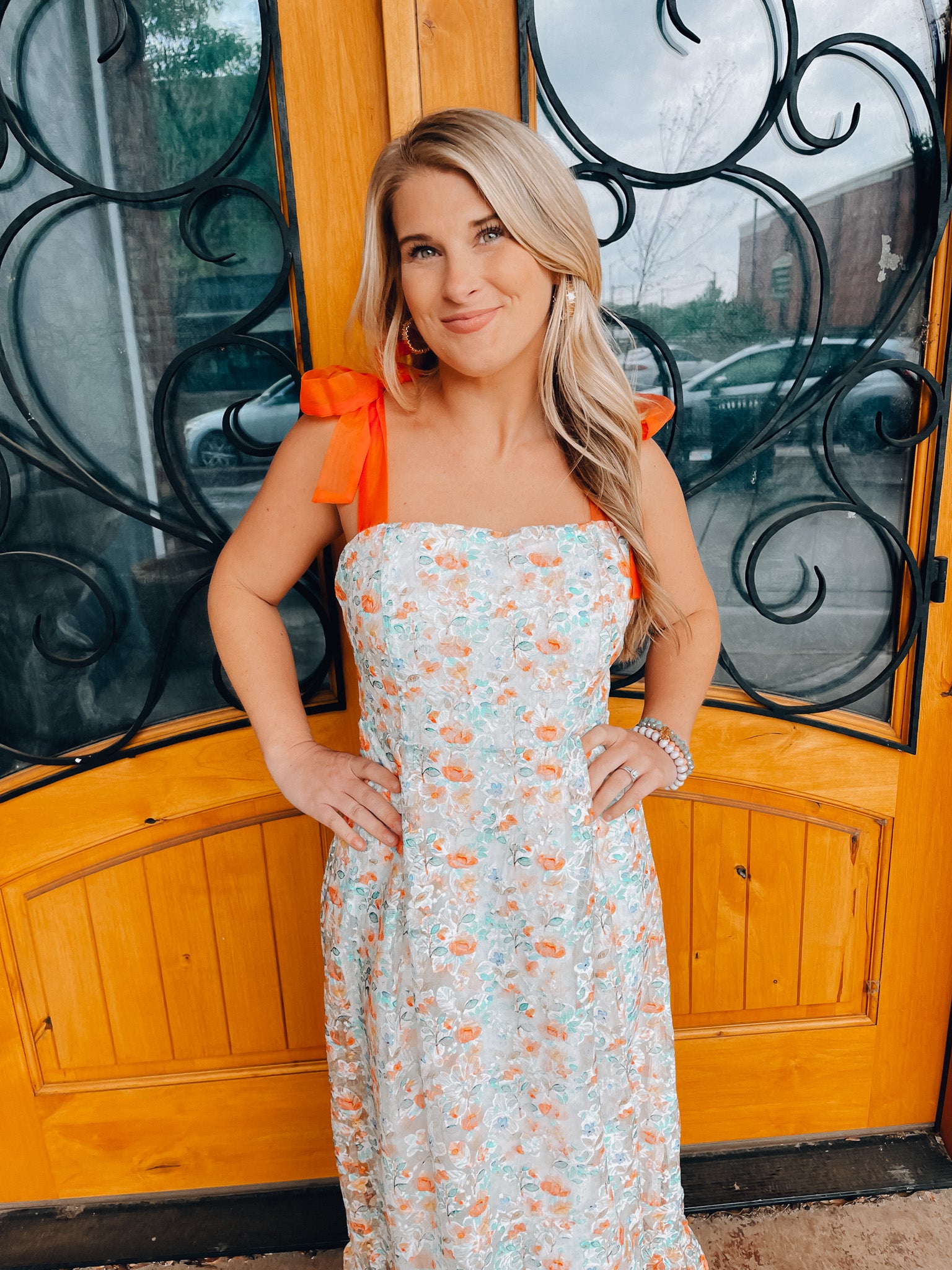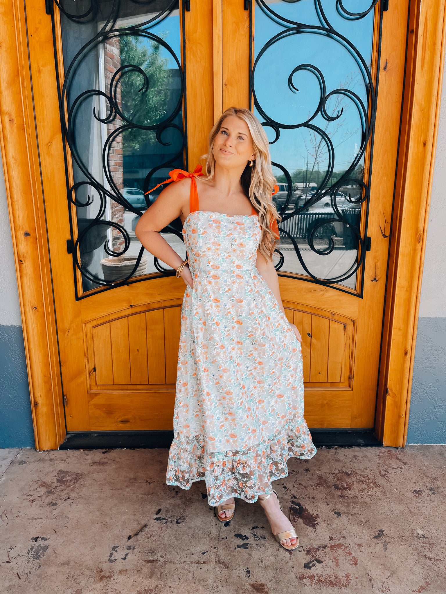 Experience eternal beauty in our Everlasting Love Dress. Made from soft cotton and adorned with intricate embroidery, this maxi dress features self tie ribbon straps for a customizable fit. The floral print adds a touch of charm, while the eyelet detail provides a delicate, feminine touch. Get ready to turn heads and feel effortlessly romantic in this must-have dress.