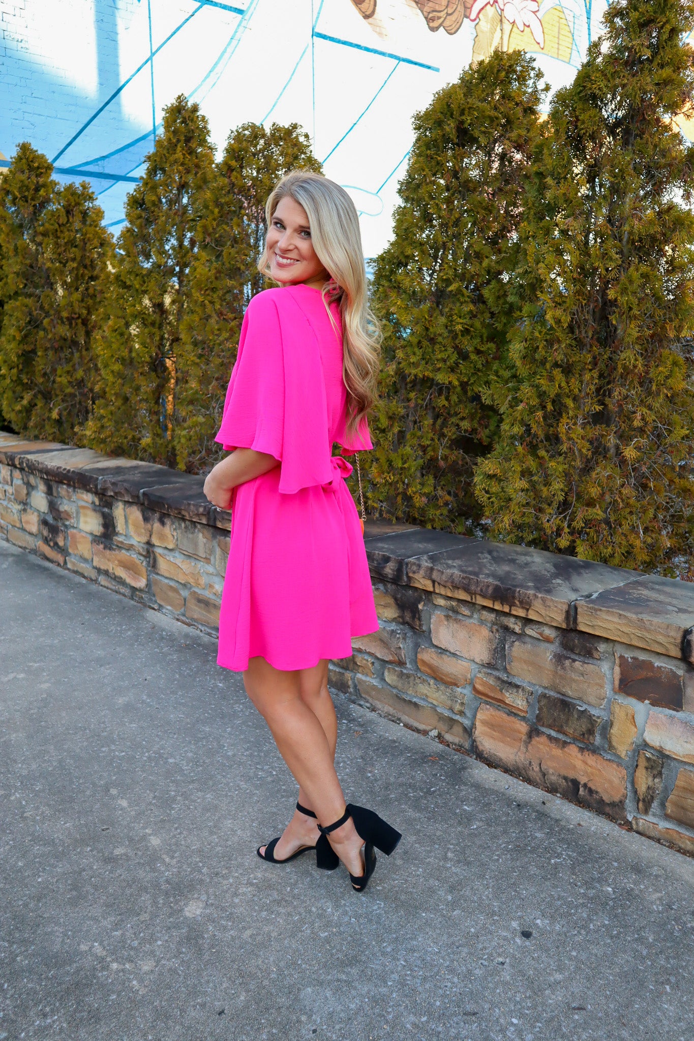 This Forever Admiring Dress is a beautiful hue of hot pink fuchsia and features delicate flutter sleeves. The perfect addition to any wardrobe, this dress is designed to make a statement while providing maximum comfort. The lightweight fabric and breathable design will keep you looking and feeling your best.