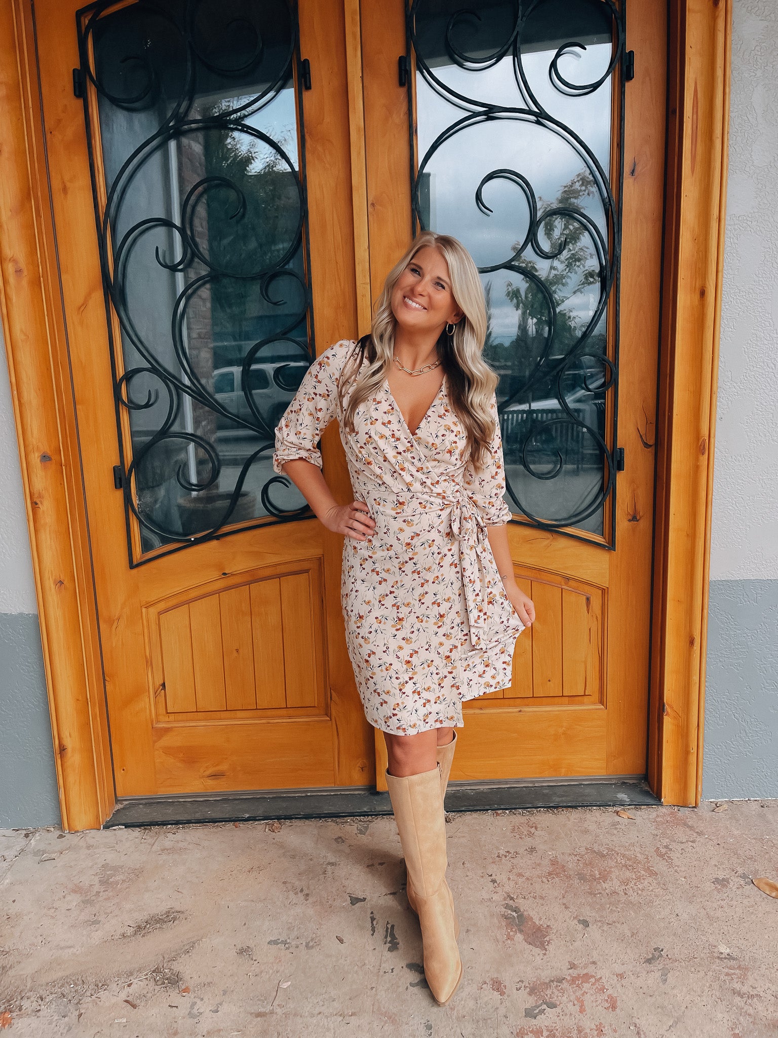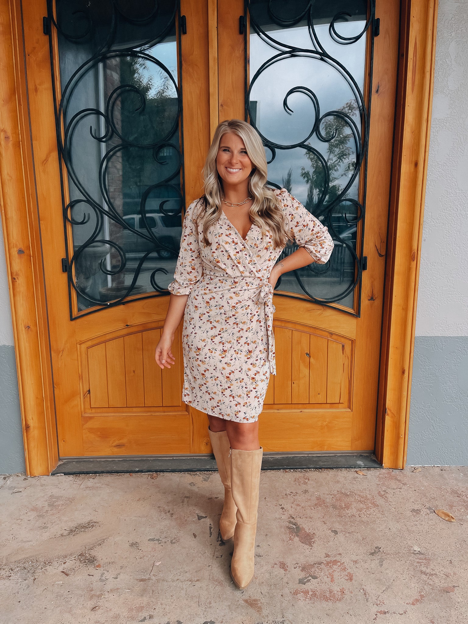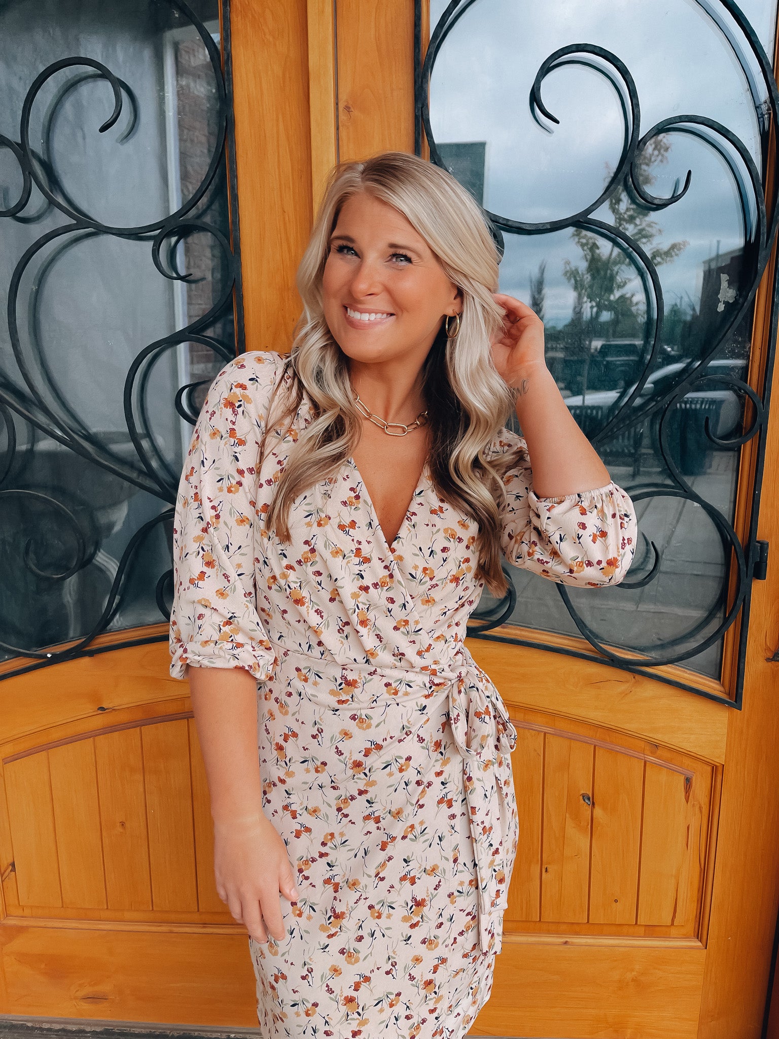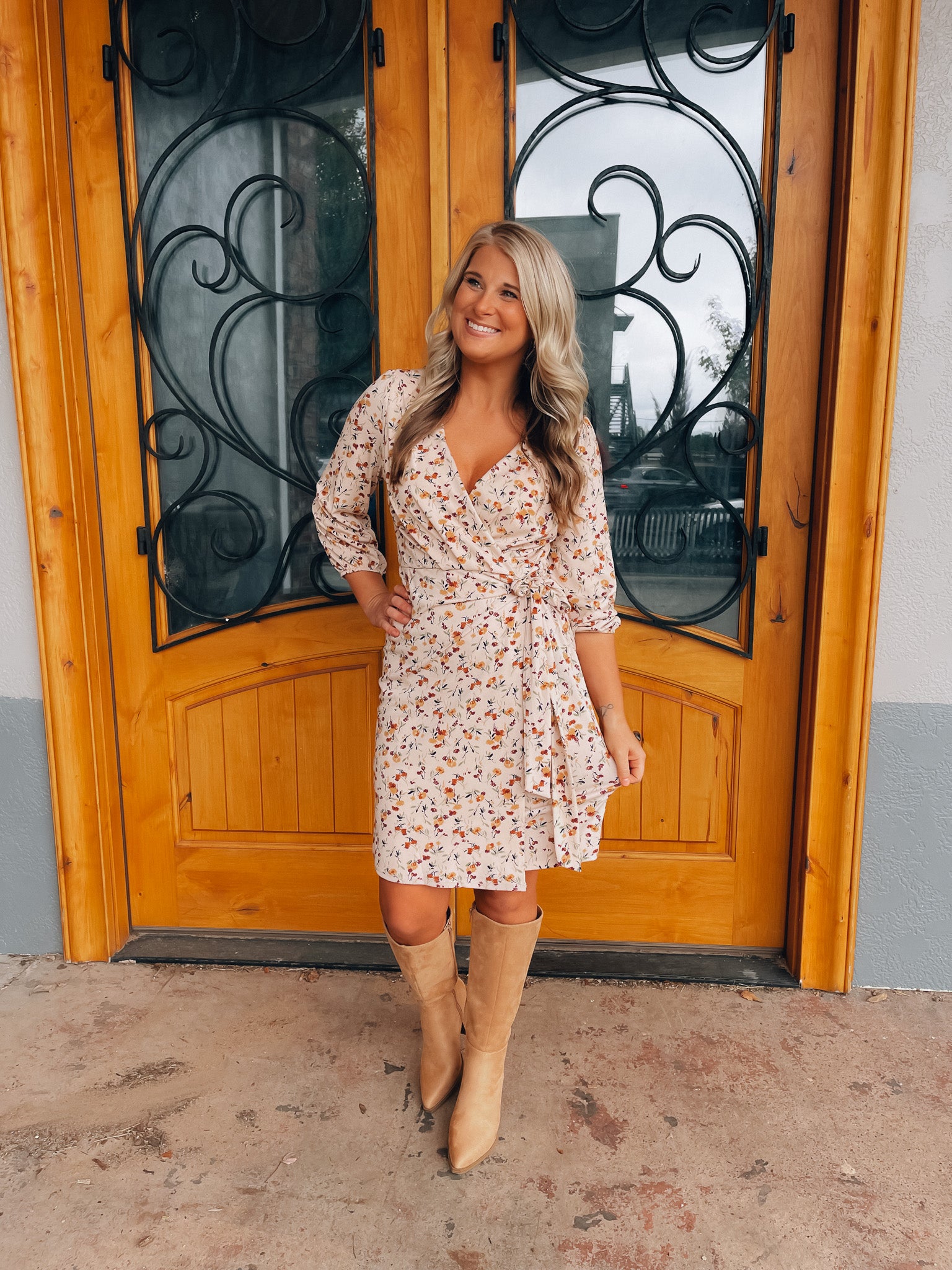 Dress to impress in this Friend Zone Dress. Its deep V-neck and faux wrap detail accent your curves, while the 3/4 sleeve and functional tie cinch your waist in all the right places. The gorgeous deep tone florals add an extra touch of glamour. Look and feel beautiful!