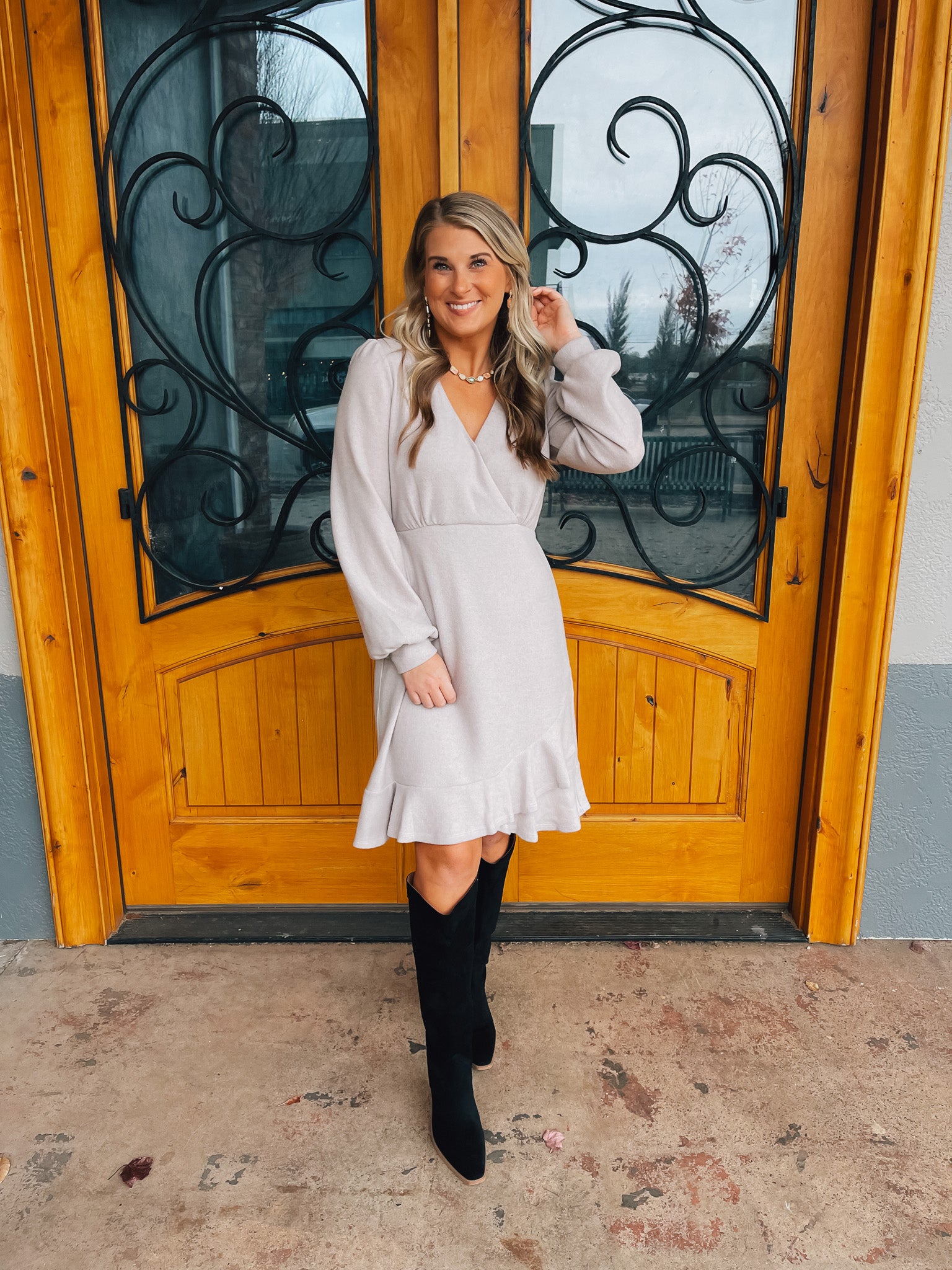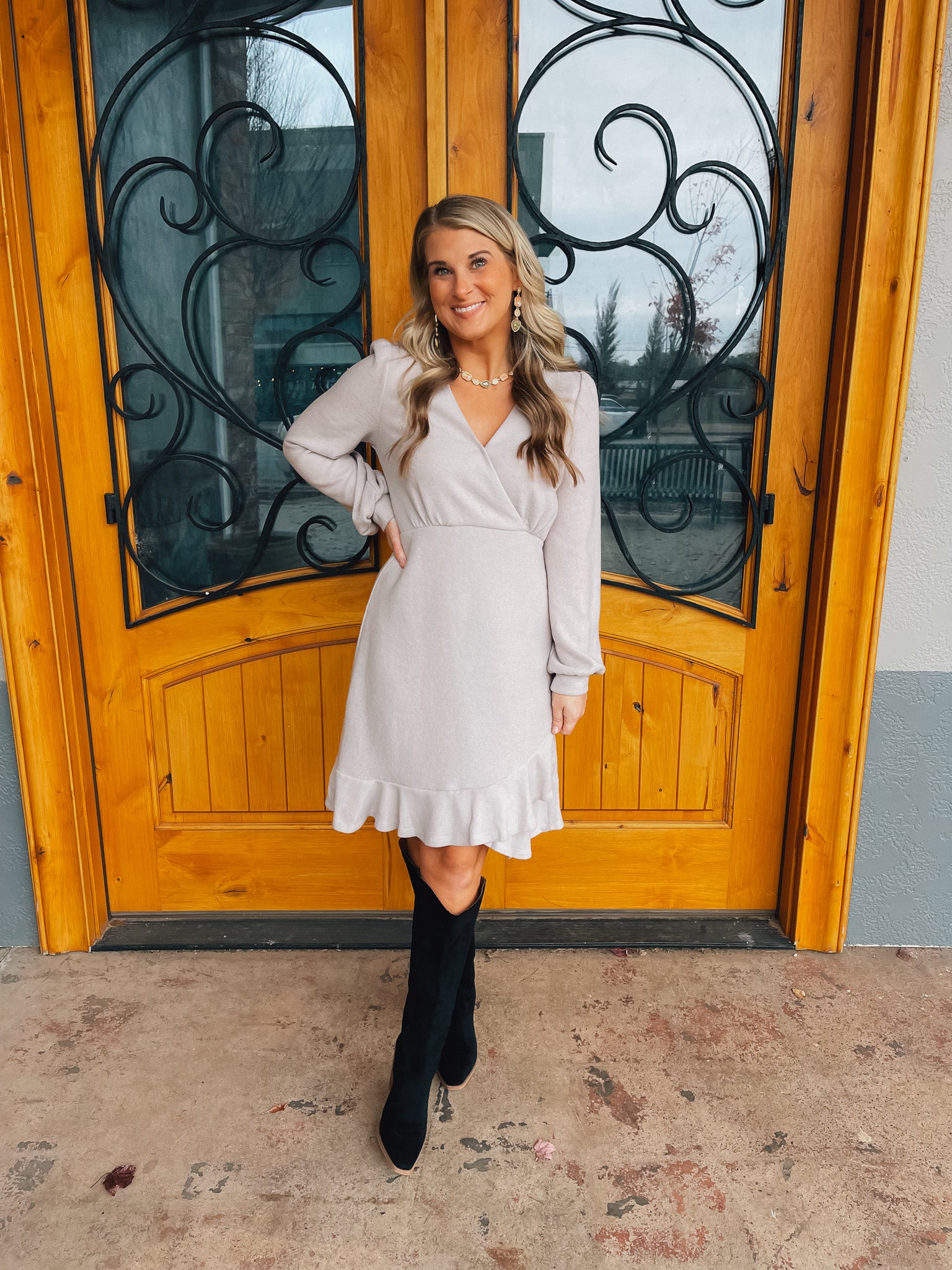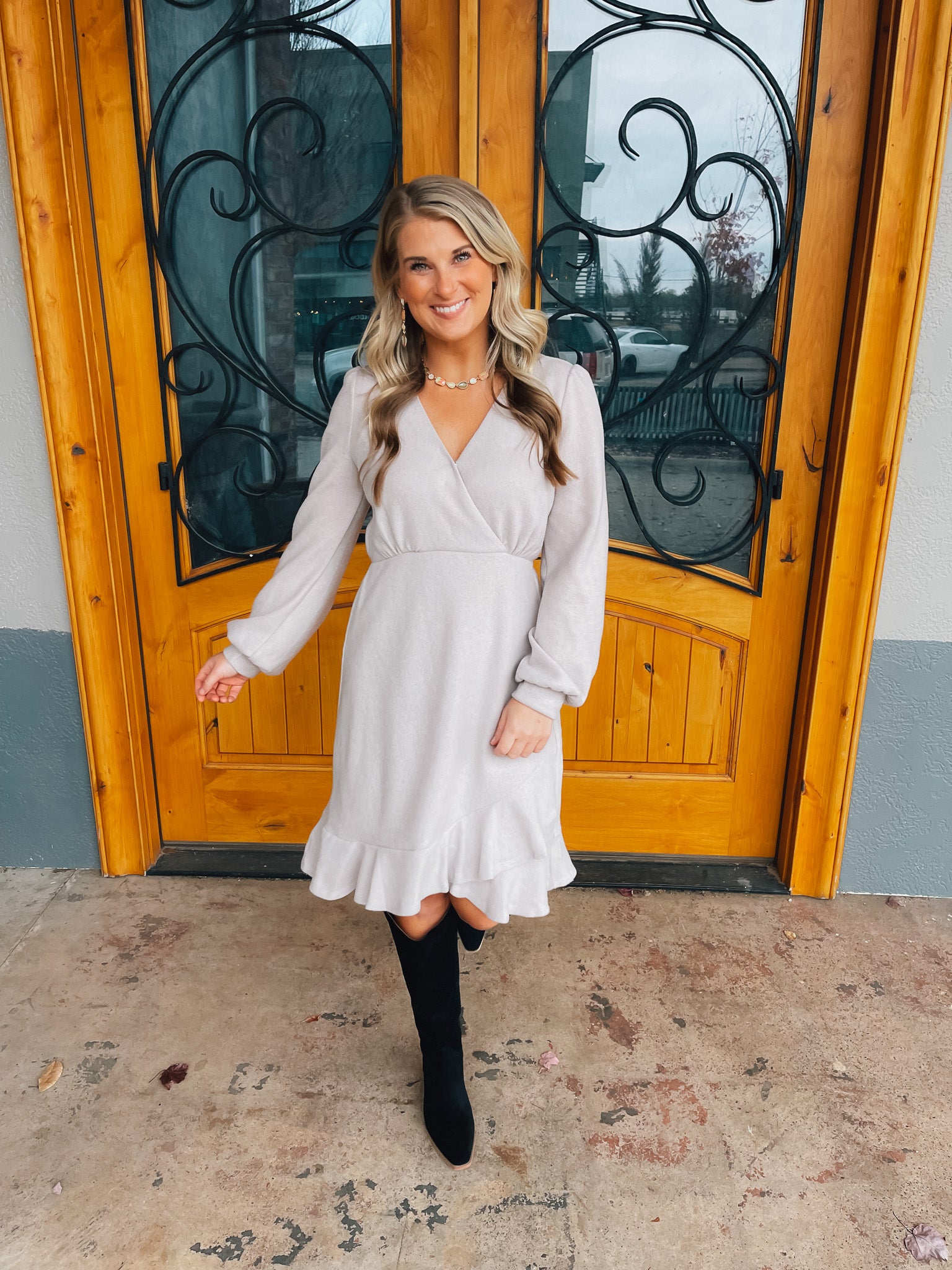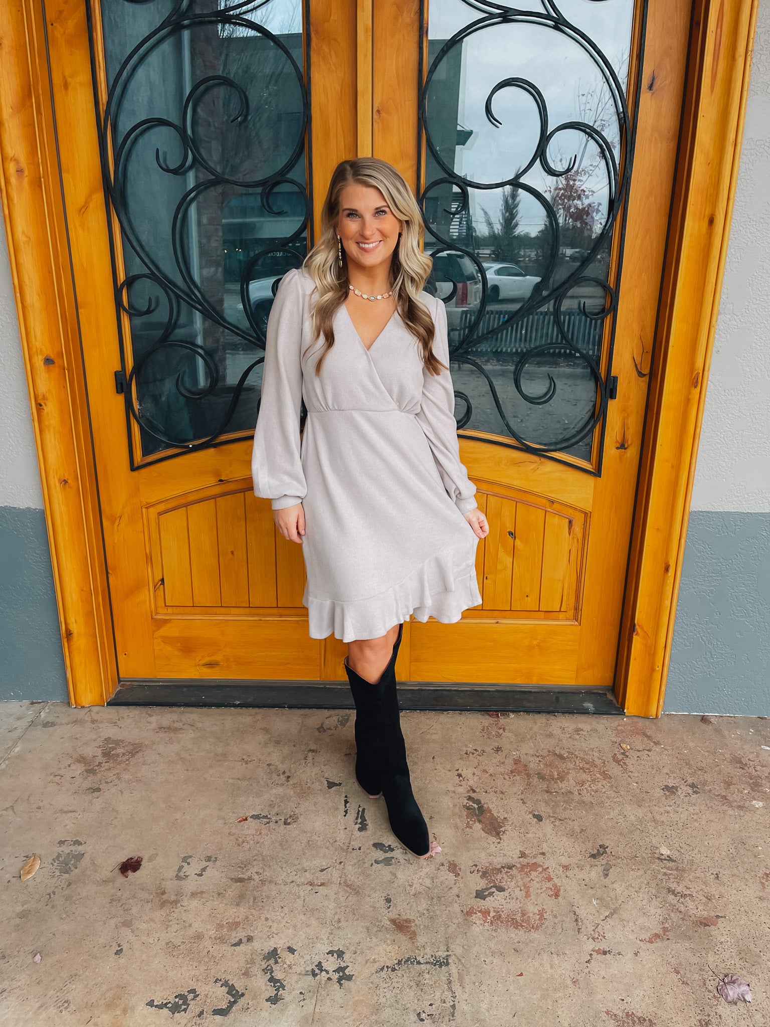 The In Due Time Mini Dress is the perfect blend of comfort and glamor. Its super light taupe hue and ruffle detail adds an understated sophistication to your look. Crafted from soft fabric, this mini dress is sure to keep you comfortable and stylish all day long!