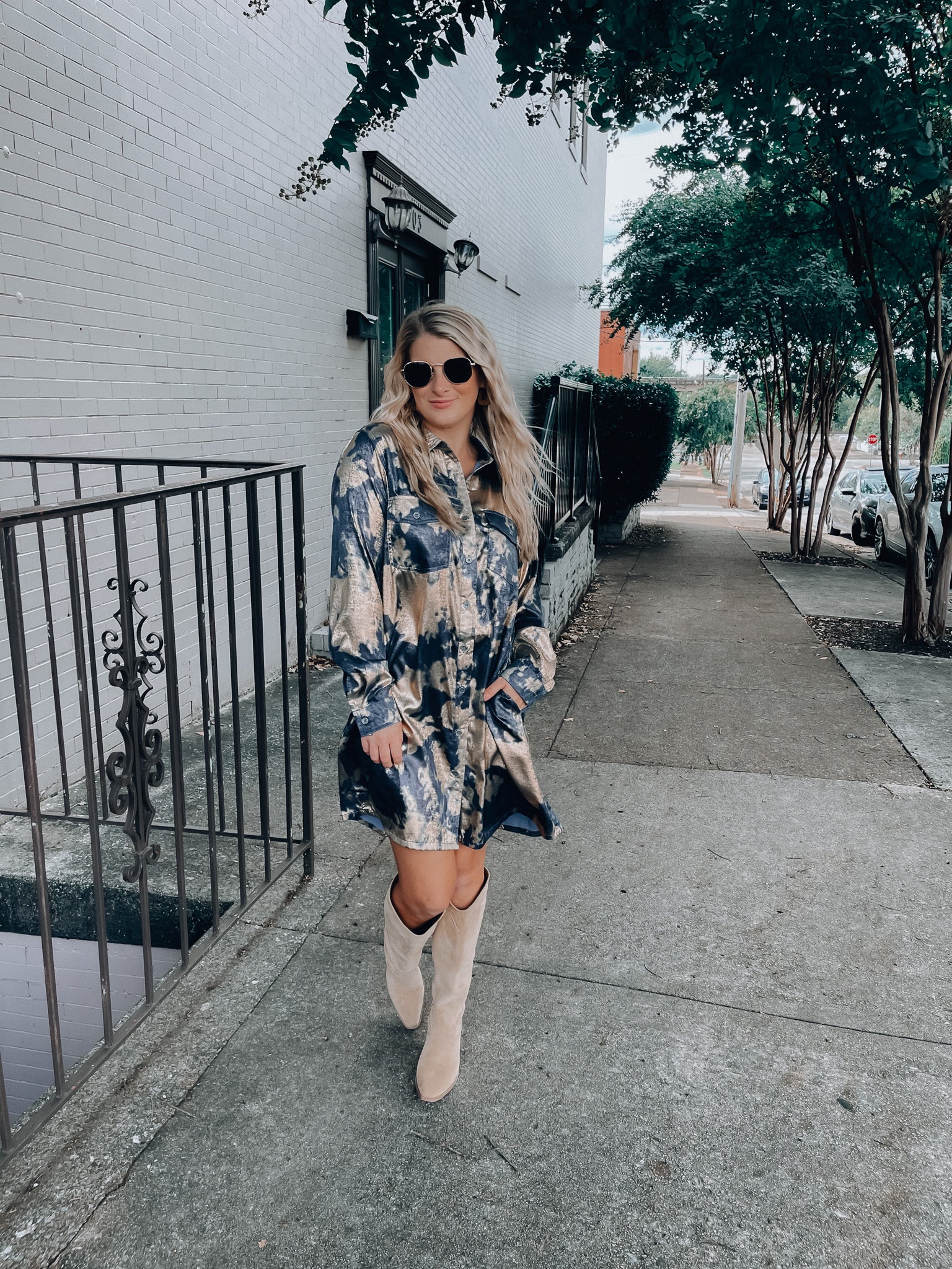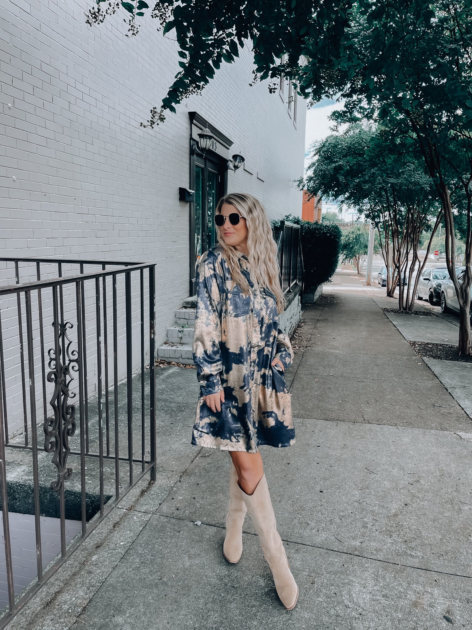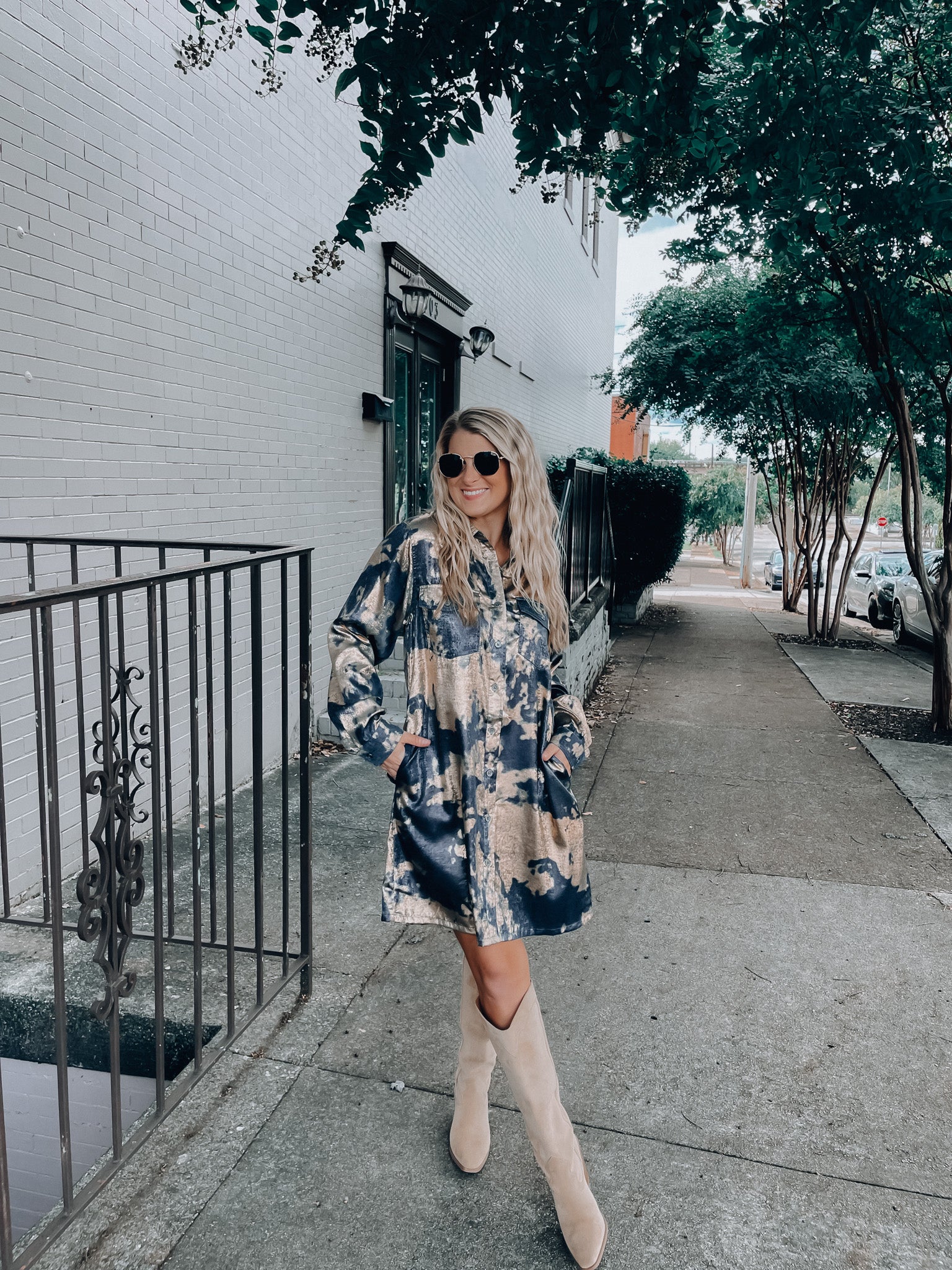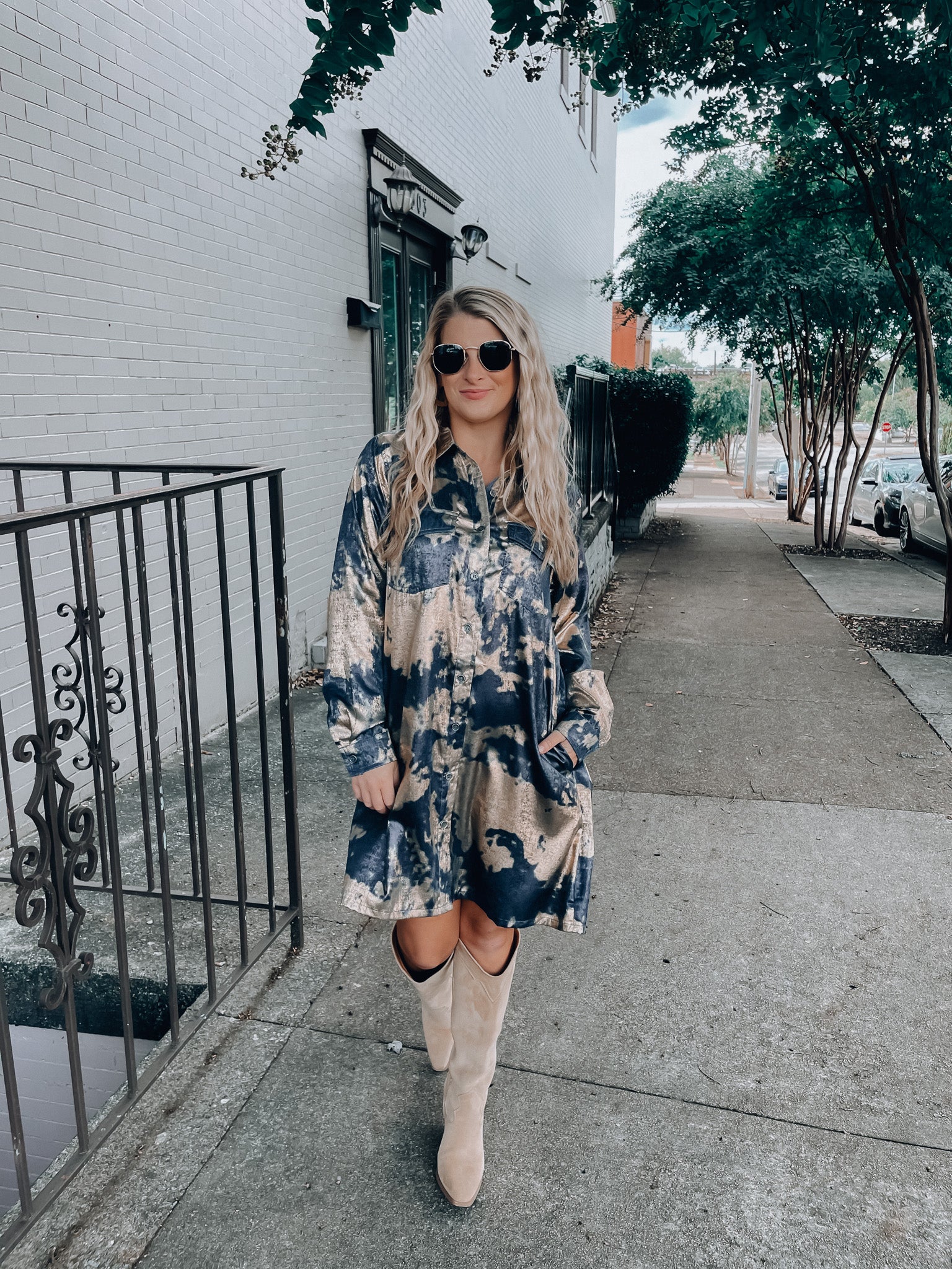 Elevate your style with the It's My Call Dress! This denim and gold colored dress features a stylish collar, convenient button down design, and practical pockets. Perfect for any occasion, add this dress to your wardrobe and exude confidence and sophistication.