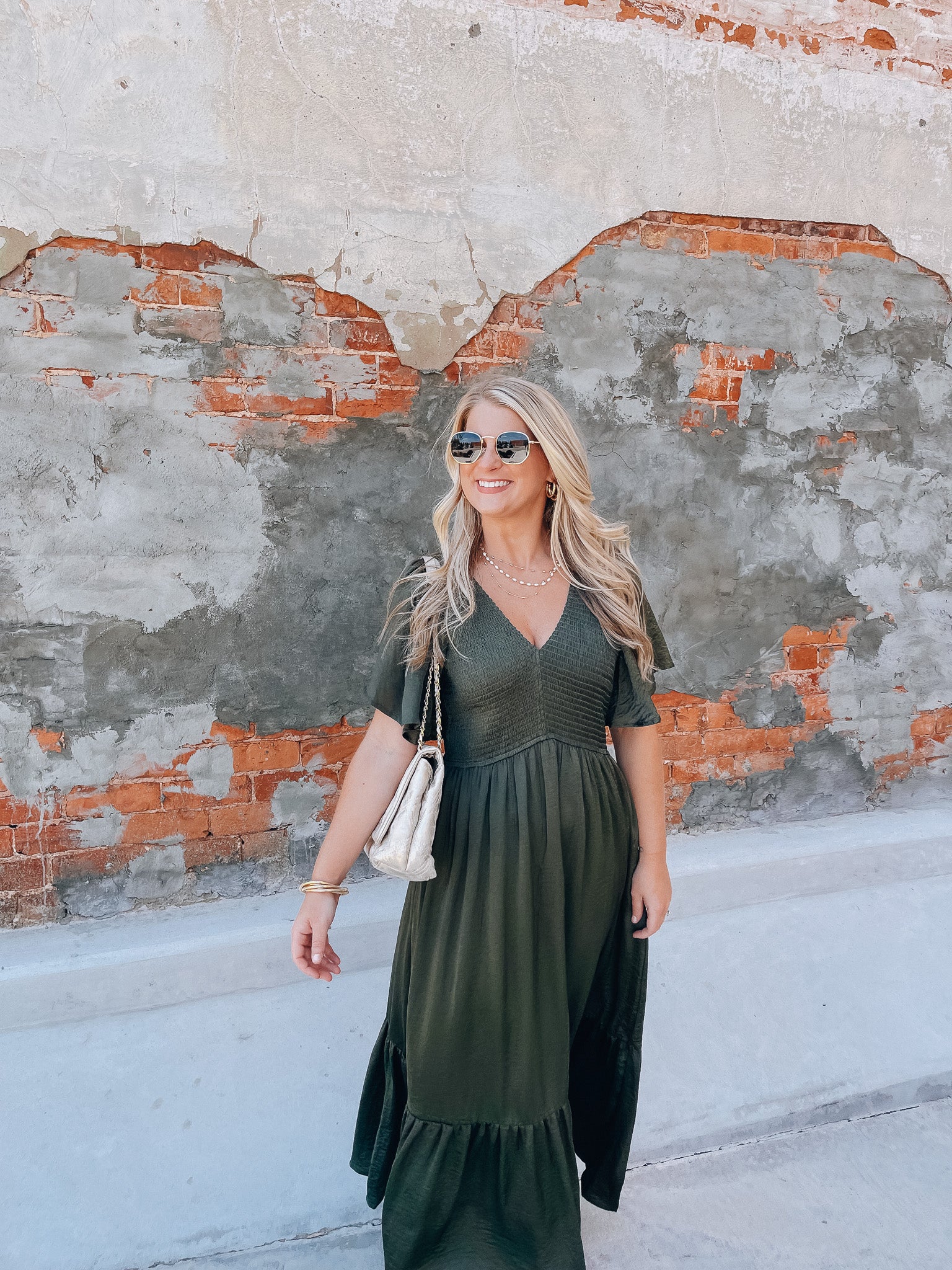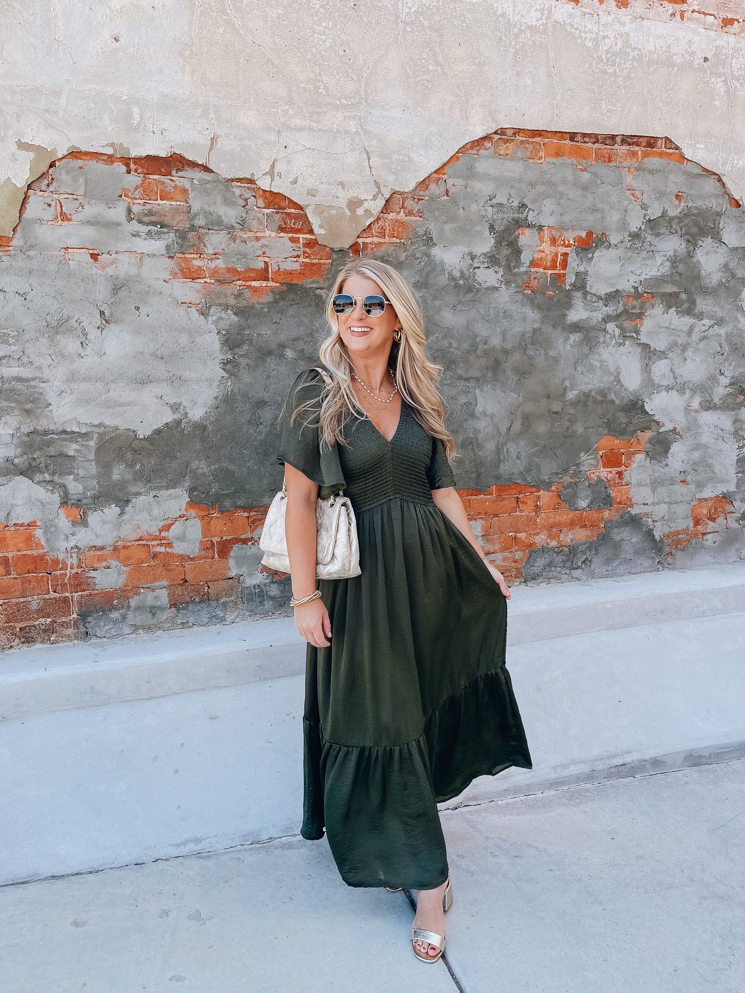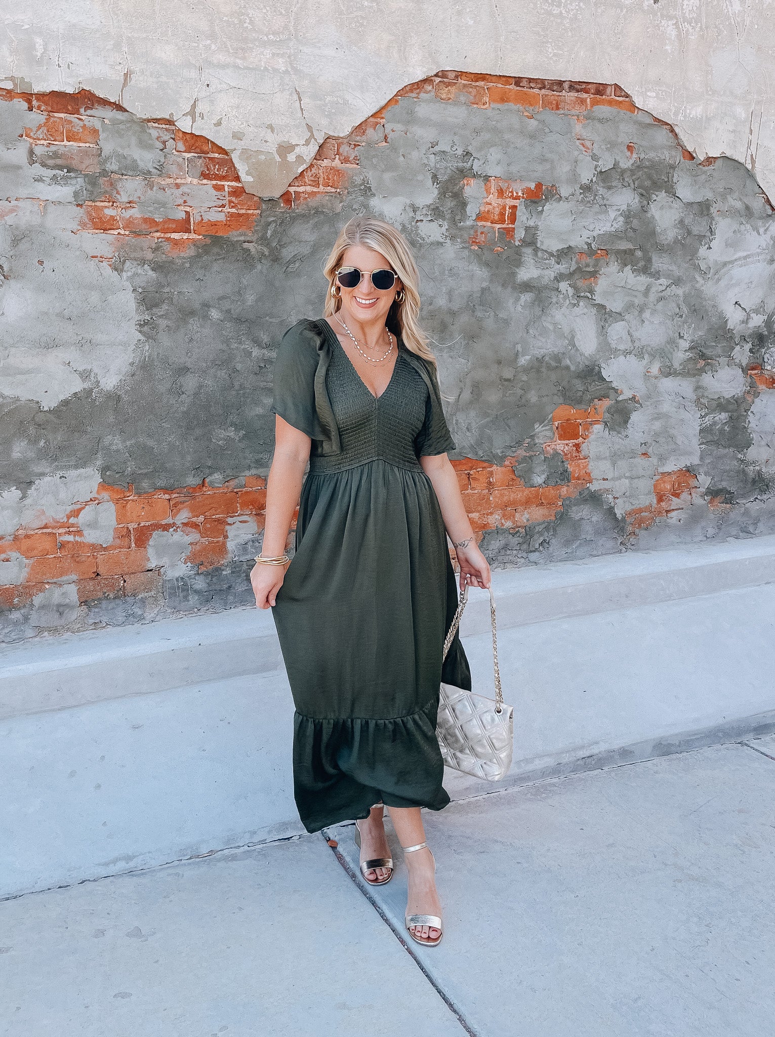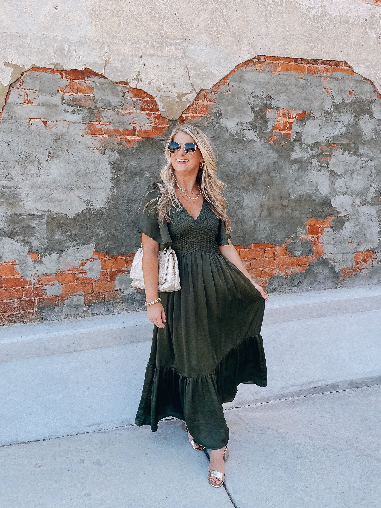 Experience ultimate comfort and style with our Lost In You Midi Dress. Made from luxurious washed satin, this olive dress features a smocked design and short flutter sleeves for a flattering fit. Perfect for any occasion, this midi dress will make you feel confident and chic.