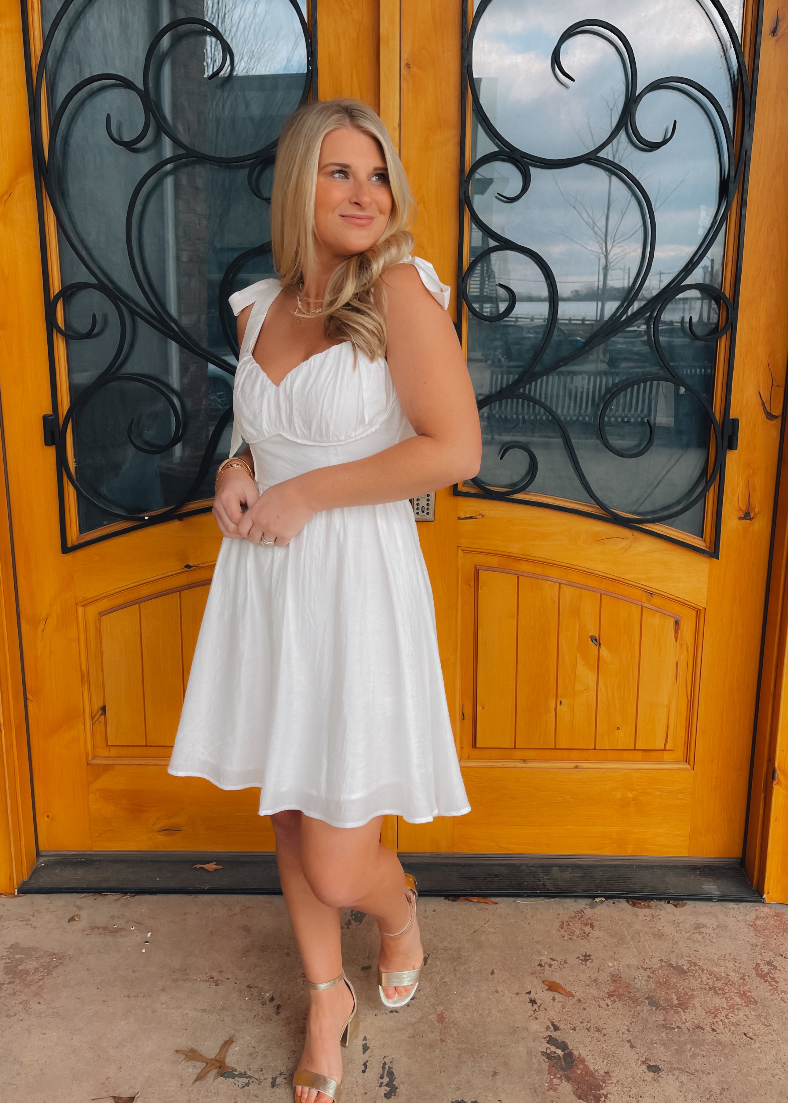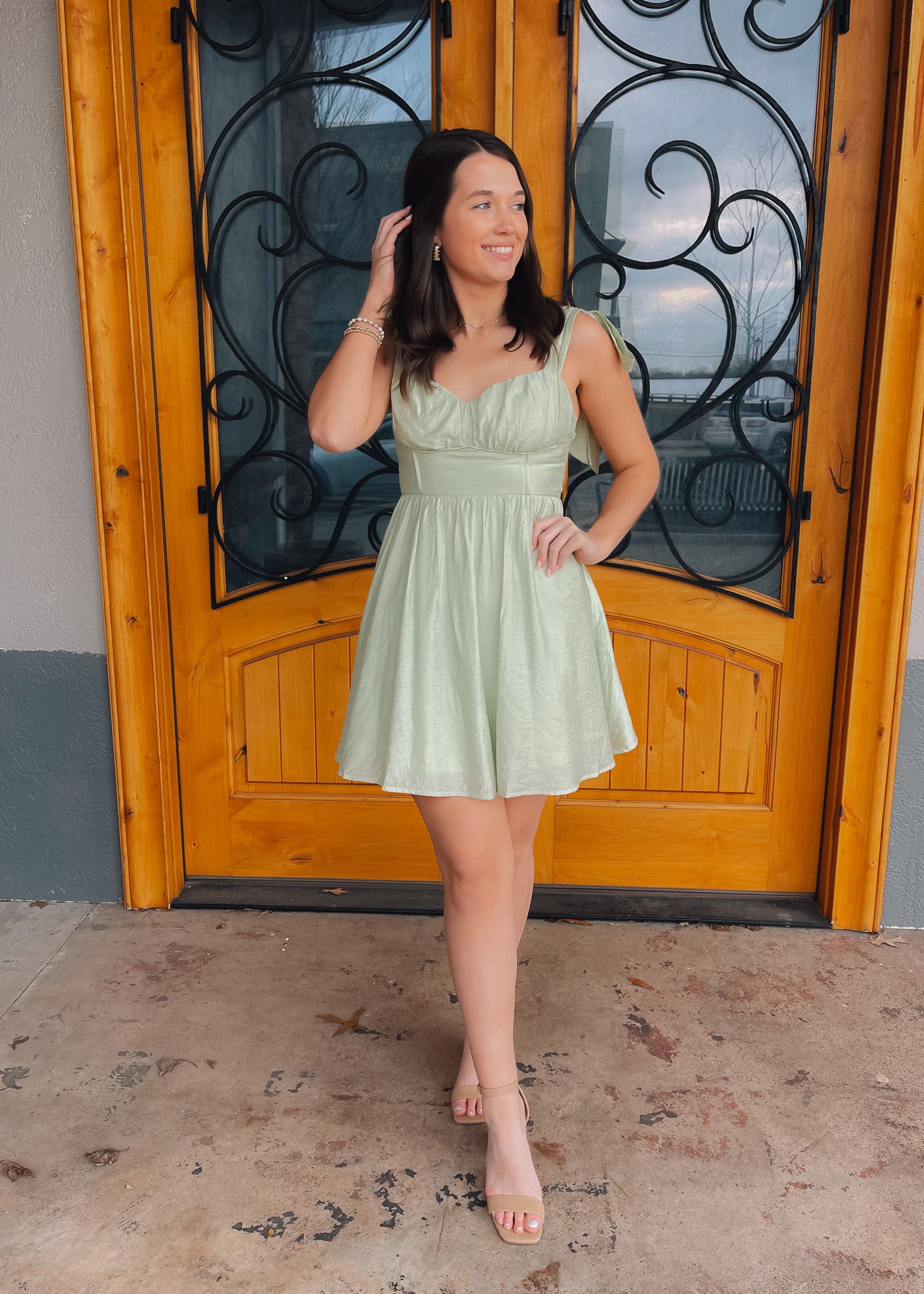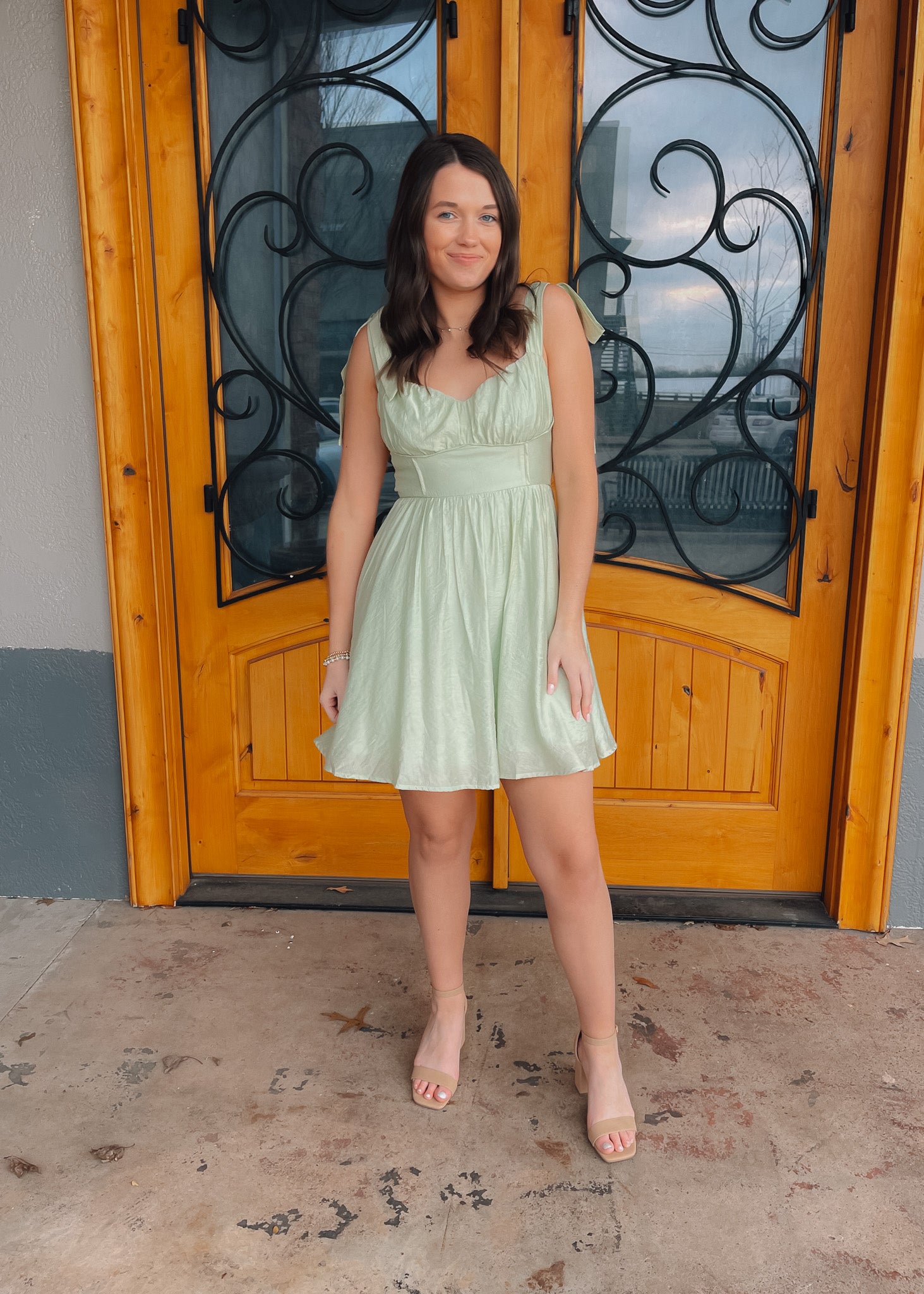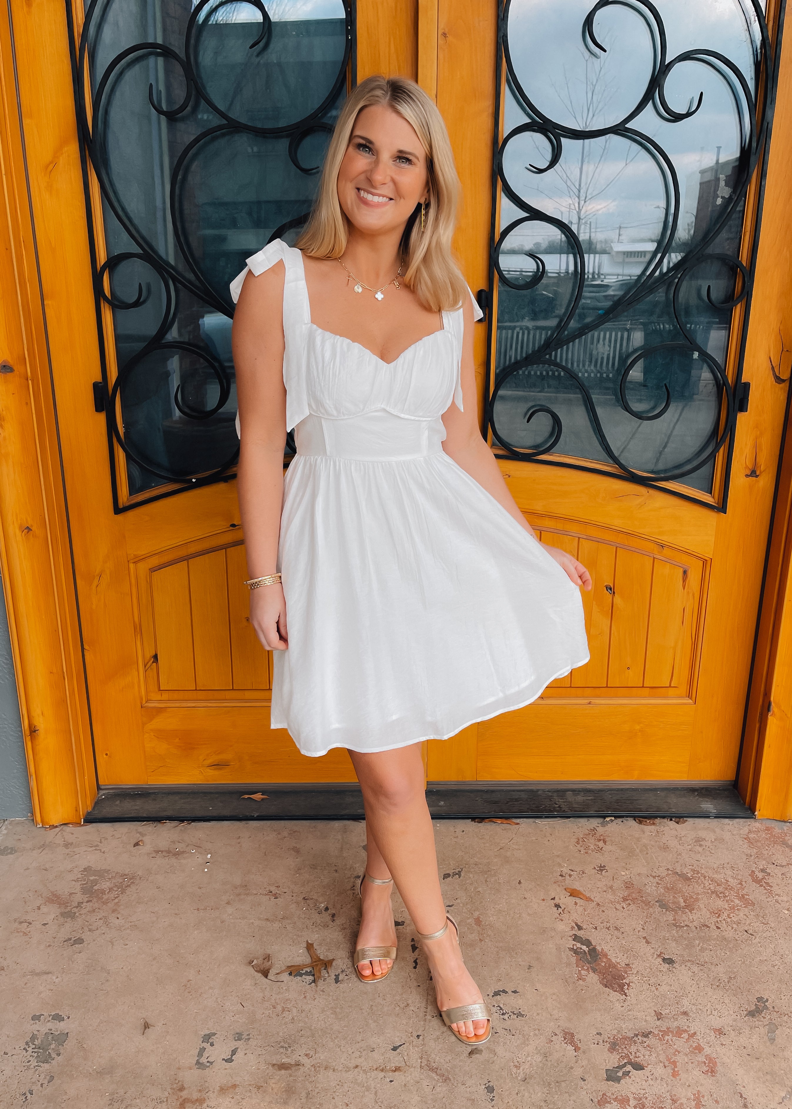 Elevate your style with our Making Promises dress, available in both light olive and white! This sleeveless mini dress features a delicate corset detail and tie strap, adding a touch of elegance to any occasion. Make a statement and turn heads with this must-have piece.