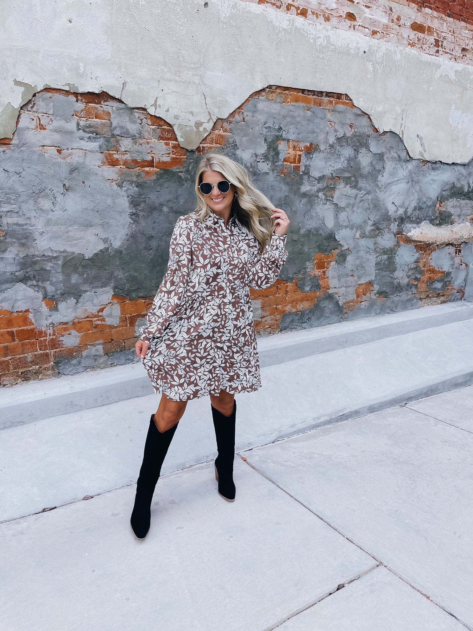 Elevate your wardrobe with the No Reason Not To Dress - a stunning floral print button front baby doll dress in mocha. Perfect for any occasion, this dress will flatter your figure and add a touch of elegance to your look. Embrace your femininity and feel confident with every step.