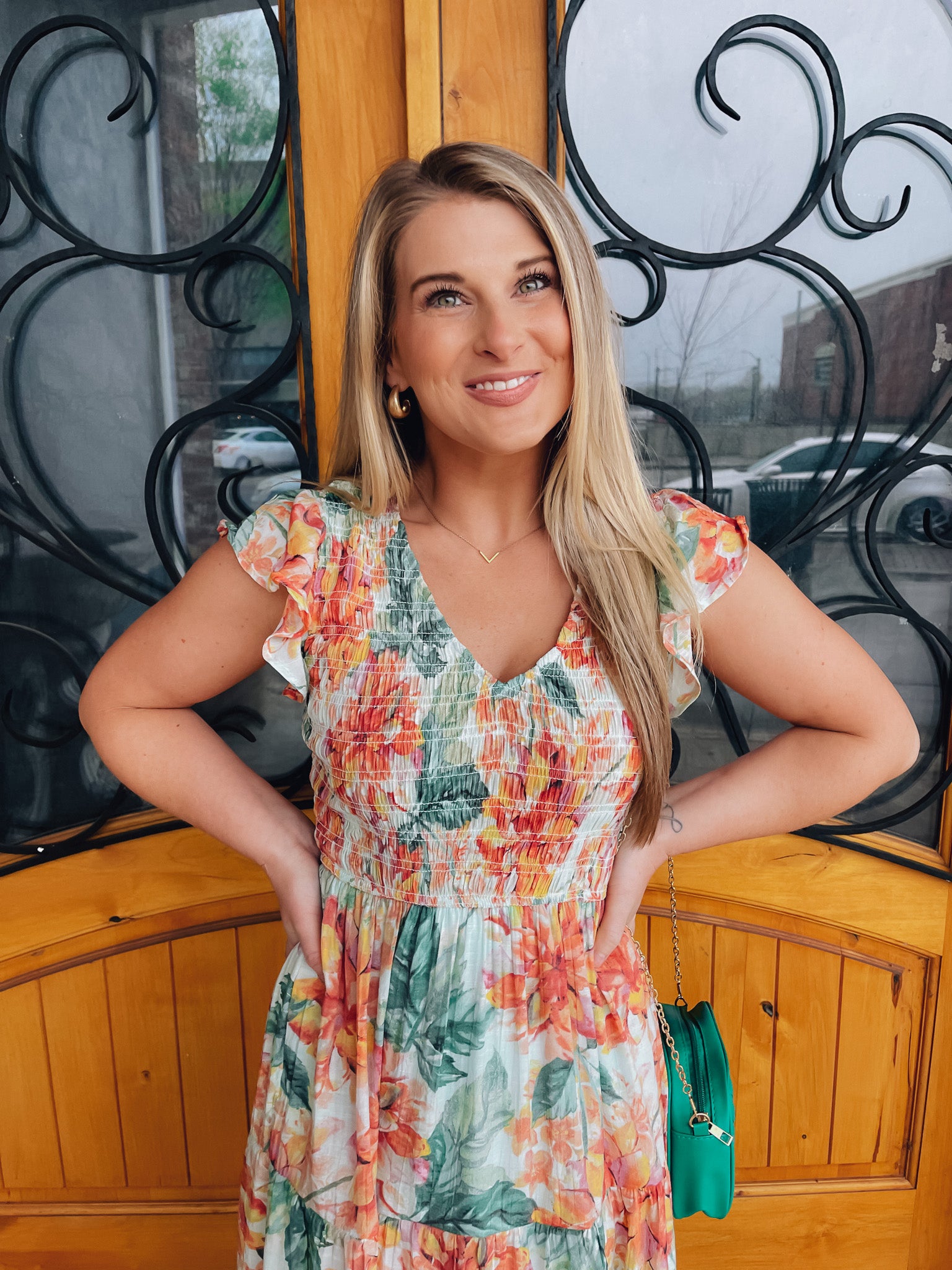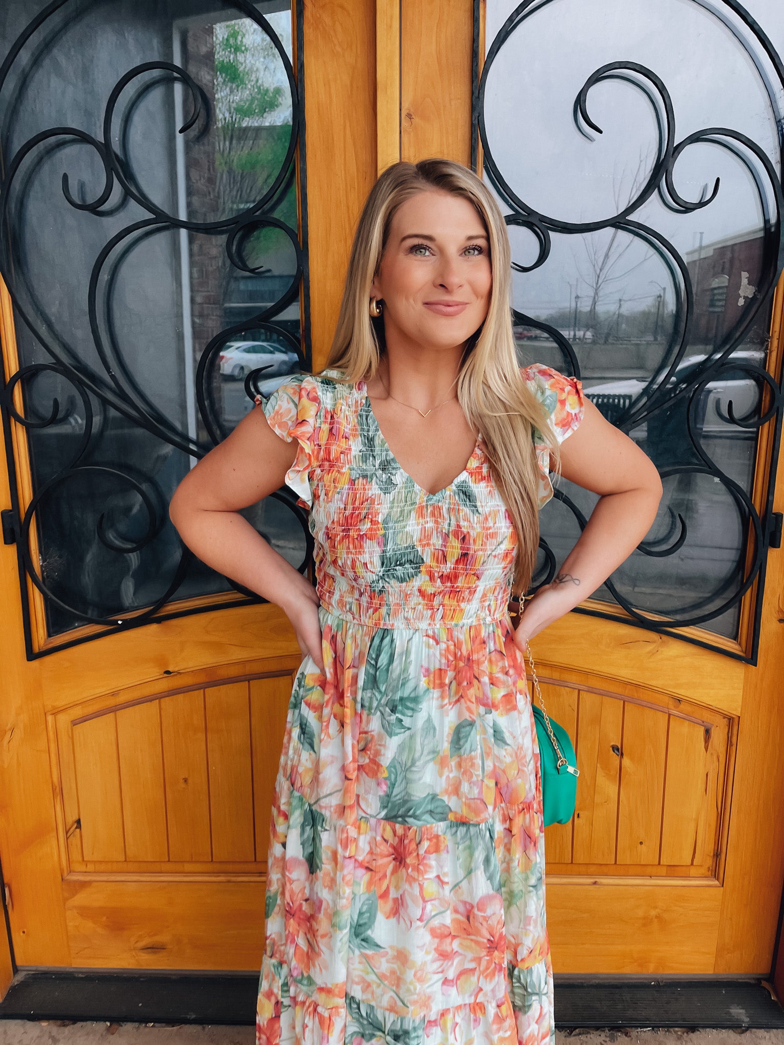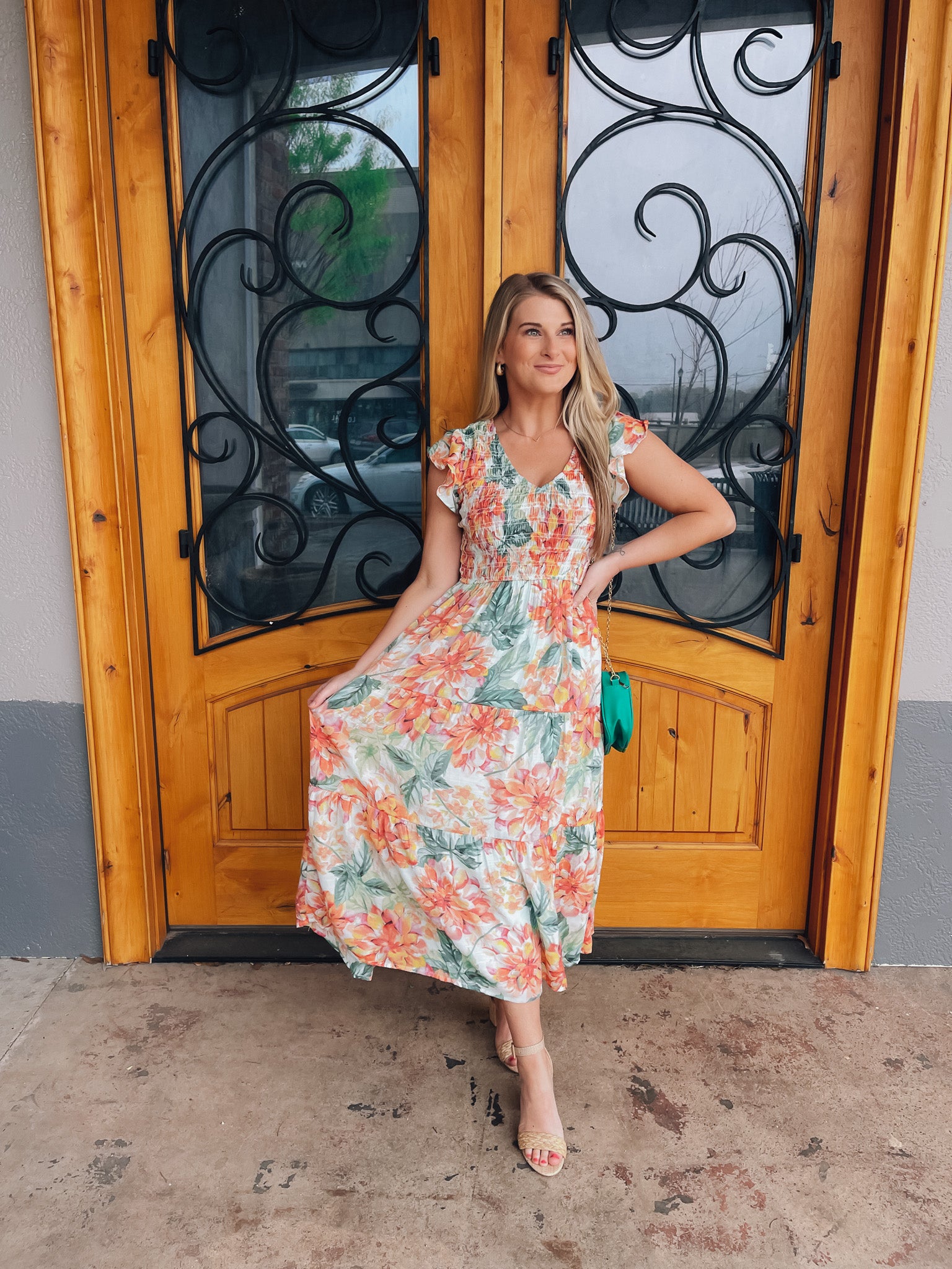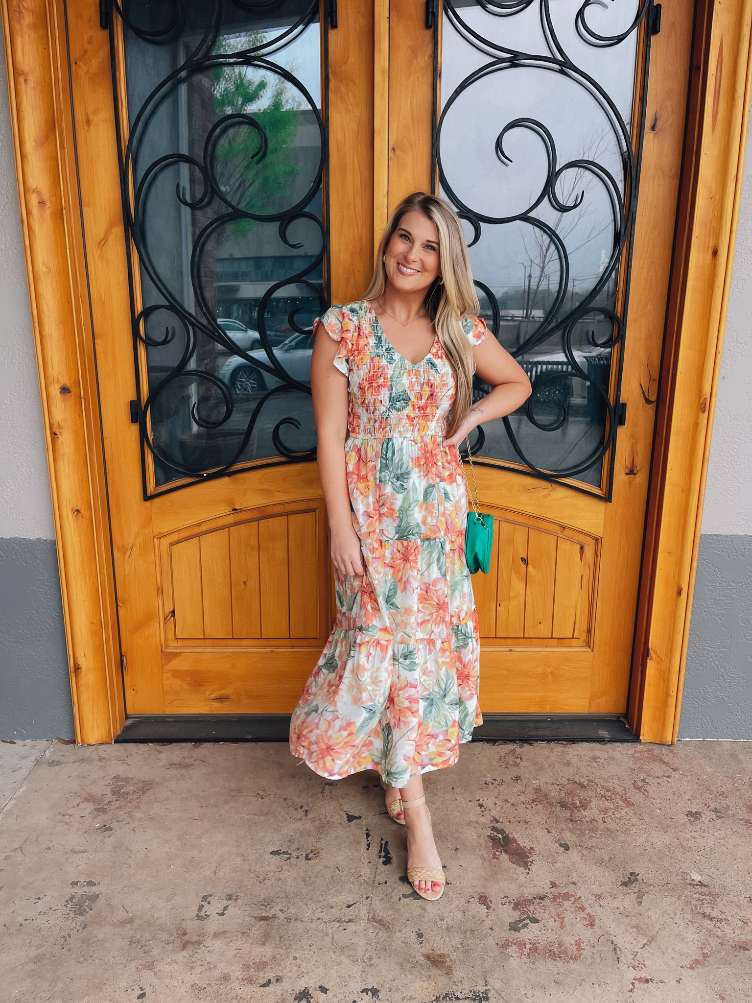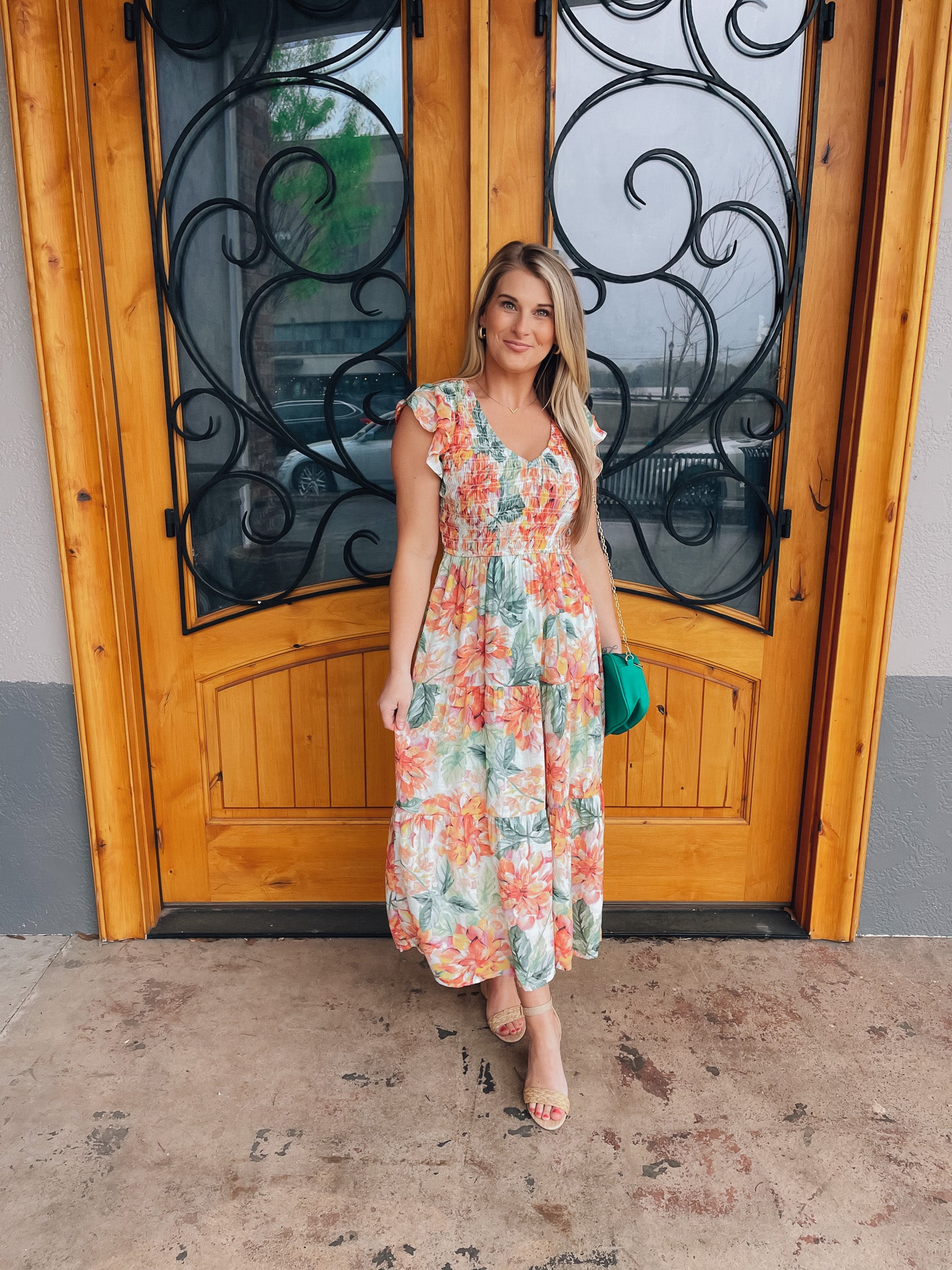 Indulge in the perfect springtime look with our Perfect Bouquet Midi Dress. The smocked v neck and beautiful floral print with mint background make this midi dress a must-have for any occasion. Embrace the feminine and elegant feel of this dress and turn heads wherever you go!