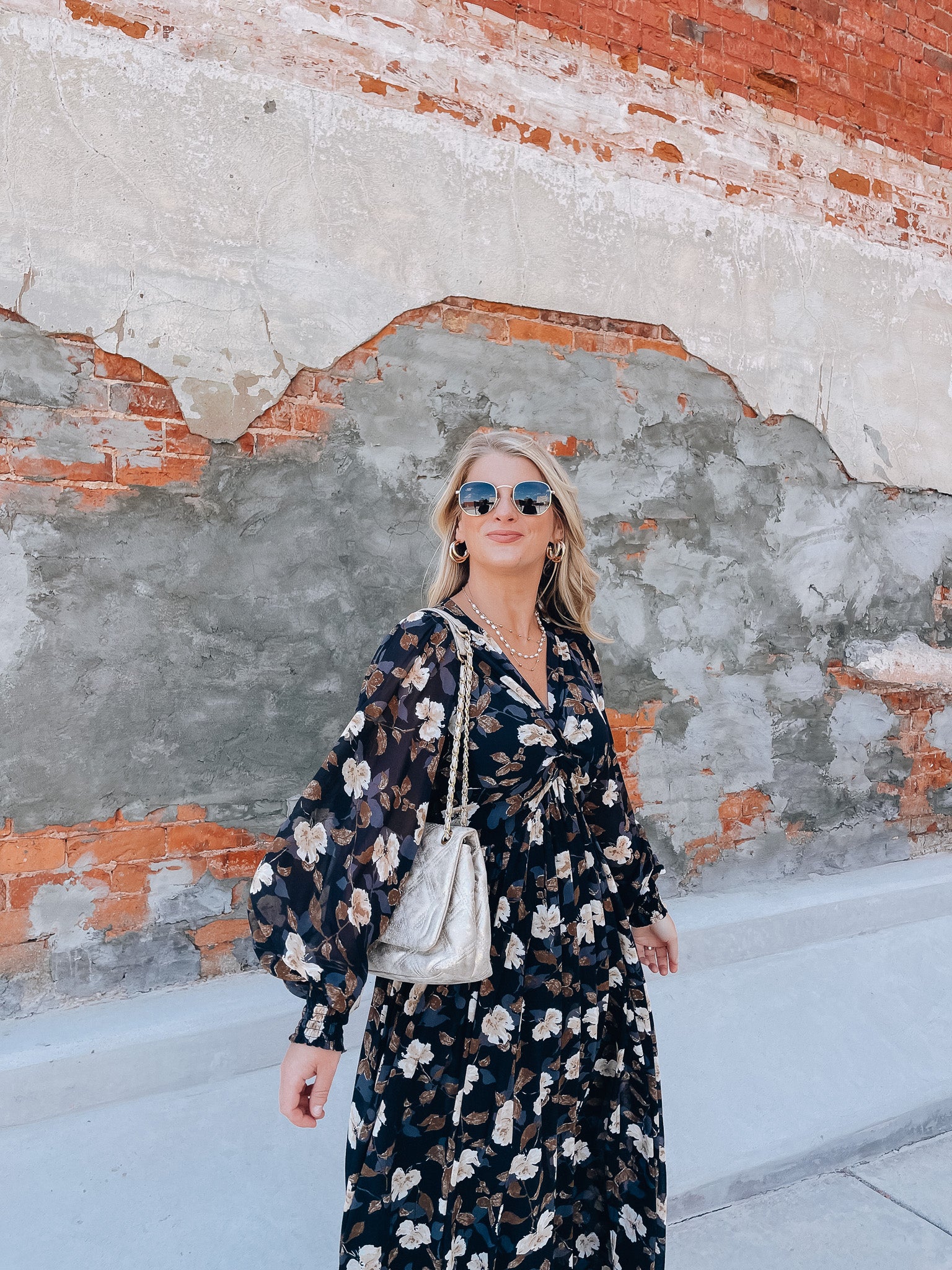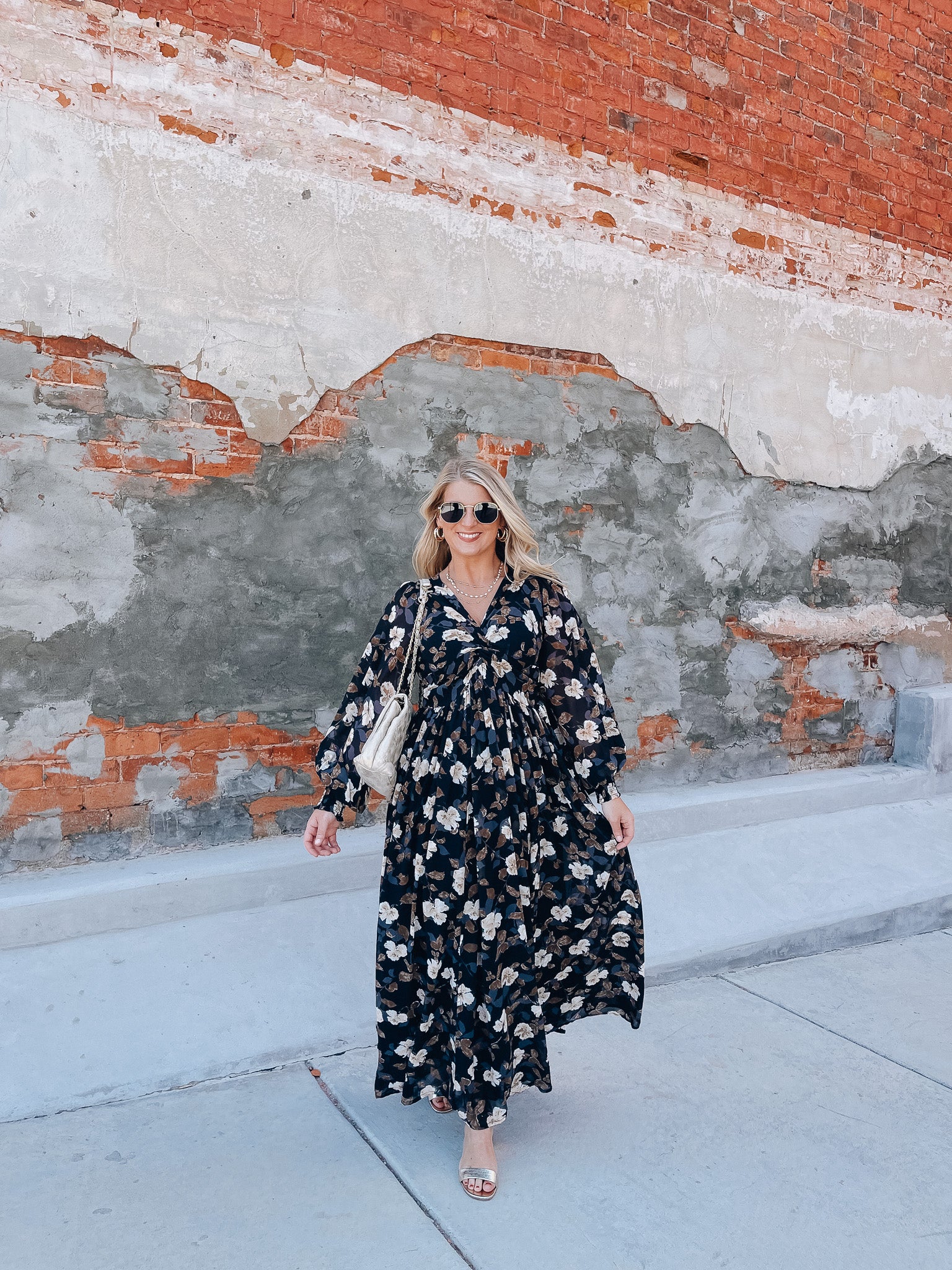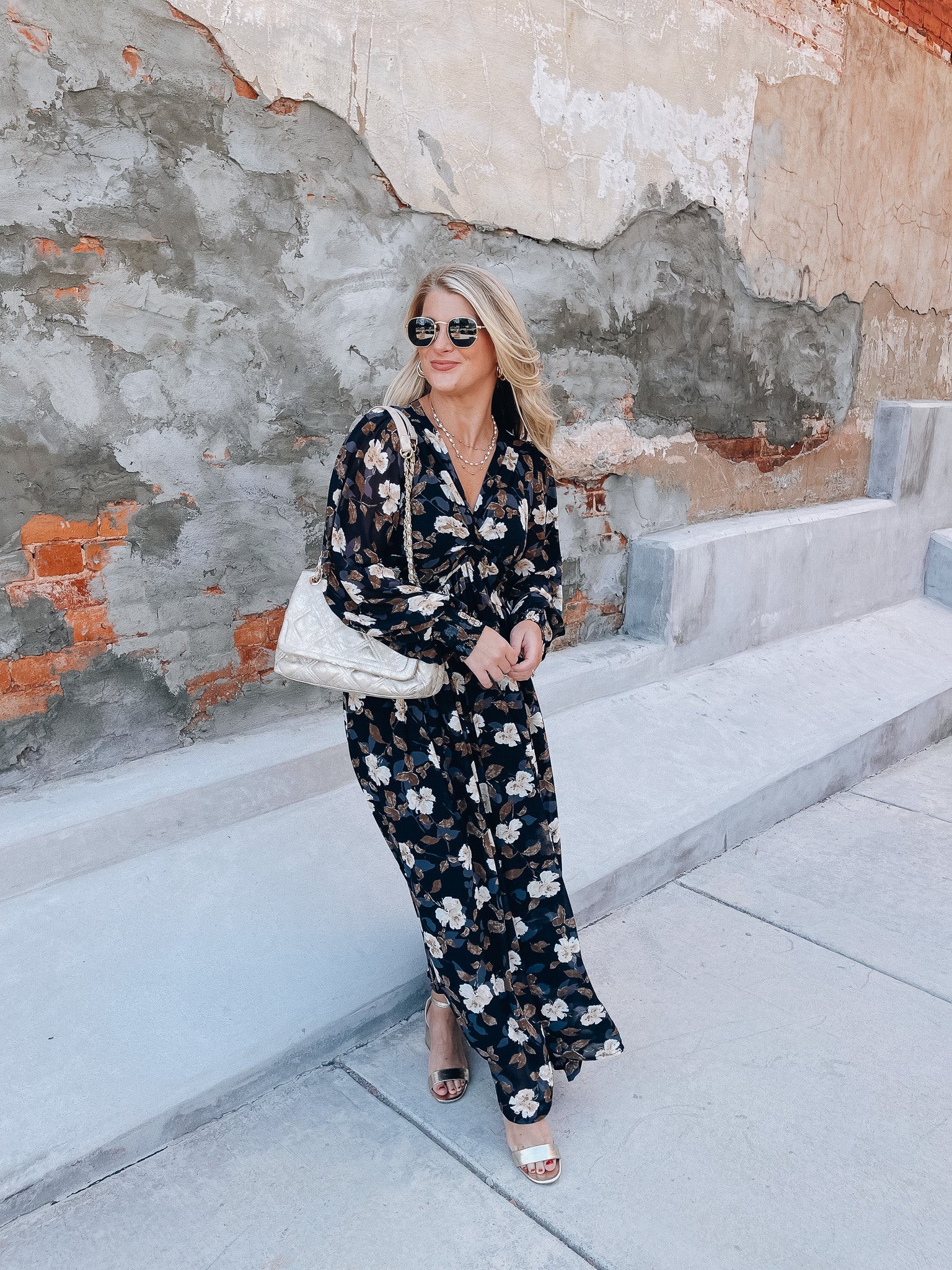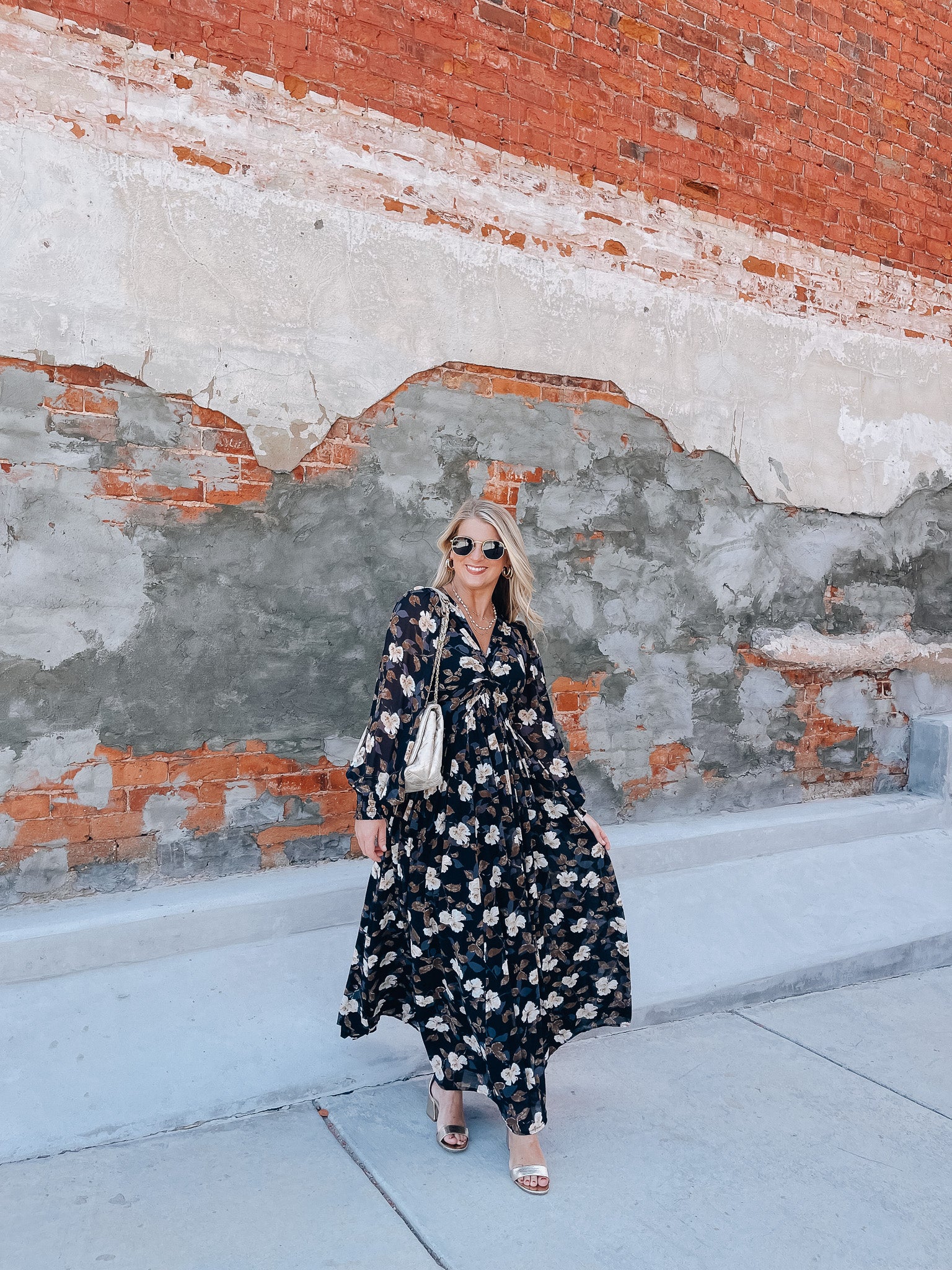 Fall in love with our Searching For Love Maxi Dress! This stunning black floral dress features a flattering twist wrap design and a smocked waistband for the perfect fit. With long sleeves and a beautiful mix of creams, taupes, and navy hues, this maxi dress is a must-have for any special occasion. Make a statement and turn heads in this gorgeous floral dress!
