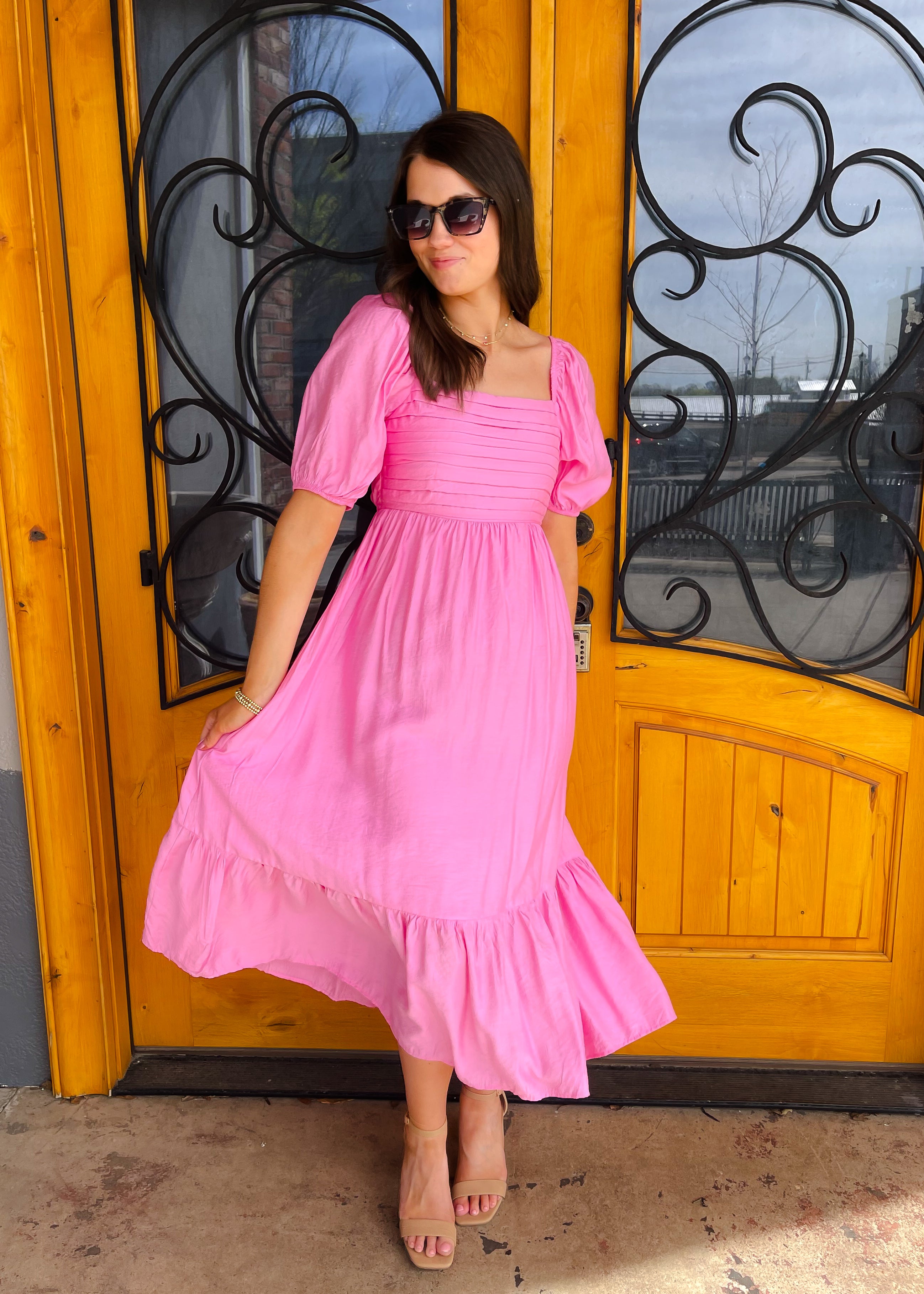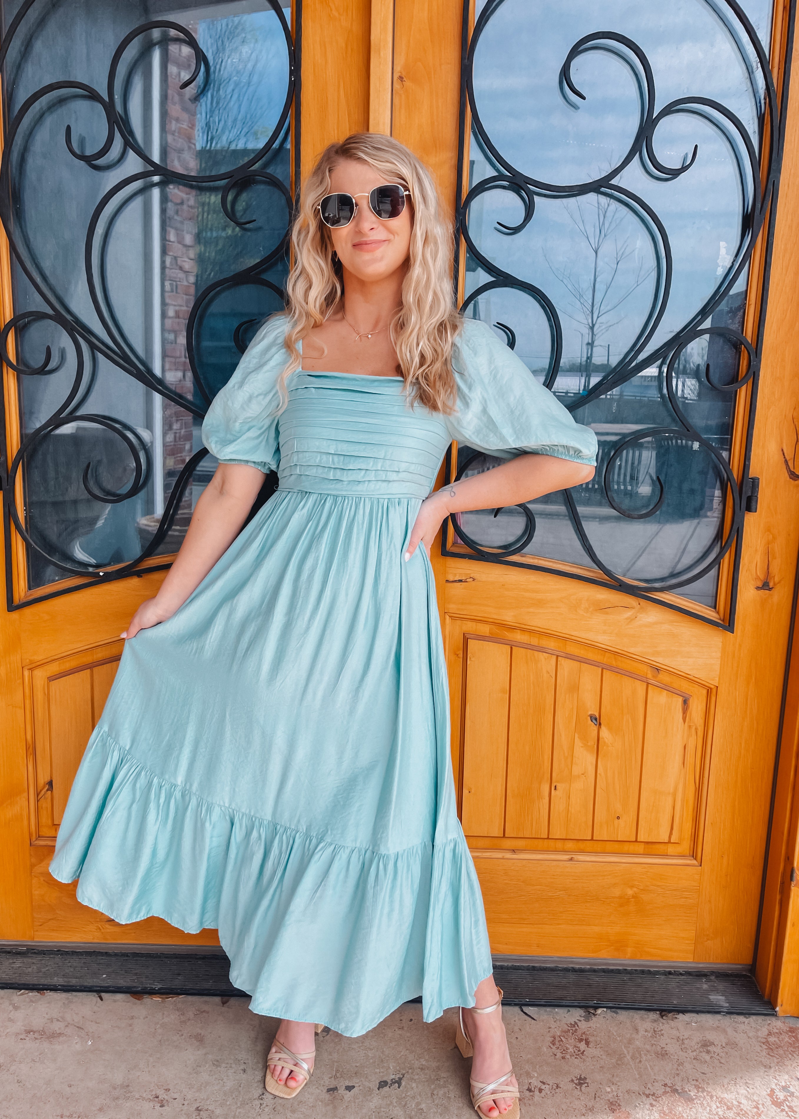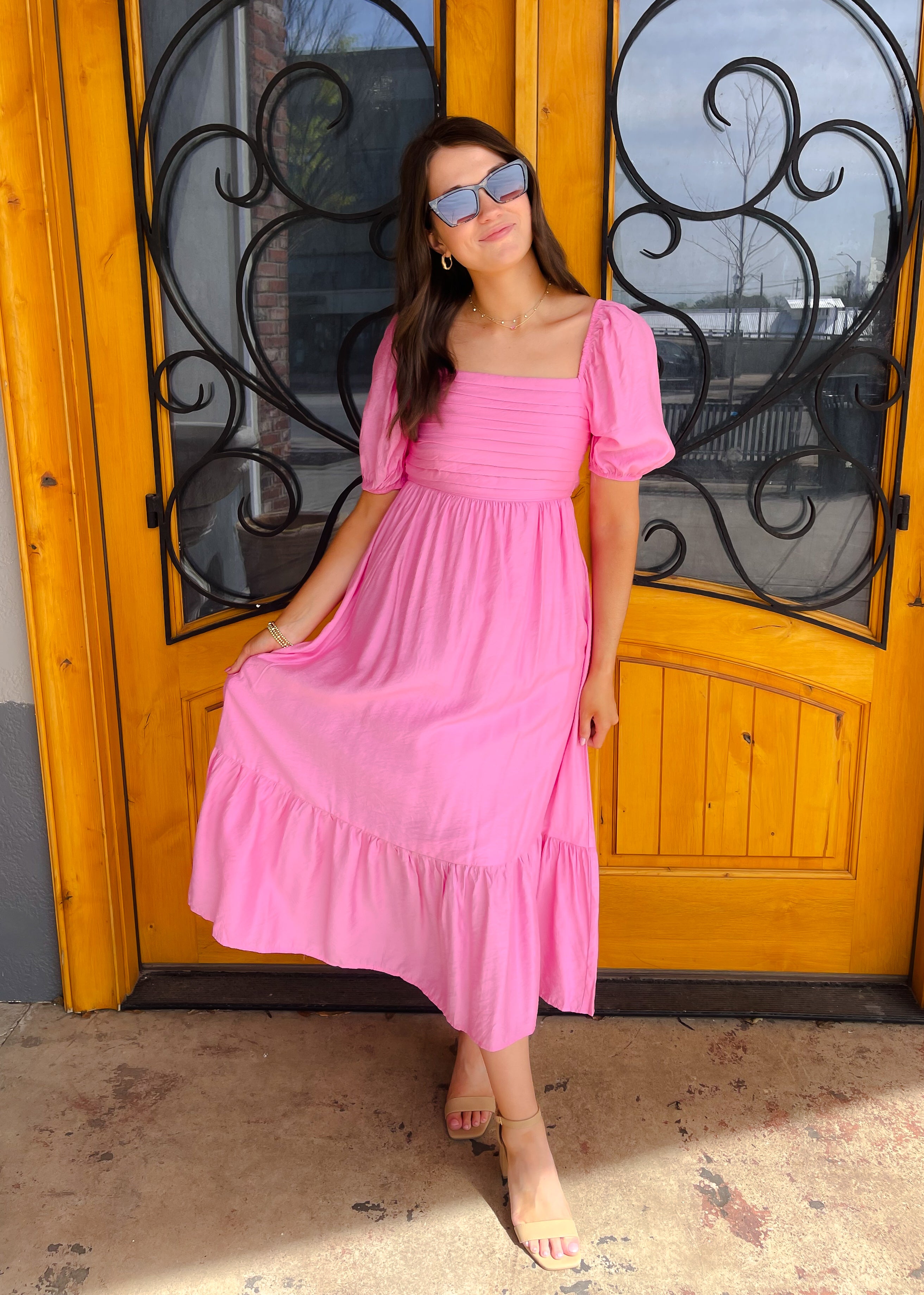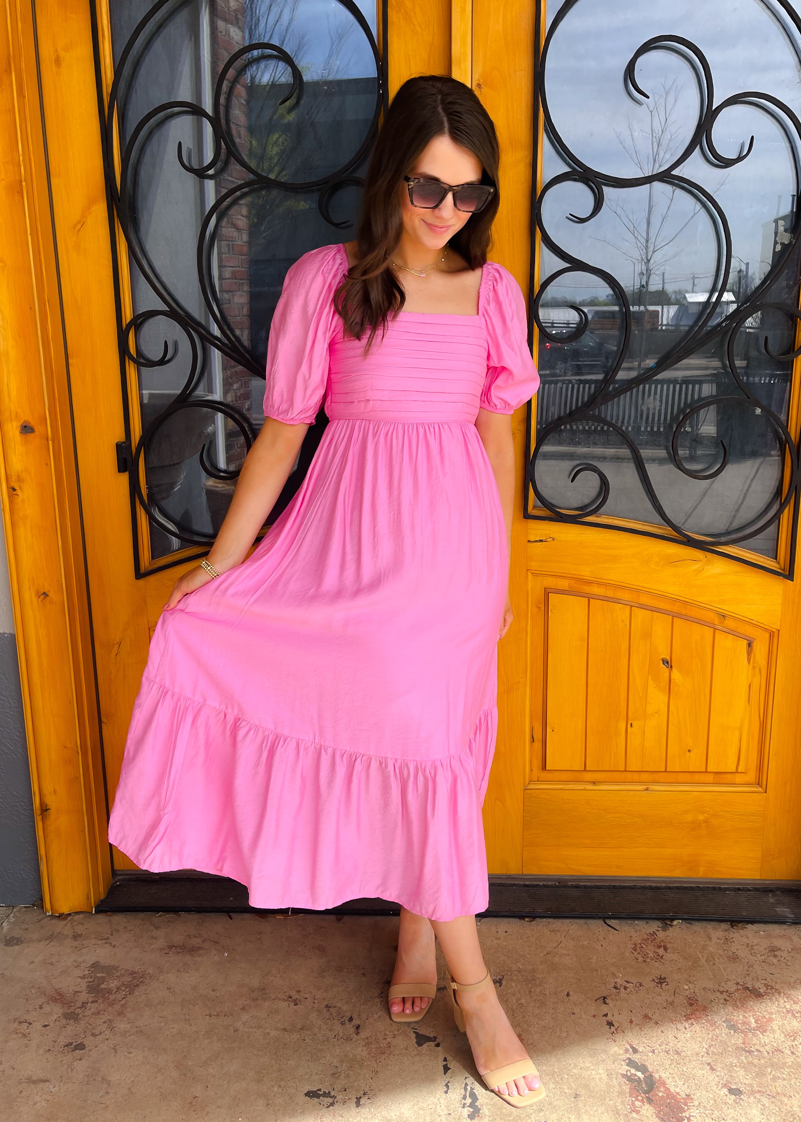 Be the only reason for all eyes on you in The Only Reason Midi Dress. With its mint and pink pleated empire waist, puff sleeves, and playful midi length, this dress is the perfect mix of flirty and stylish. So go ahead, make a statement and let this dress do the talking (and flirting!) for you!