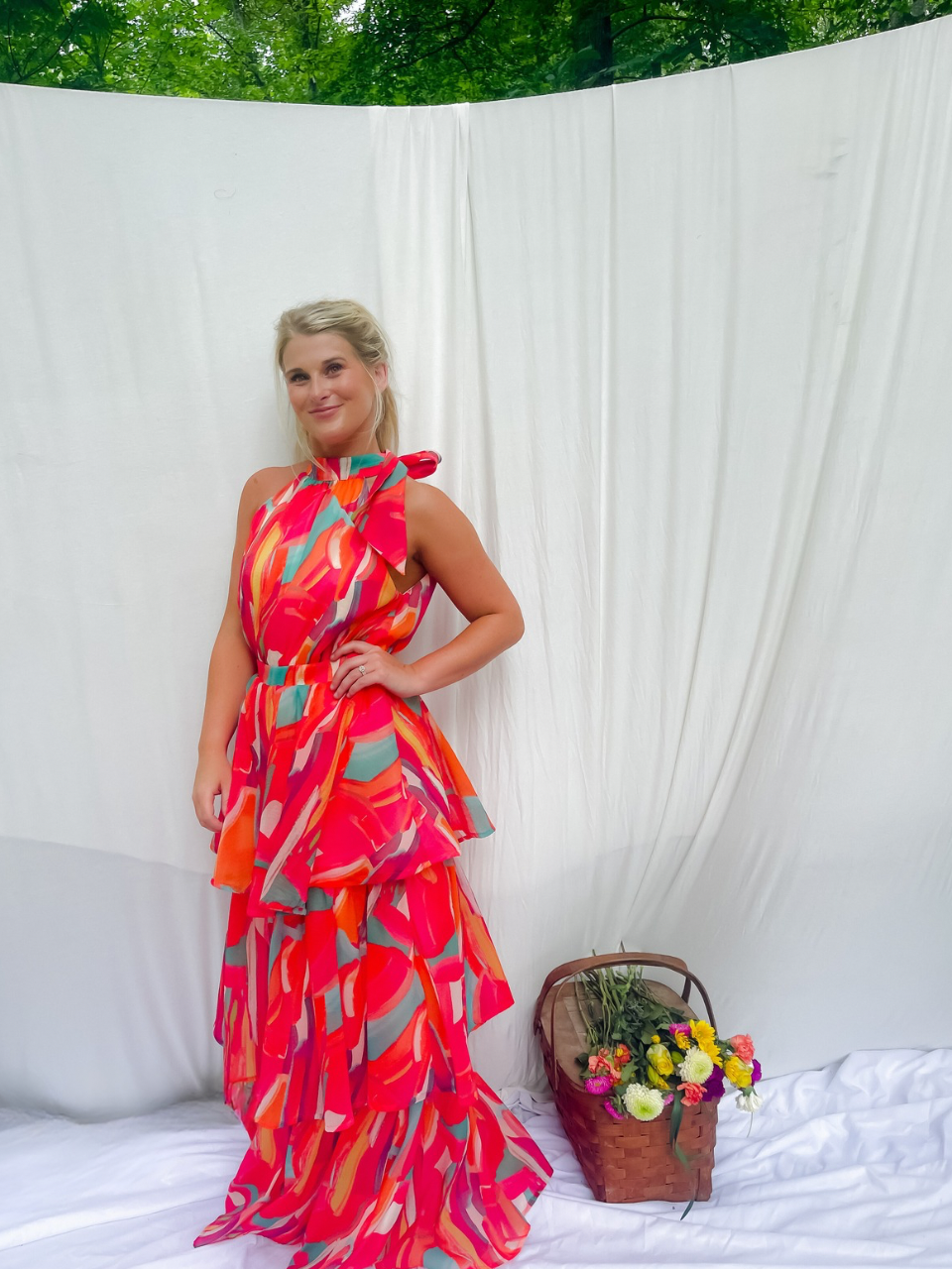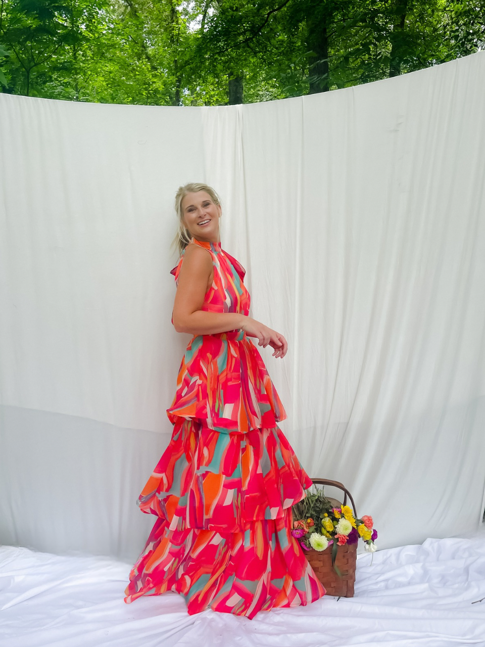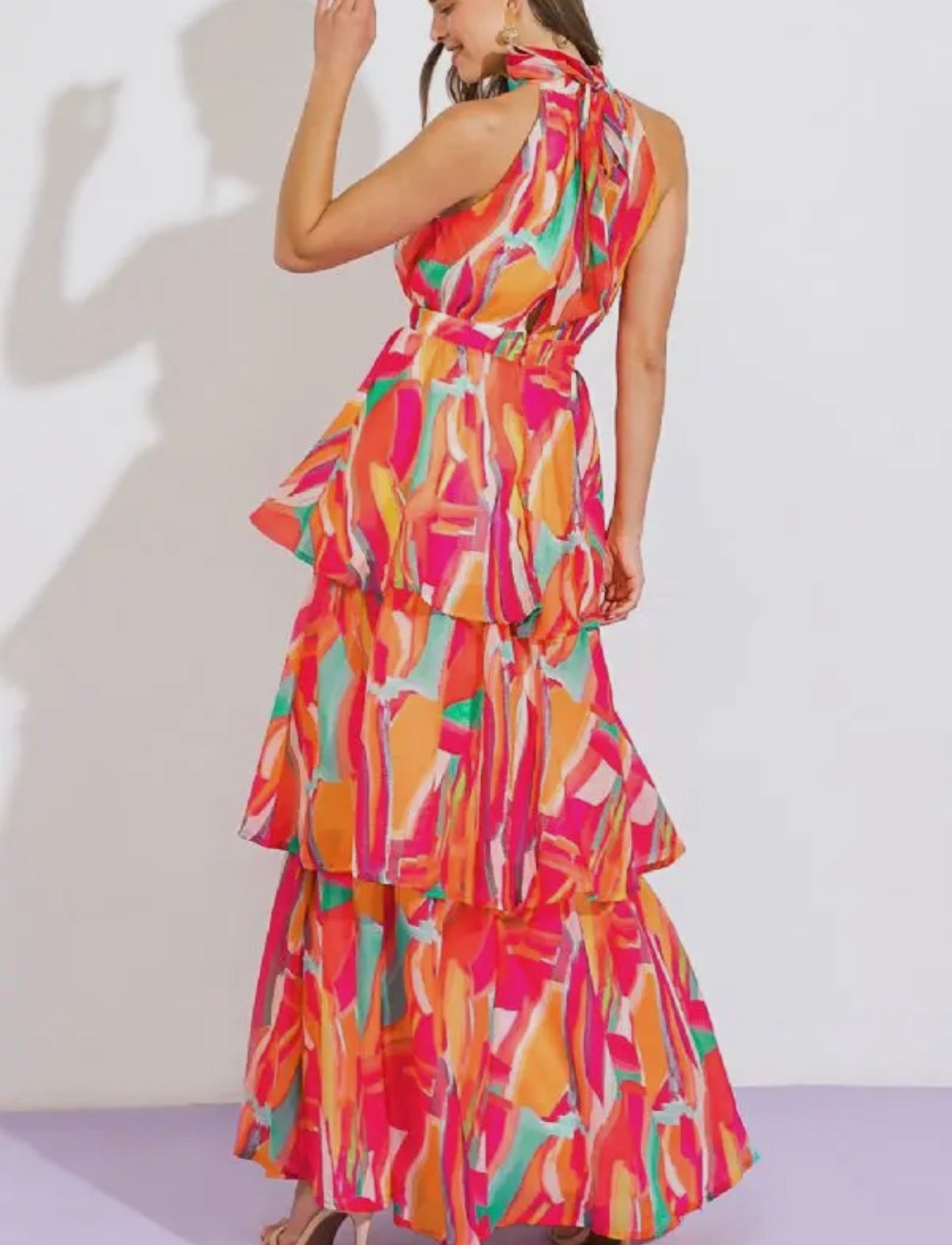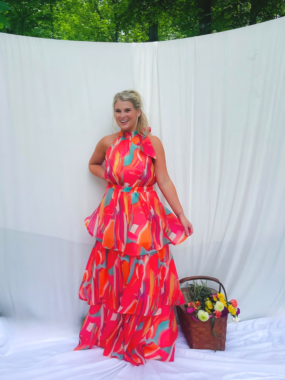 Embrace your inner goddess in our What Dreams Are Made Of Dress! This printed woven maxi dress features a stunning high tie neck and tiered ruffle detail that will make you feel like you're walking on a dream. Perfect for any special occasion, this dress will leave you feeling elegant and confident.