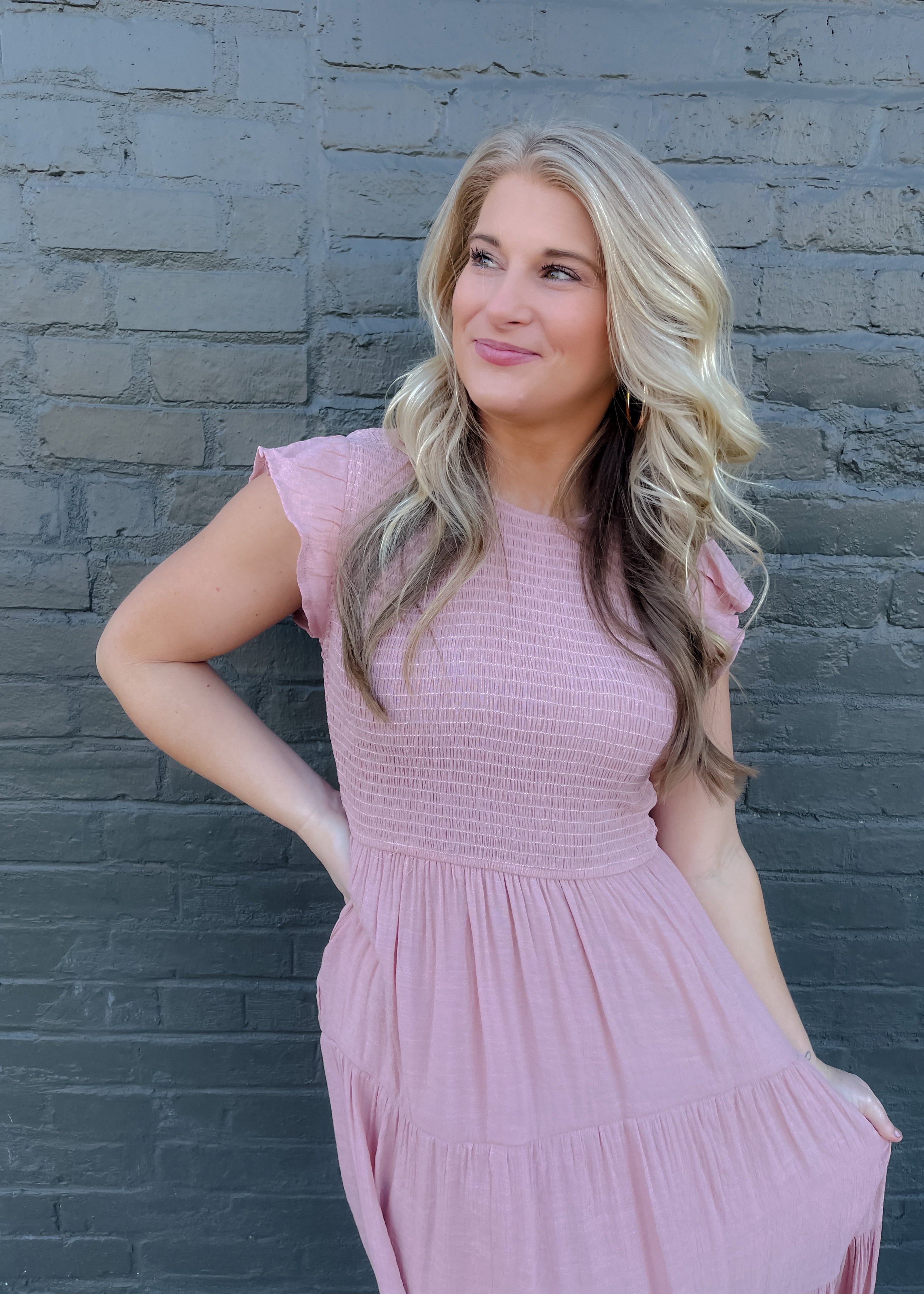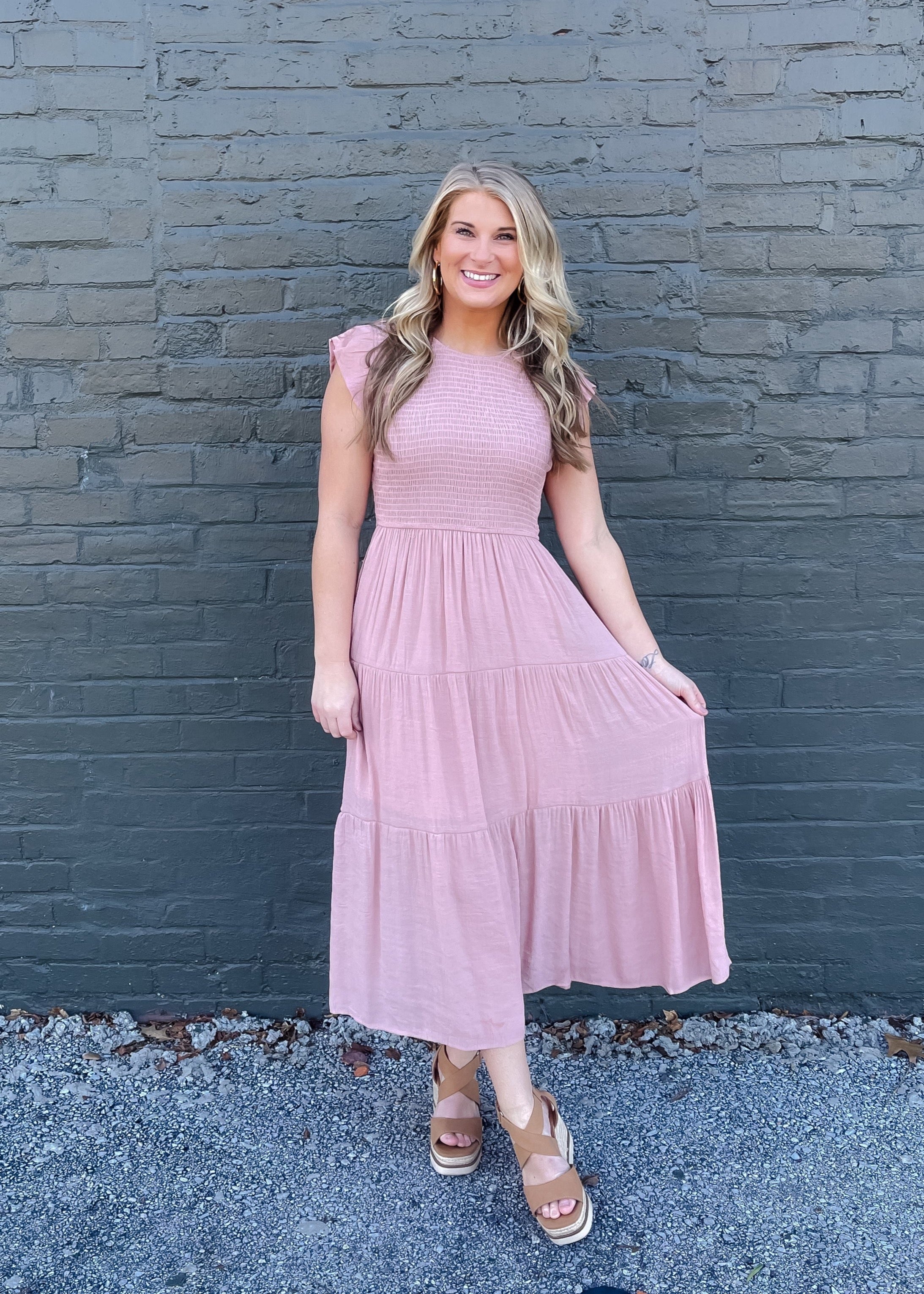 Covered In Love Blush Smocked Midi Dress (S-3XL)