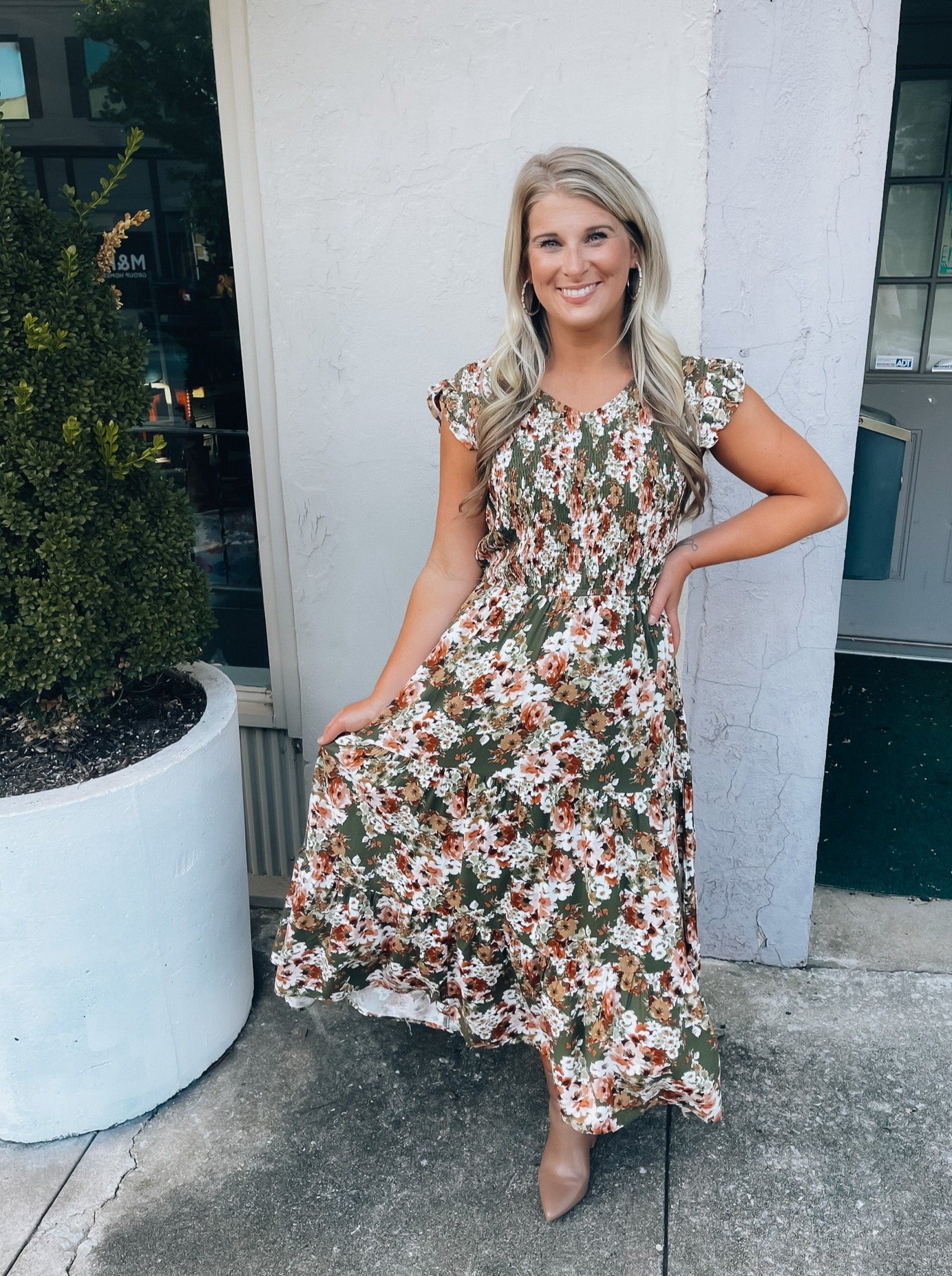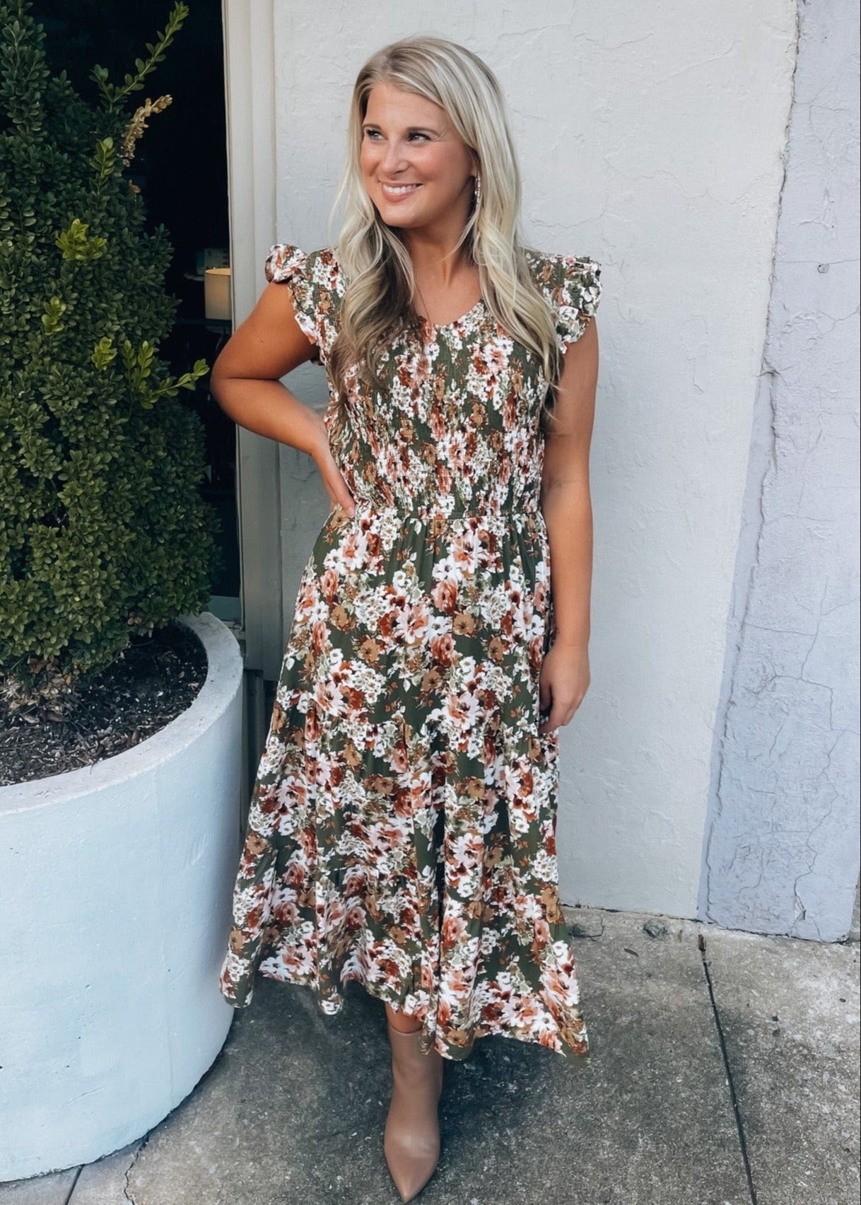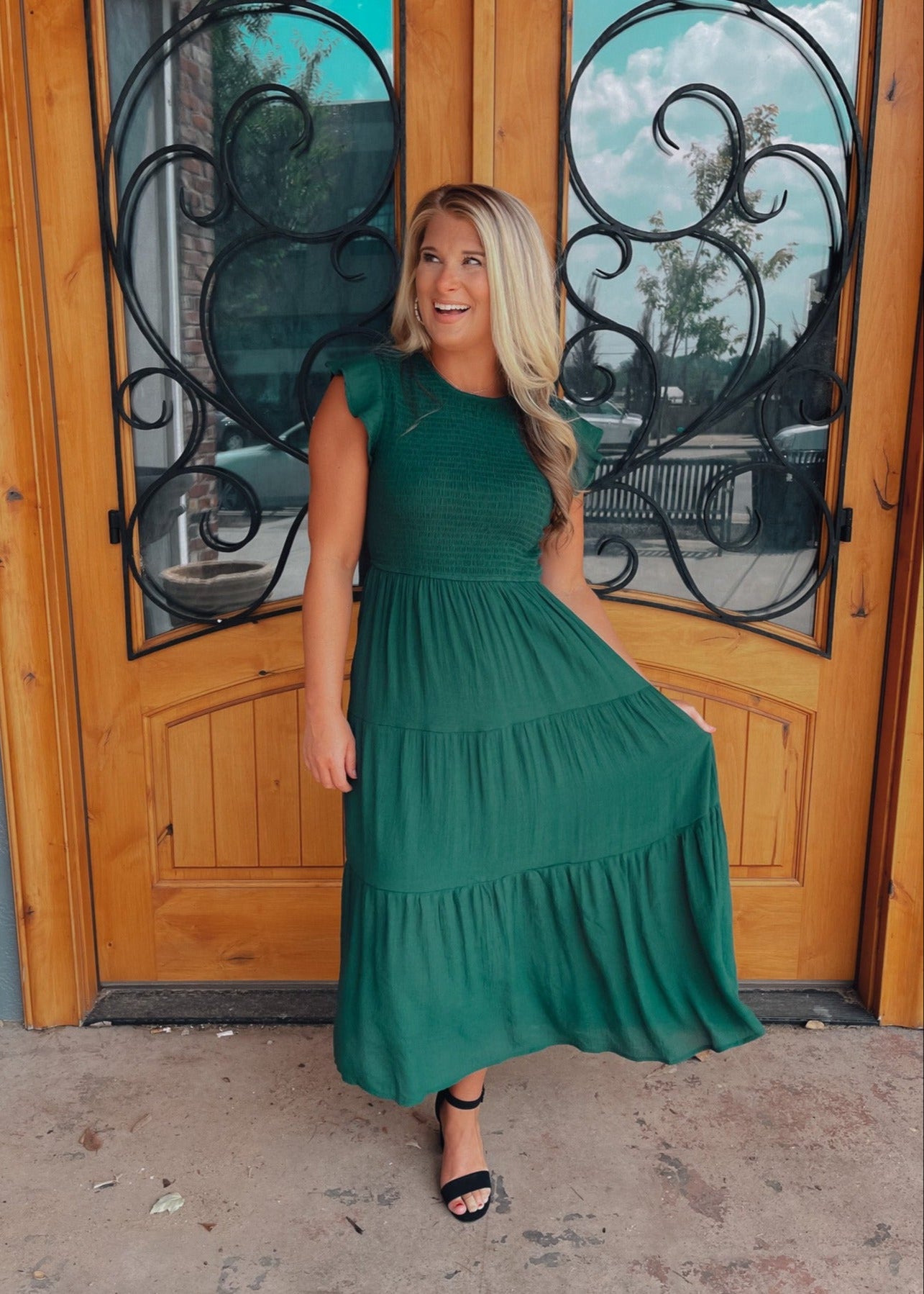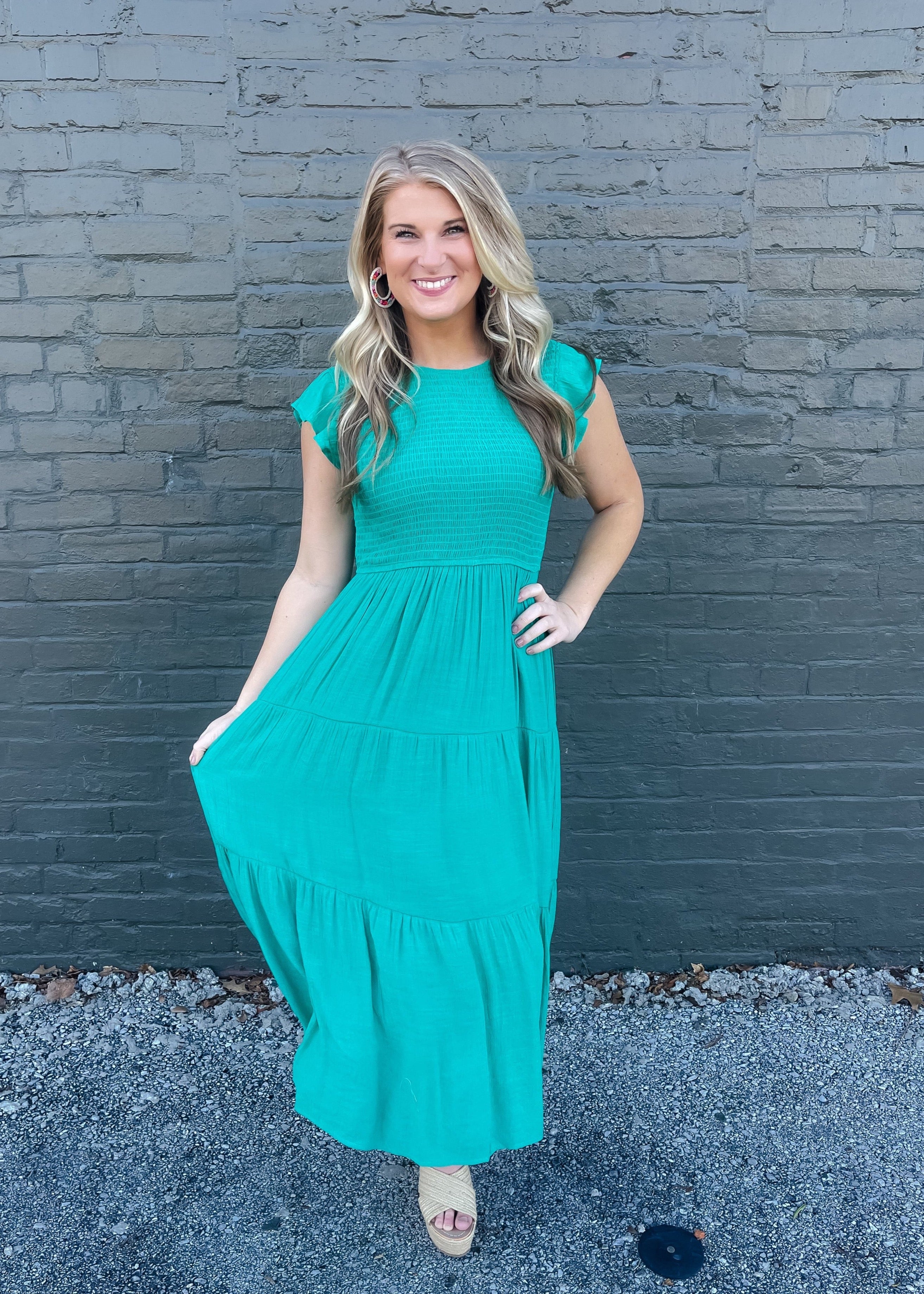 Flirt For Fun Jade Smocked Midi Dress (S-3XL)