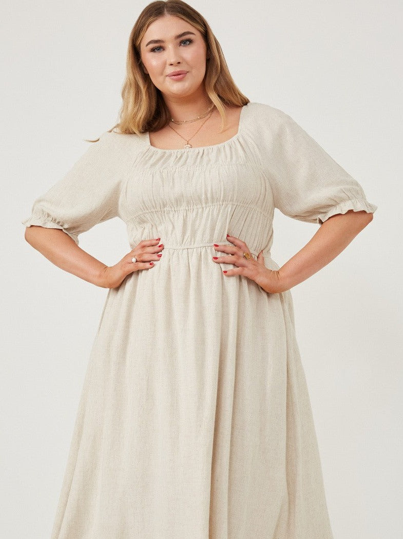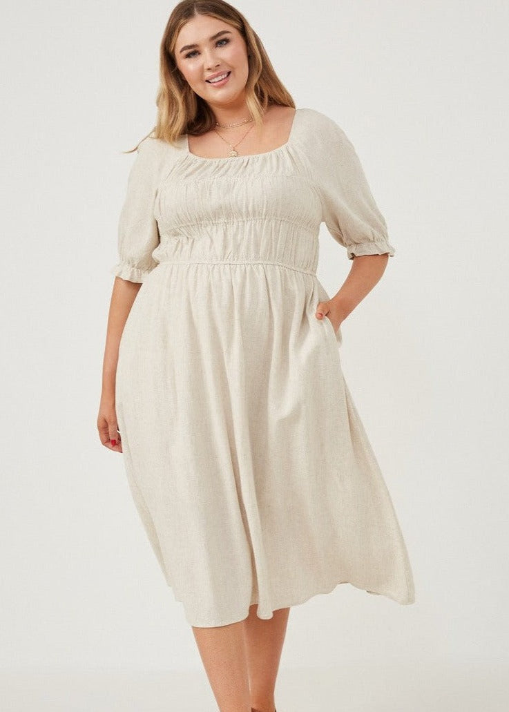 Fine Example Oatmeal Linen Dress (1X-3XL)