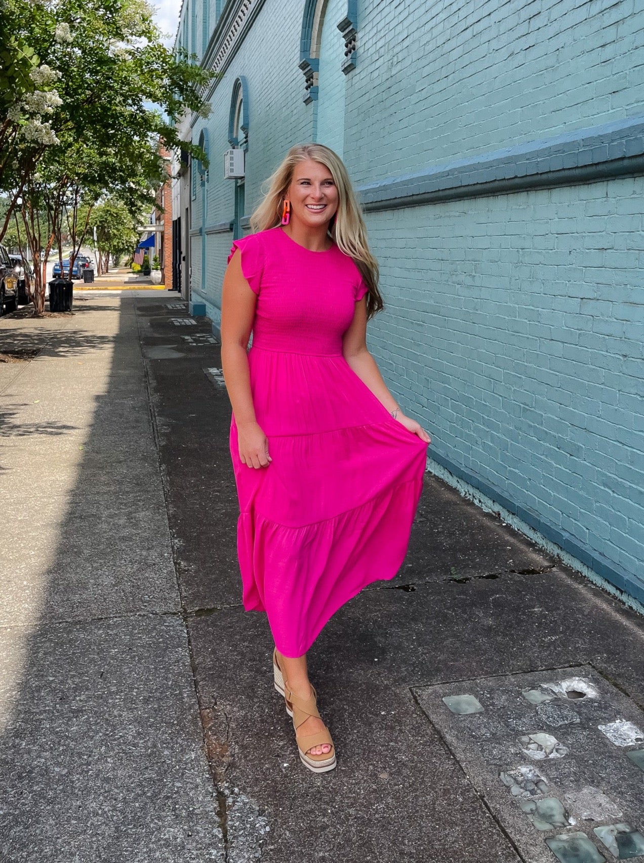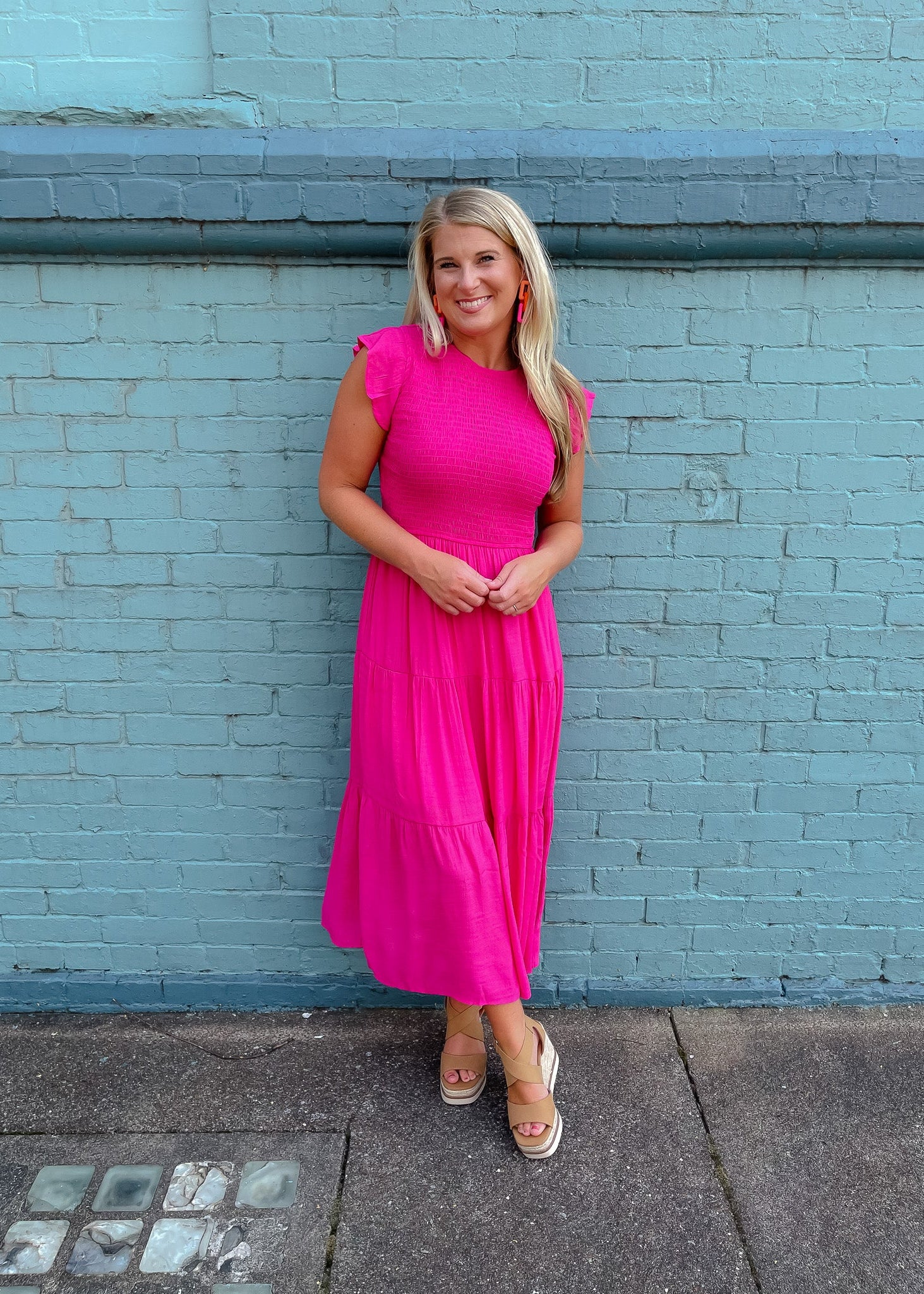 Falling For You Hot Pink Midi Dress (S-3XL)